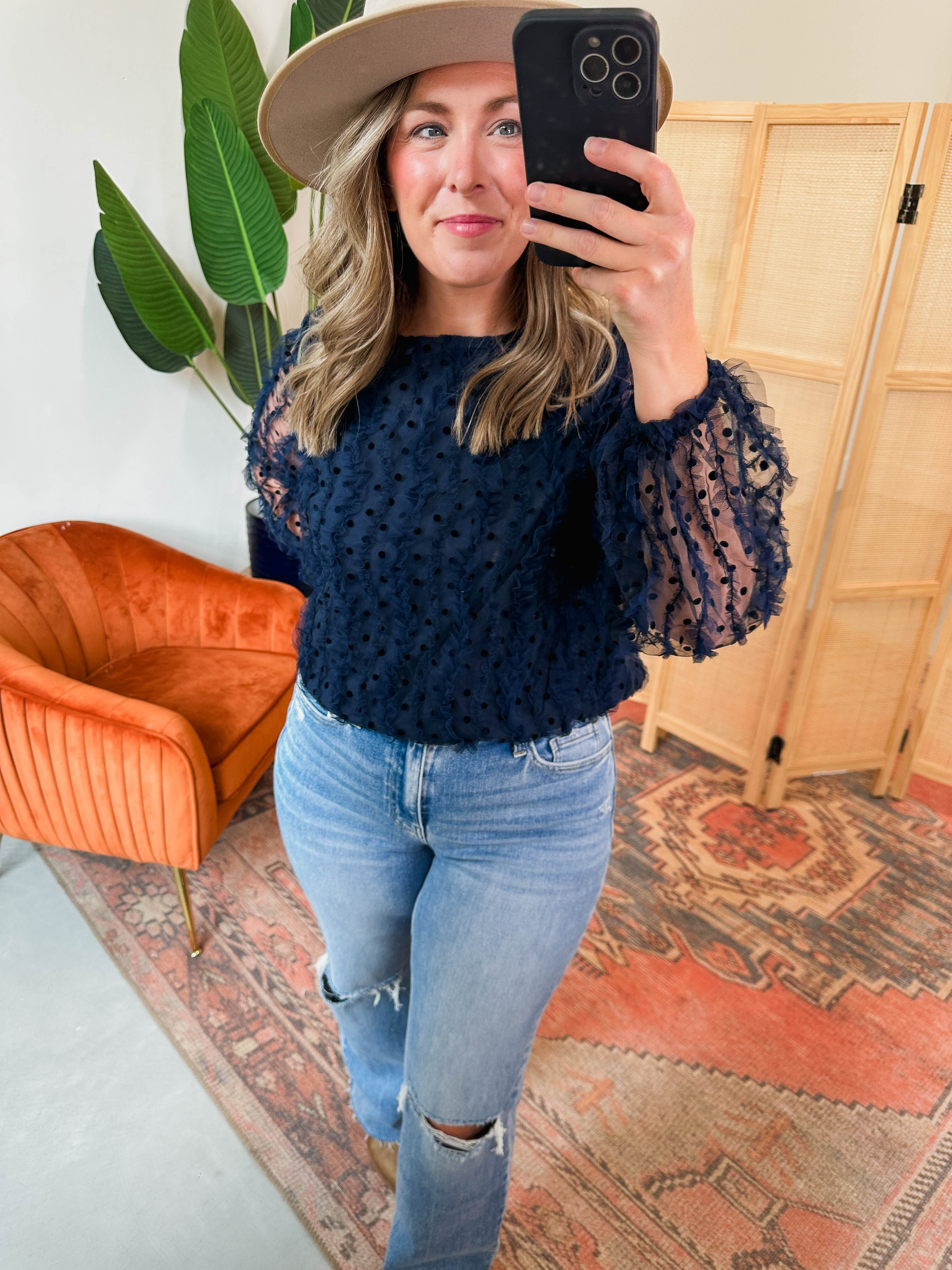 Fiona Polka Dot Top-Navy