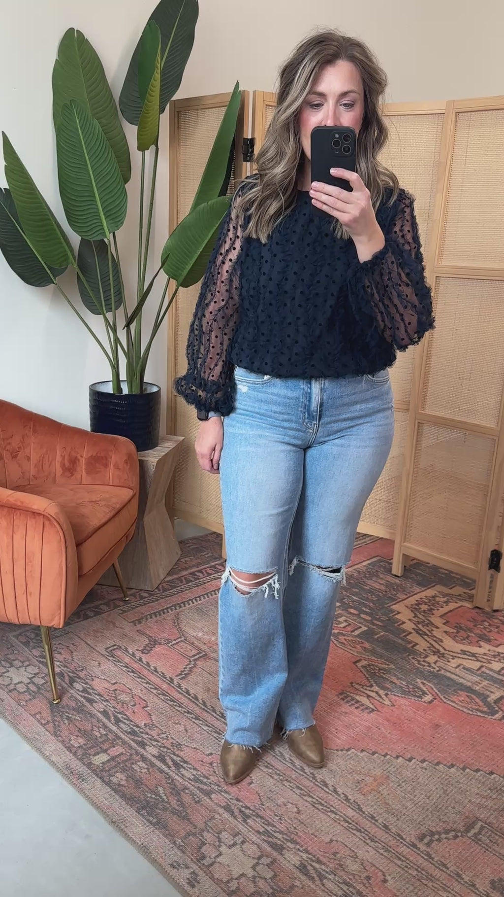 This Fiona Polka Dot Top features a playful round neck and long sleeves crafted from textured mesh. Perfectly versatile from workdays to weekend adventures, it also adds a fun touch to your holiday season wardrobe.