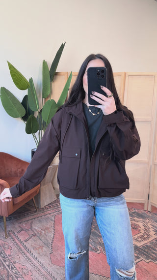 Stay cozy and stylish on the move with the Walker Jacket in Coffee Bean. Featuring a hood with adjustable drawstrings, a full zipper front, and snap-button side pockets, it’s your perfect go-to for every adventure.