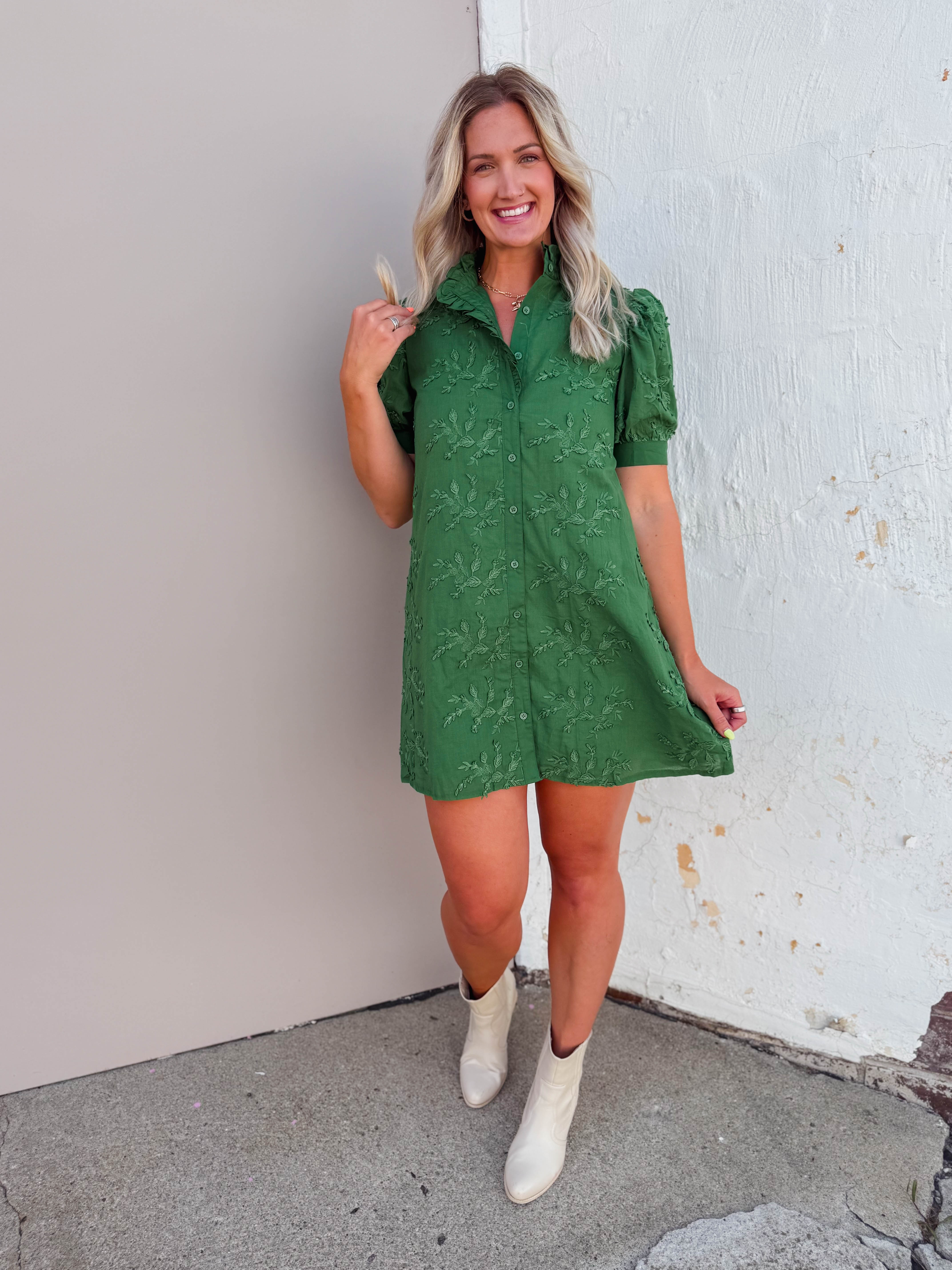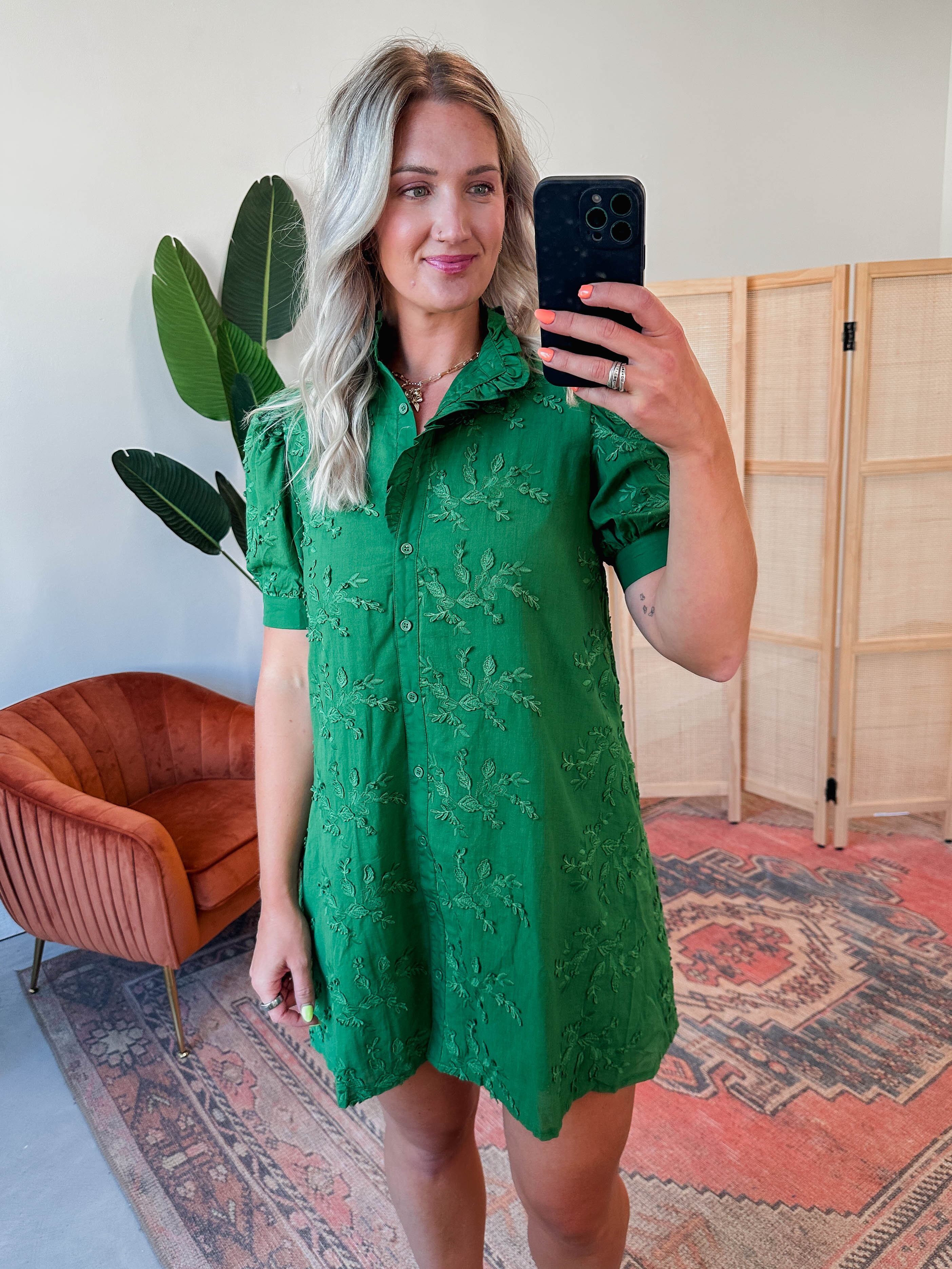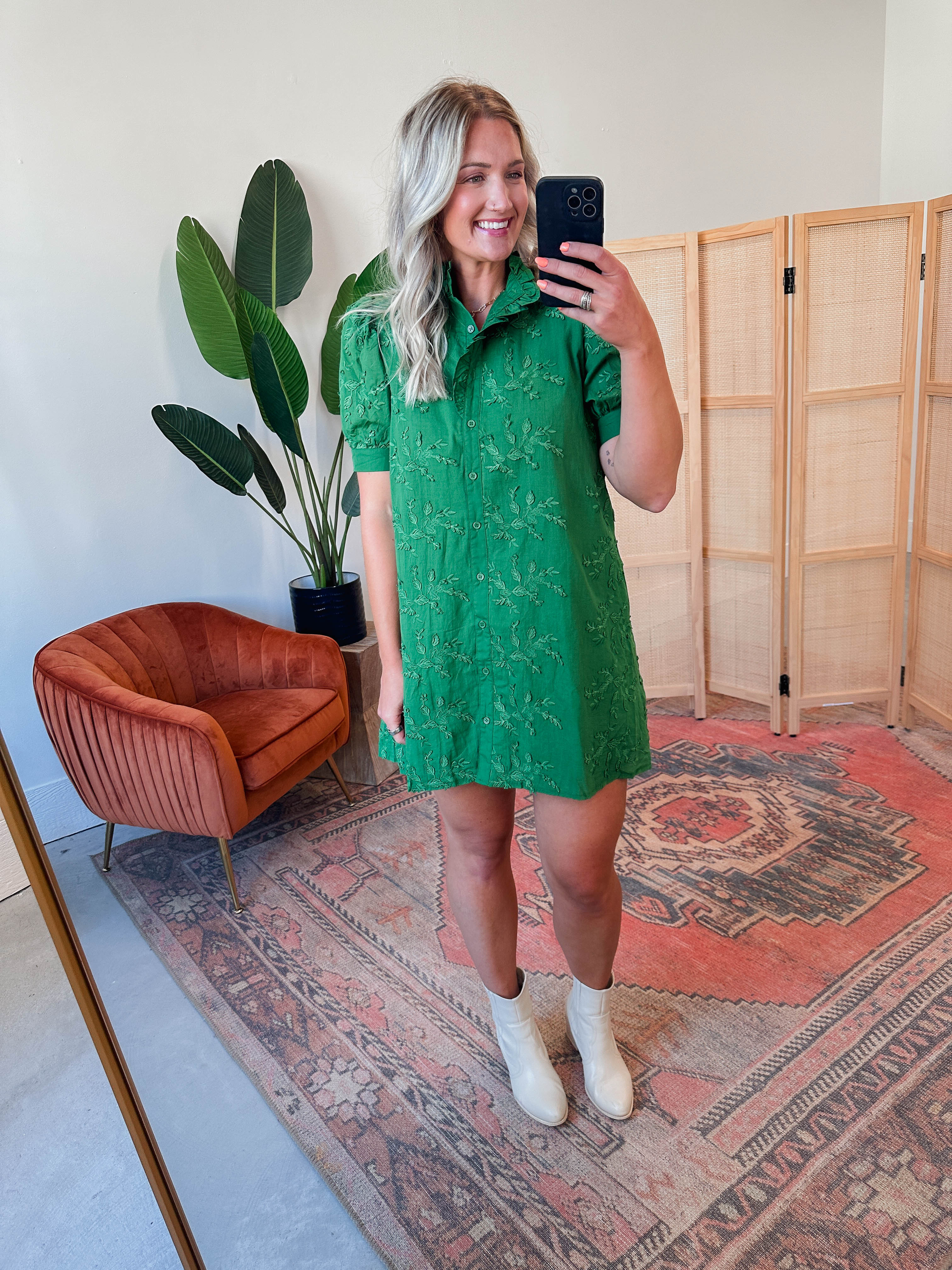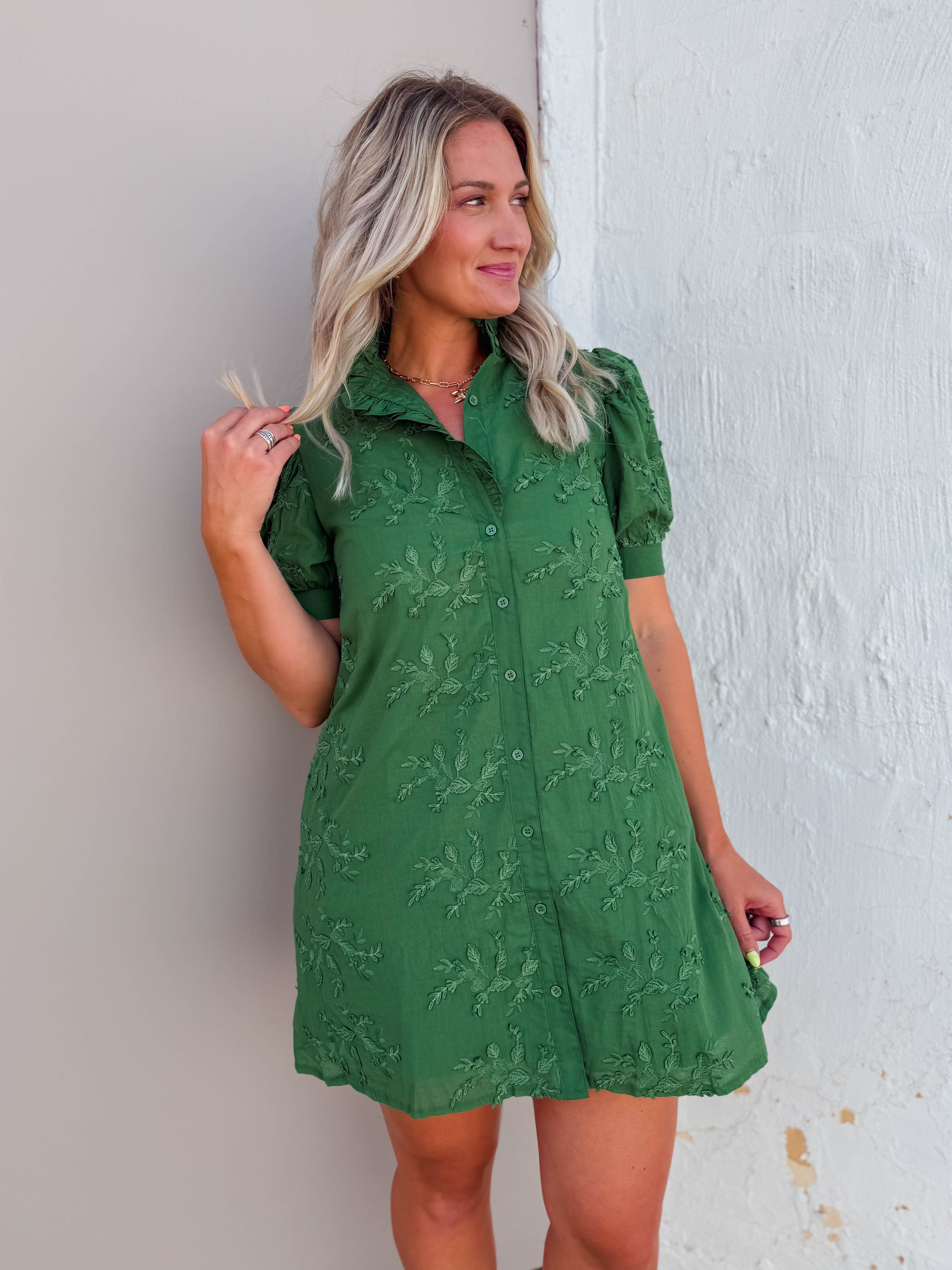 RESTOCK! The Bethany Mini Dress is a playful blend of charm and style, featuring delicate 3D floral appliqués and structured puff sleeves. Its front button closure and handy side pockets add both function and flair, making it perfect for year-round wear.