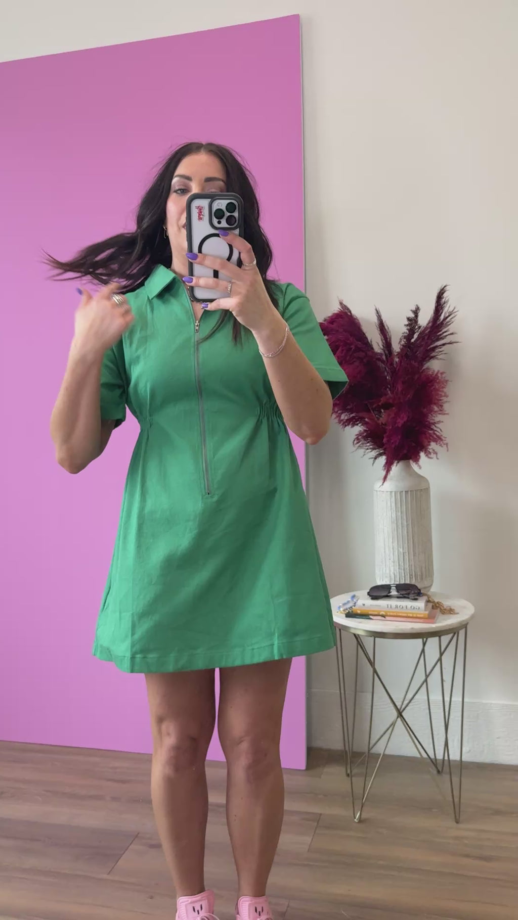 Stay cool and stylish this spring summer in this green denim utility mini dress. Designed with practical details and a playful silhouette, this dress combines functionality with fashion-forward appeal. The denim fabric keeps its shape while the utility-inspired elements add character and edge. Perfect for casual outings, weekend adventures, or laid-back gatherings, pair it with sneakers for a relaxed vibe or dress it up with sandals and accessories.