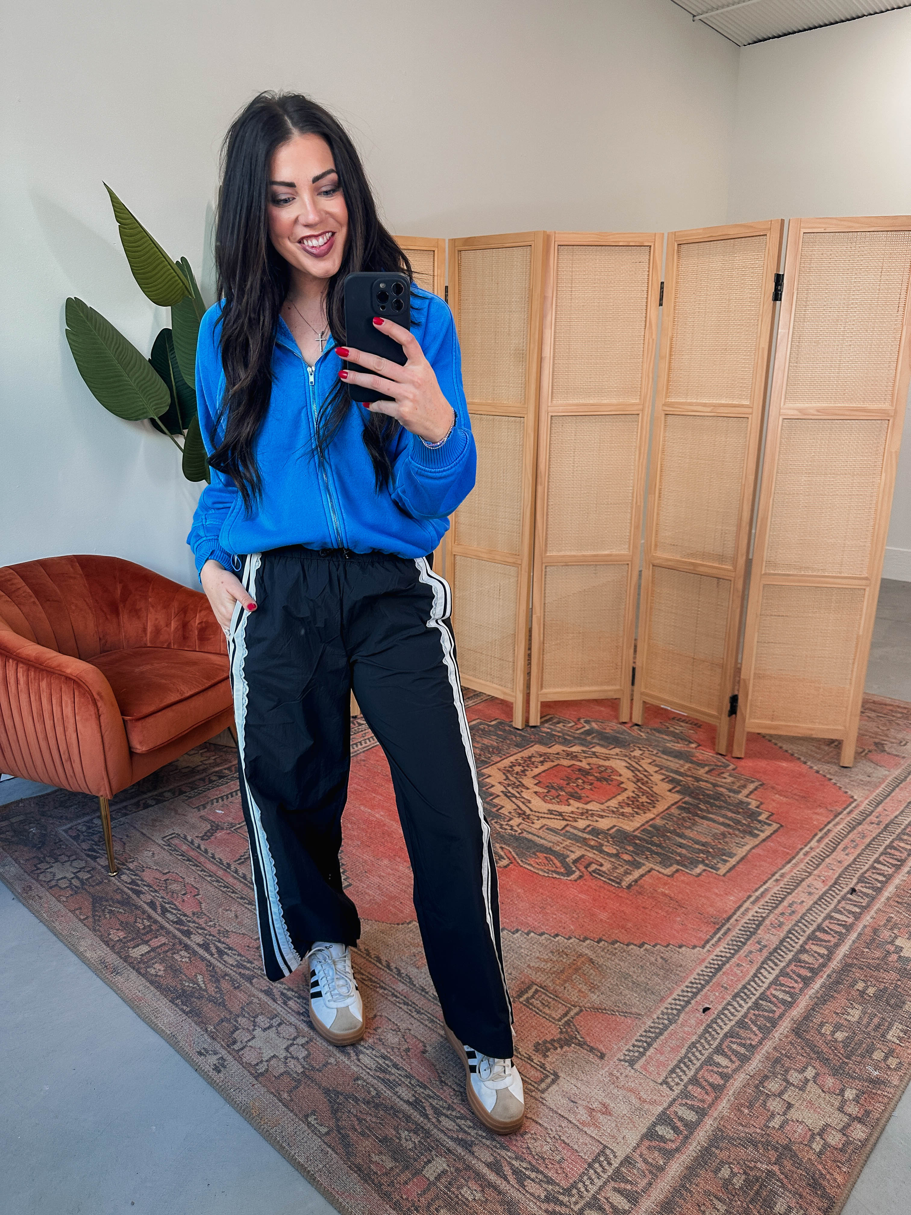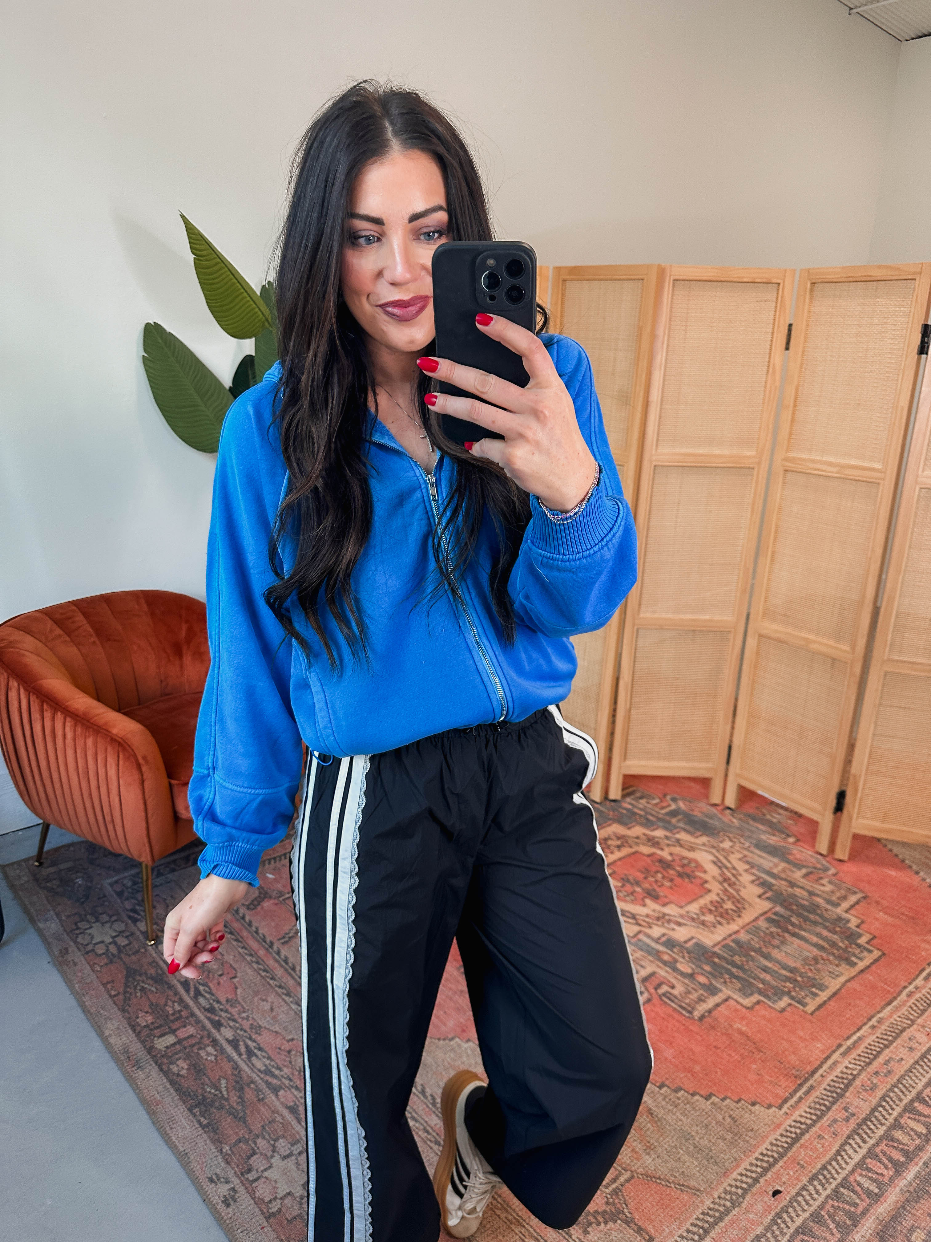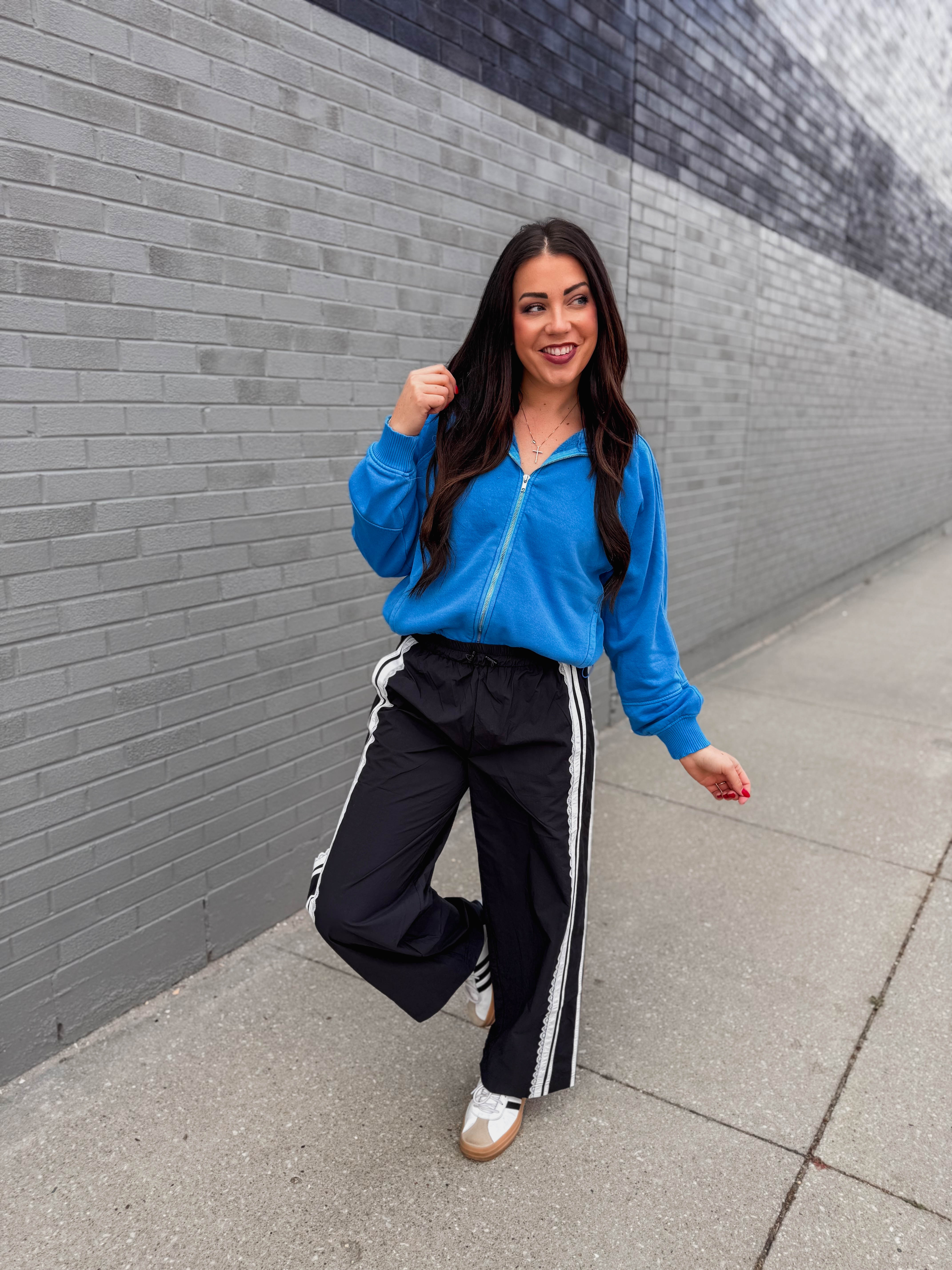 The Reagan Jacket is your new go-to for stylish comfort. With long sleeves, a front zip, and handy side pockets, it’s perfect for busy days. The drawstring waist adds a fun pop of color and a snug fit—great for on the go!