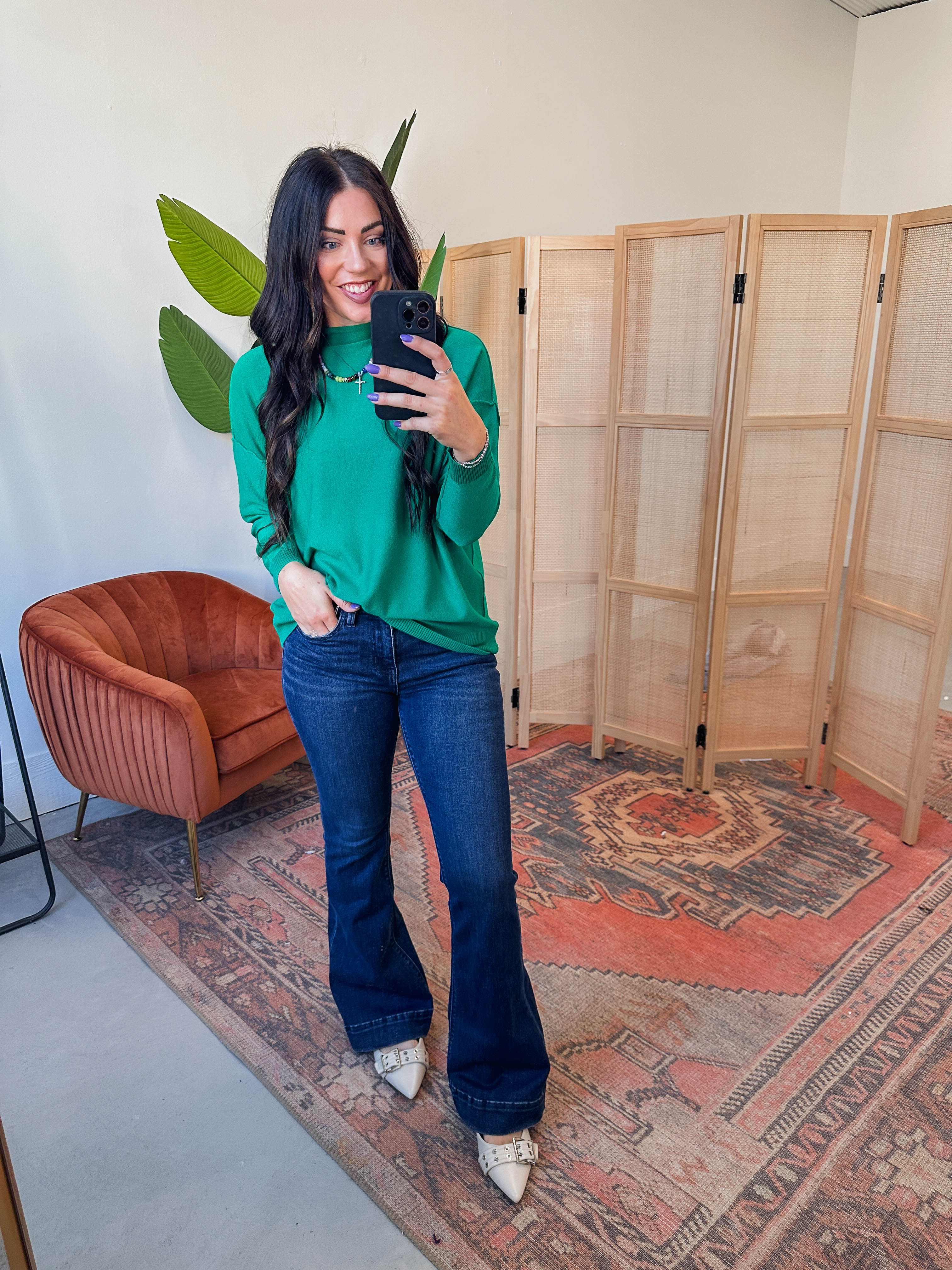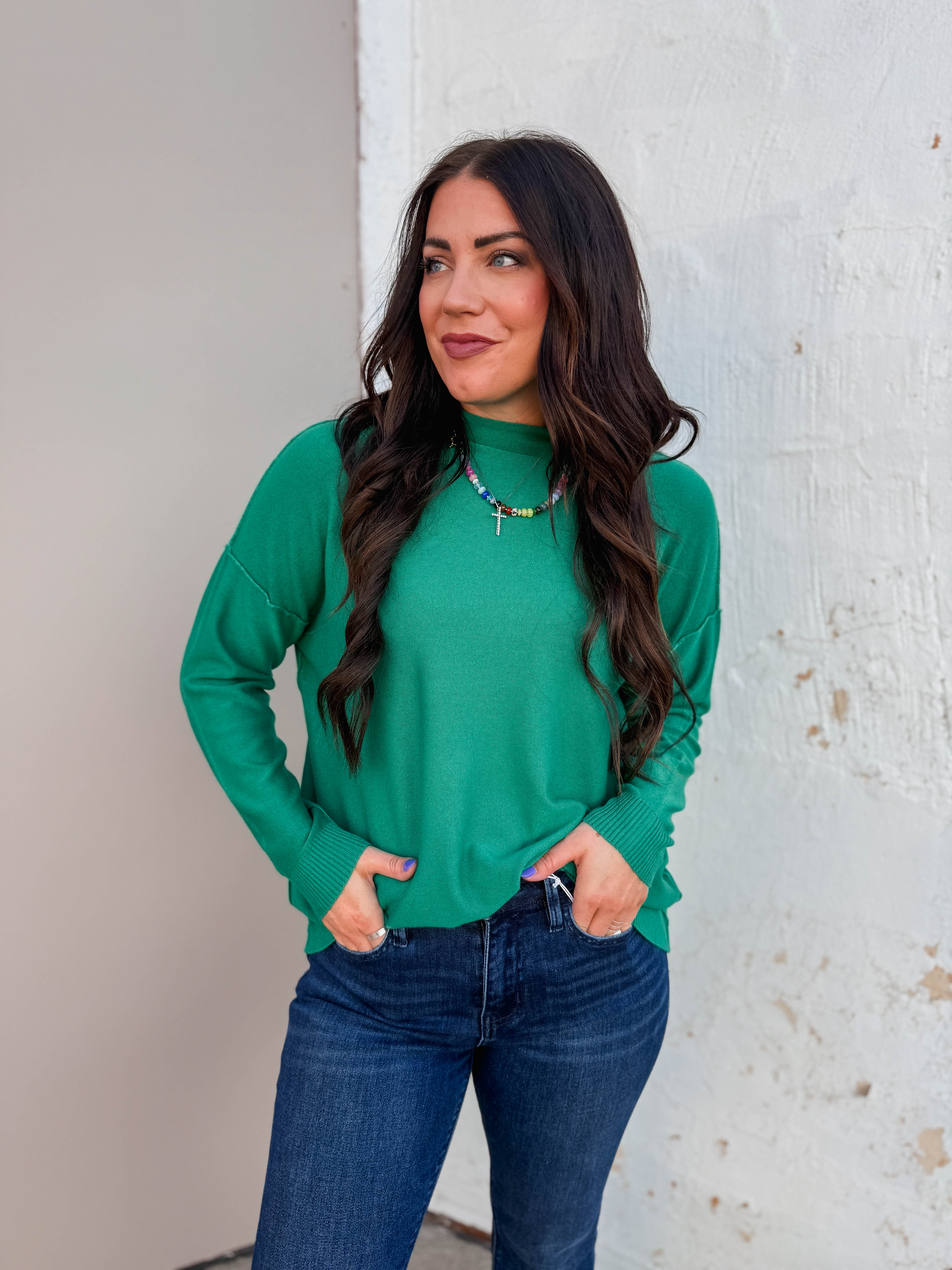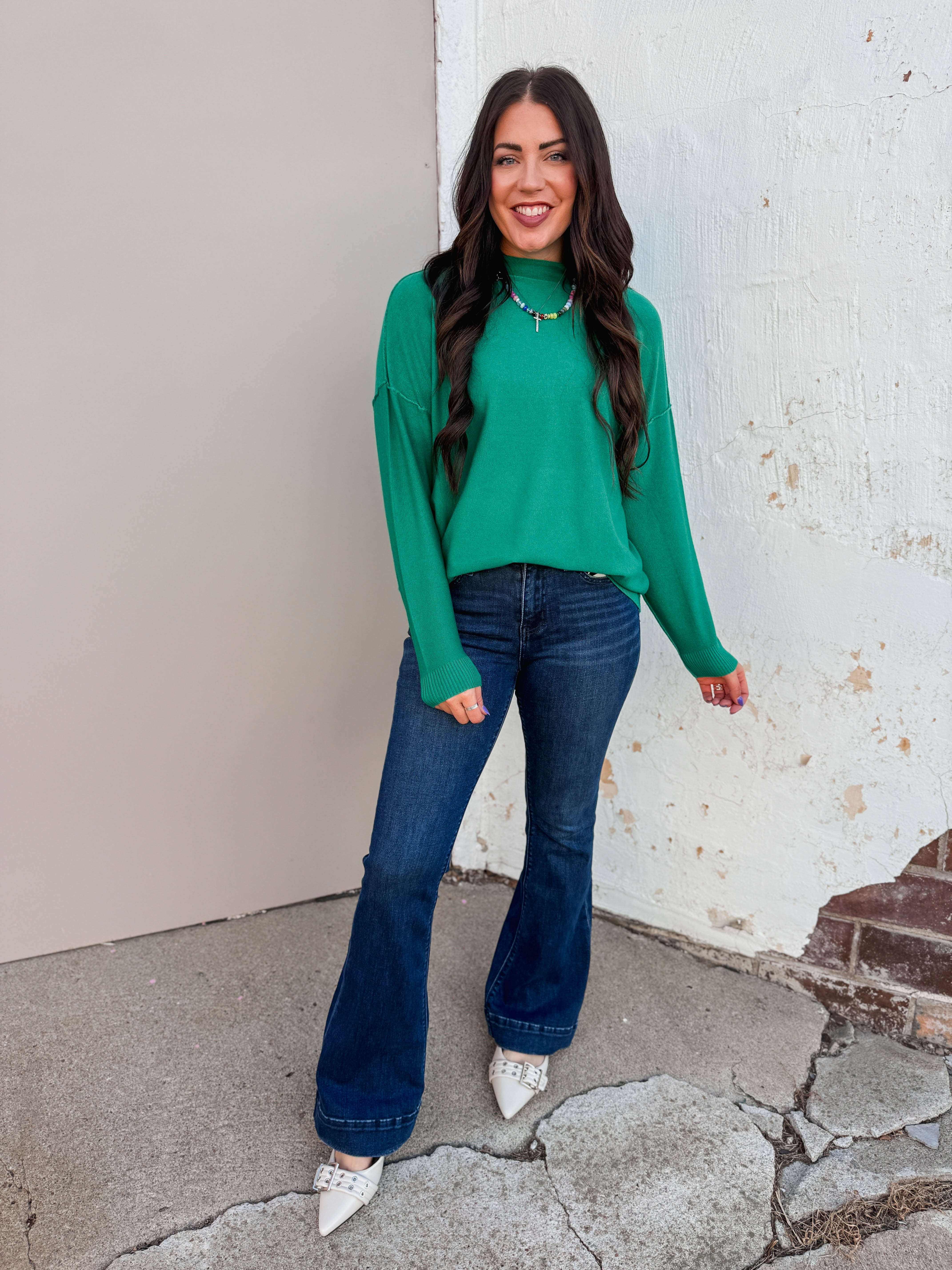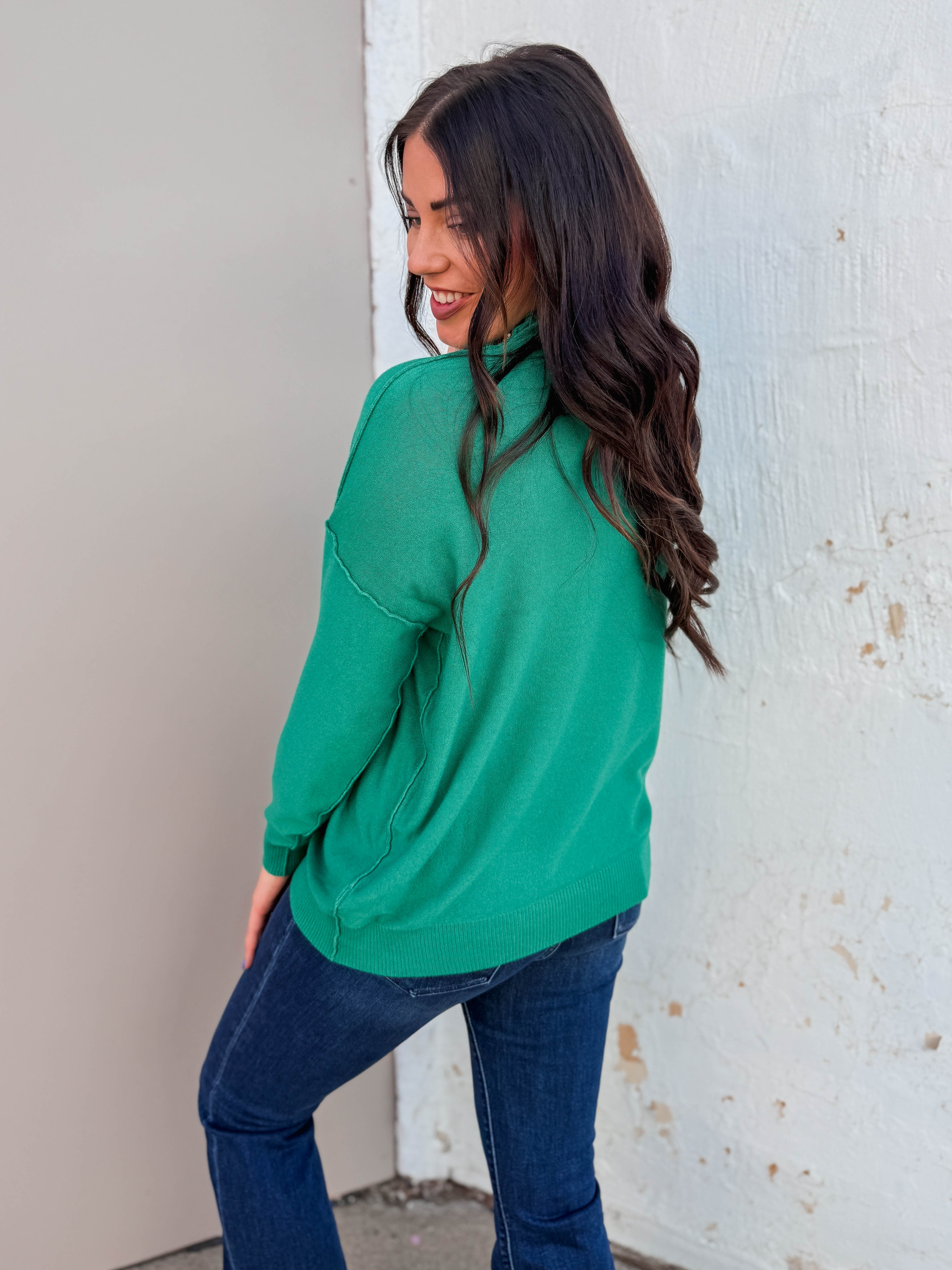Add a fun pop of color with the Camille Sweater. Featuring a cozy mock neckline, long sleeves, and exposed seams, it’s the perfect versatile piece to take you from work to weekend. Ribbed cuffs and hem keep it comfy and stylish all day long.