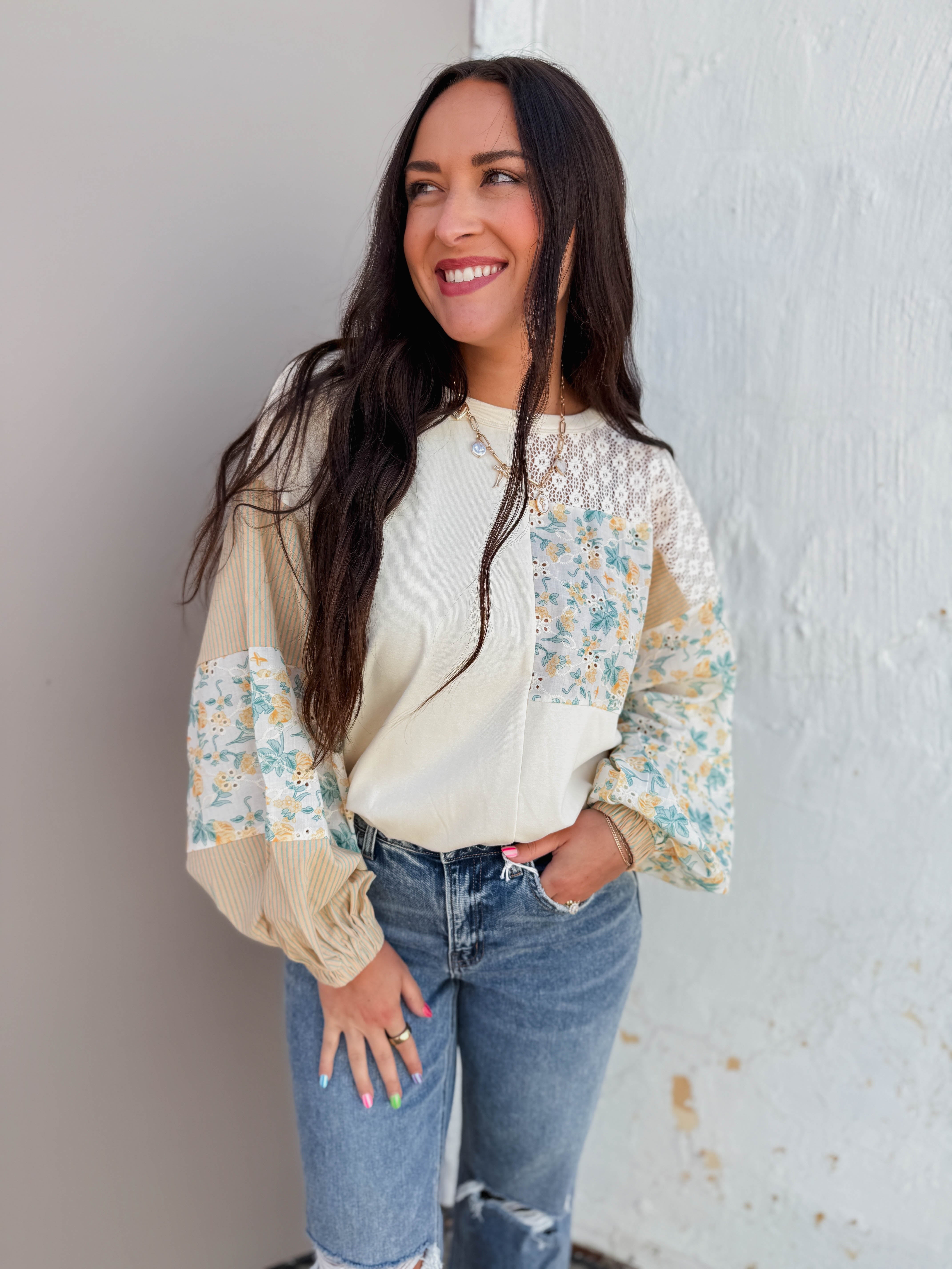 The Cassie Top adds a playful twist to your fall wardrobe with its mix of textures and prints. Featuring a round neckline, balloon long sleeves, and an elastic waistband hem, this cropped top brings fun and flair to any outfit. Perfect for layering or wearing on its own, it’s a cute way to brighten up cooler days.