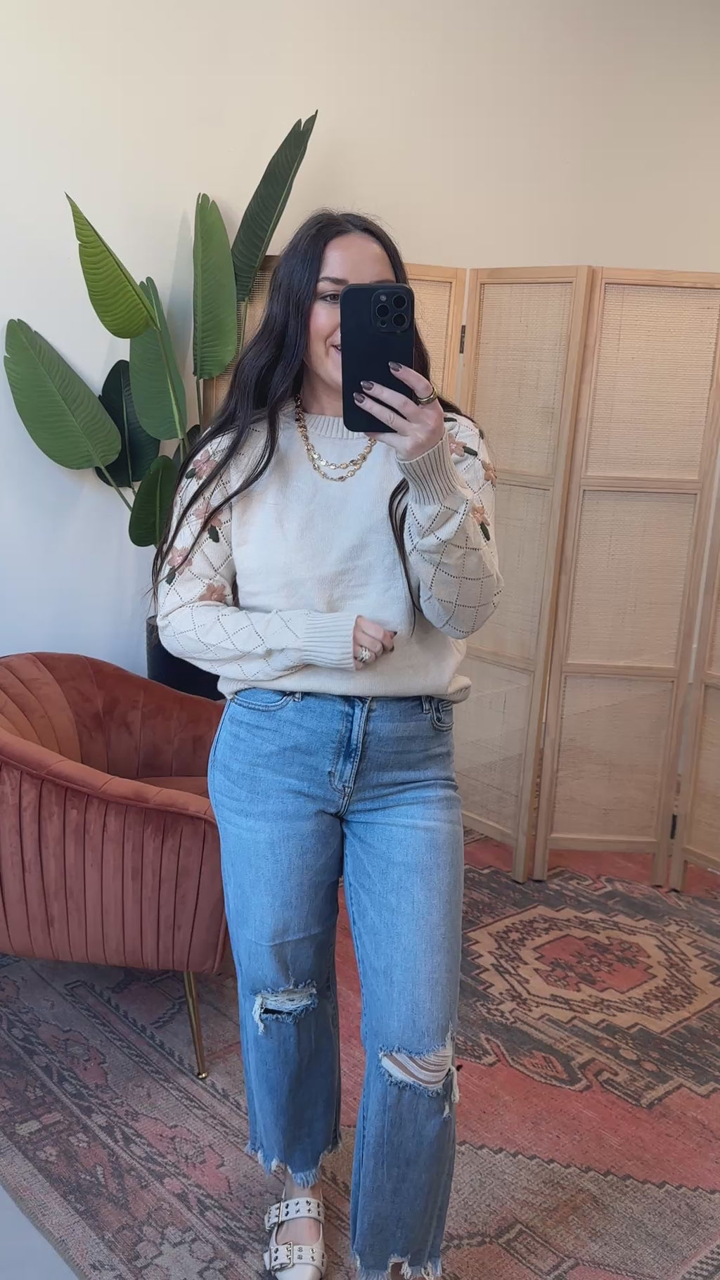 Hazel Floral Embroidered Sweater-Taupe
