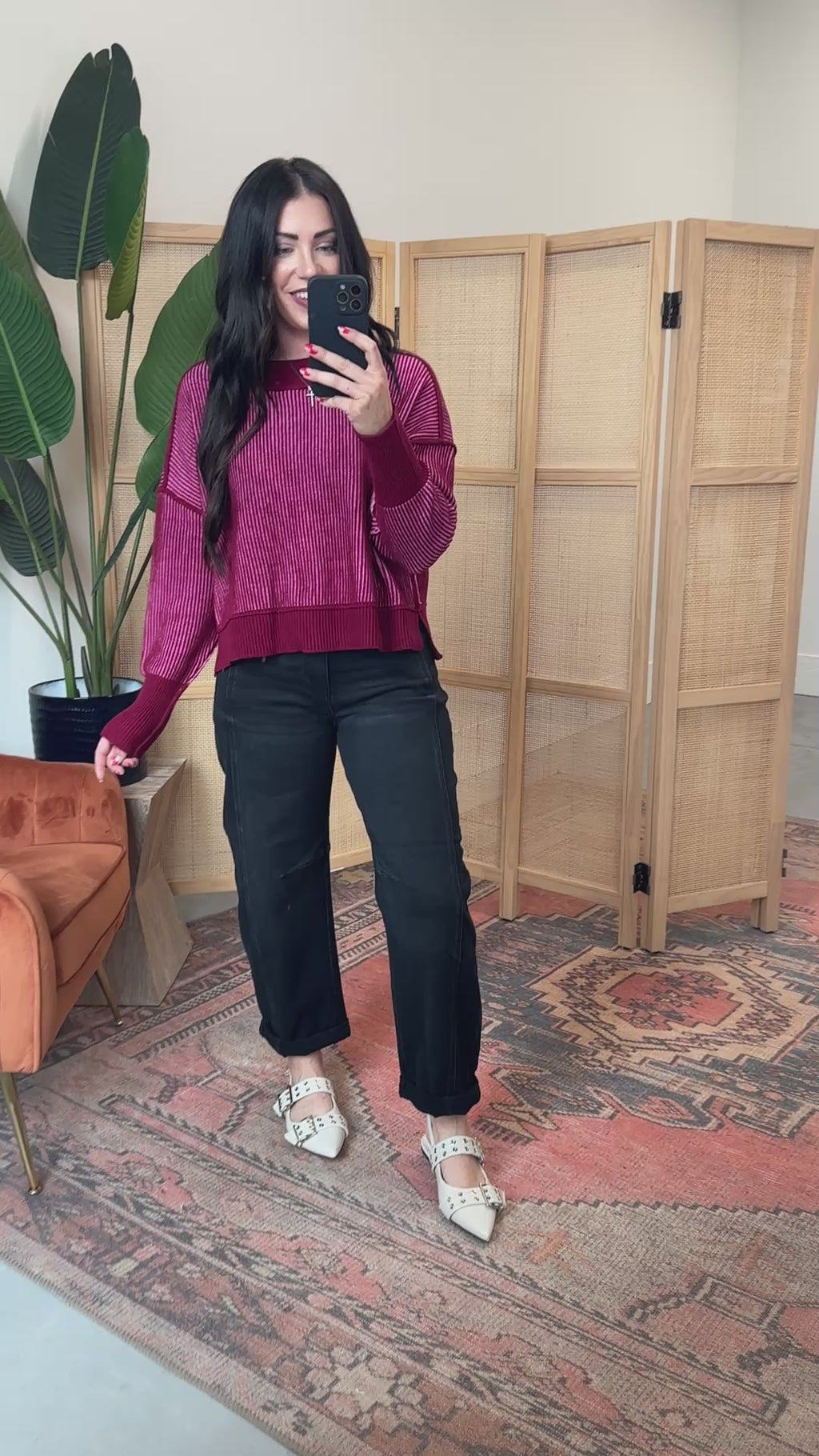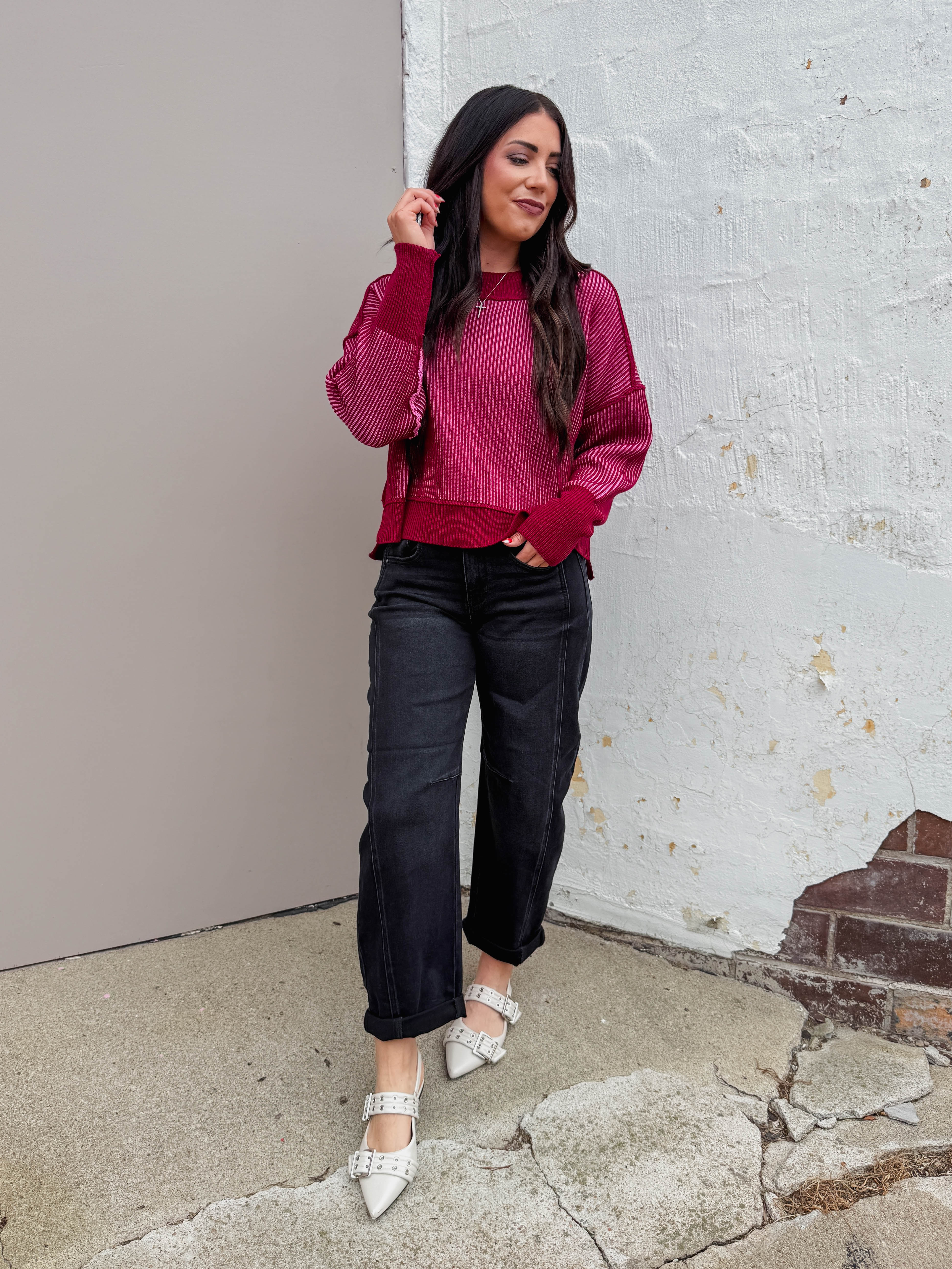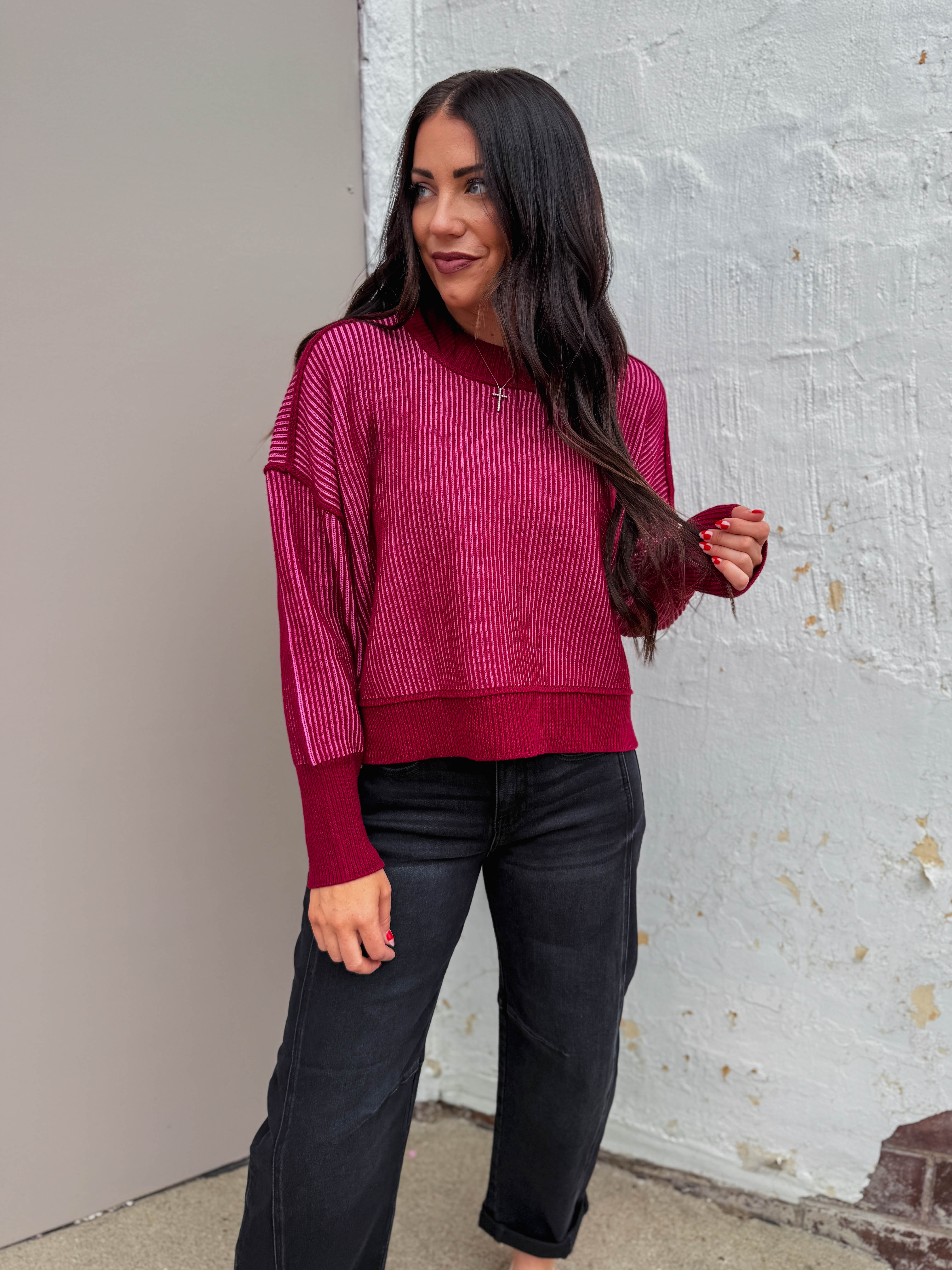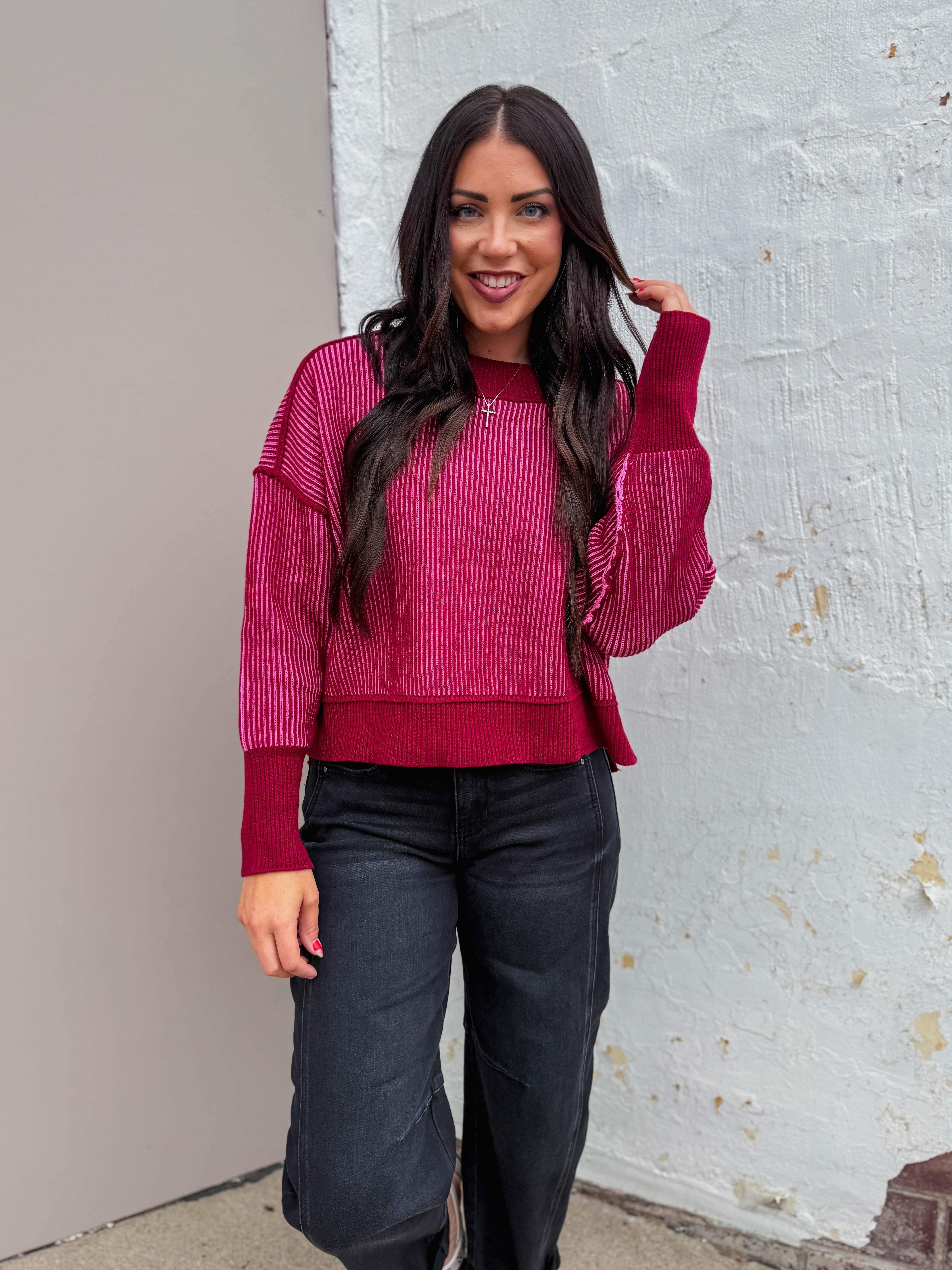 Lyla Cropped Sweater-Cabernet/Candy Pink