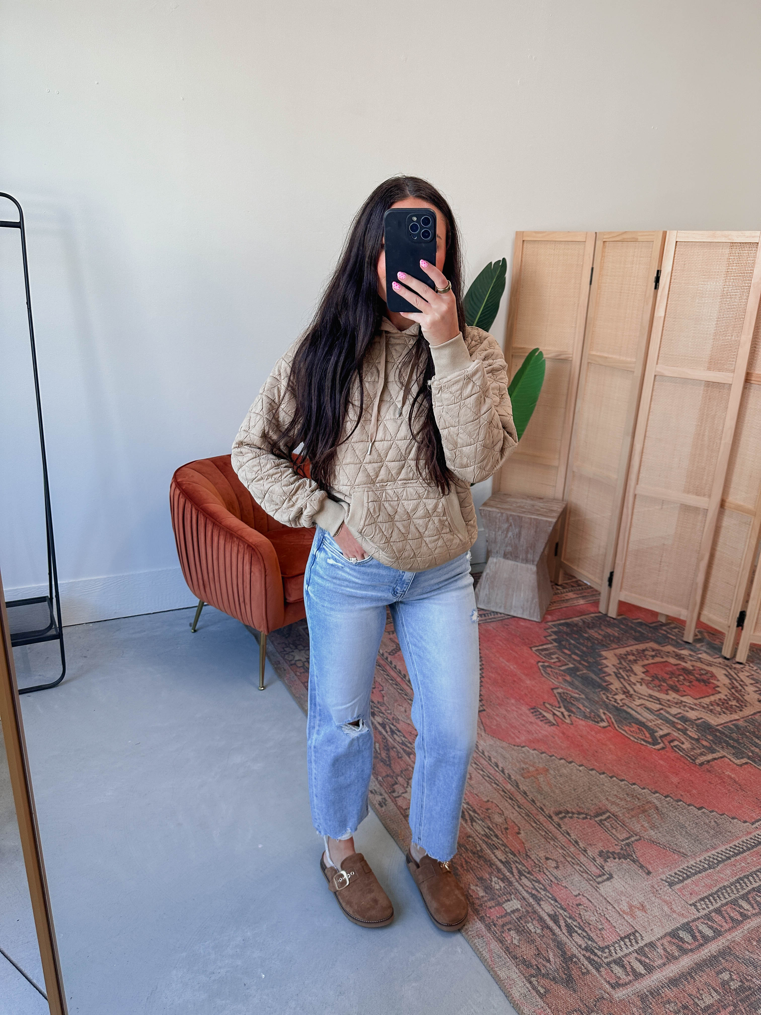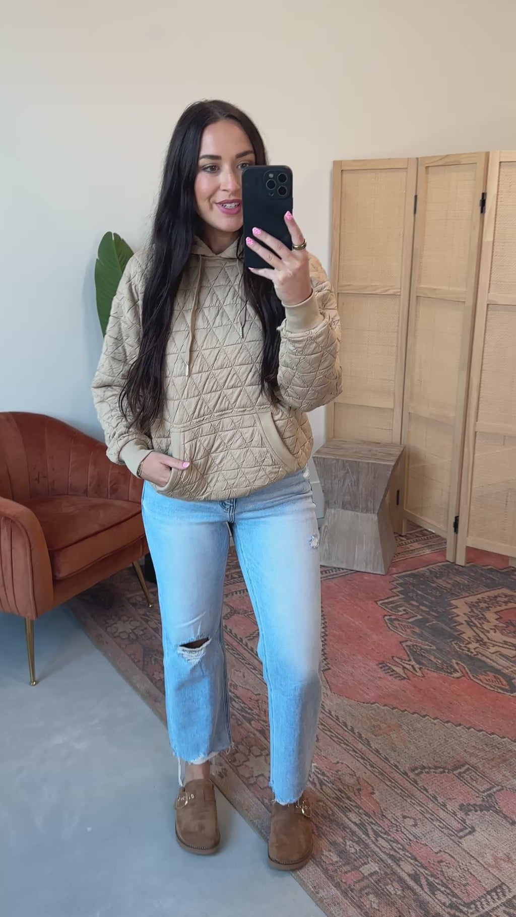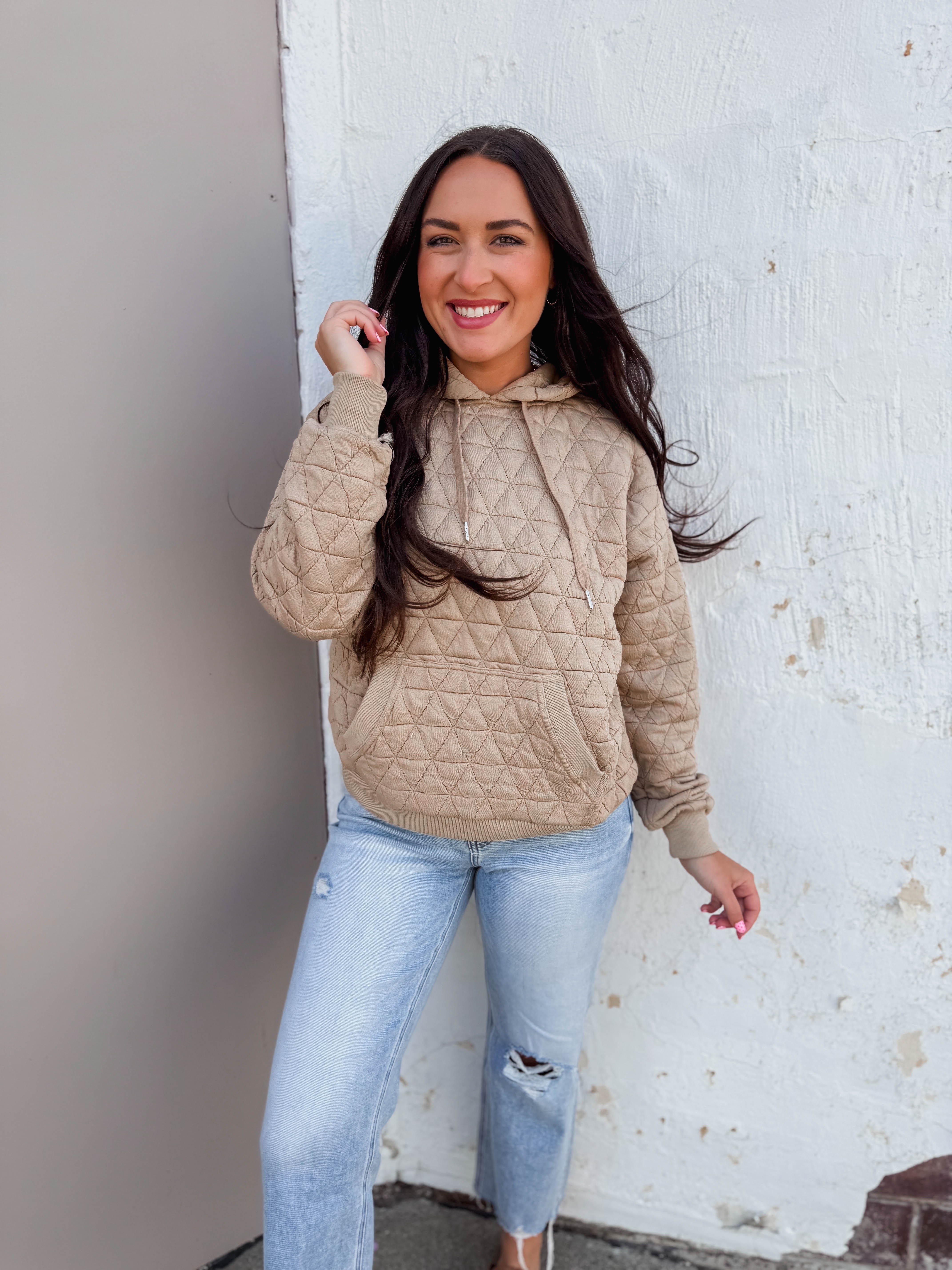 Stay cozy and cute in the Tori Quilted Hoodie in Cream! With a drawstring neck, long sleeves, and a warm quilted knit, it’s perfect for chilly fall and winter days. Plus, the kangaroo pocket adds a fun, practical touch for keeping hands toasty.