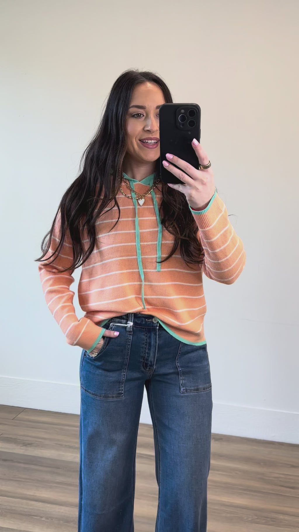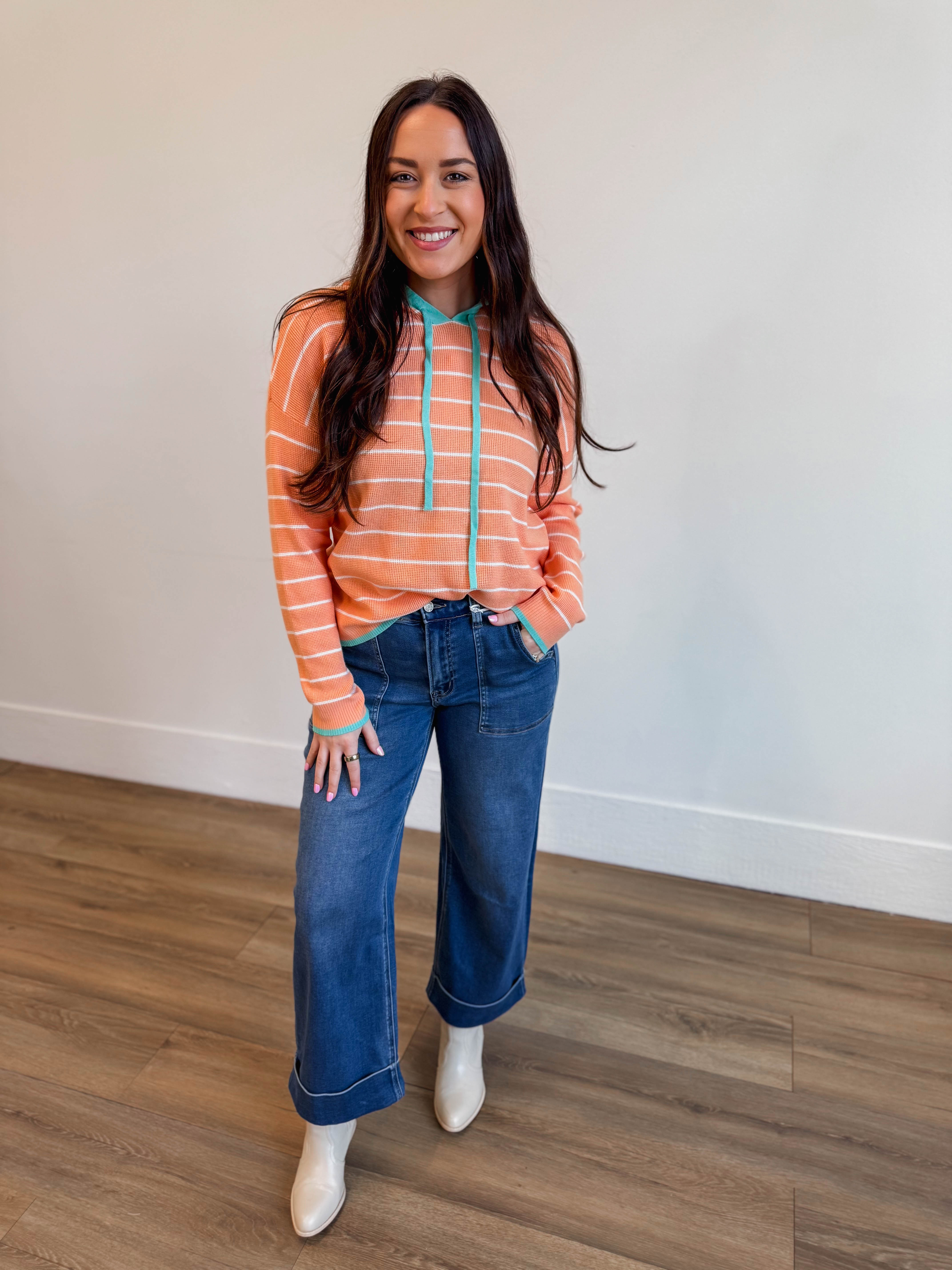 Cozy meets cool with this striped waffle knit hoodie. The mini waffle texture adds dimension while contrast trim details frame the neckline perfectly. Drawstring hood, long sleeves, and a playful pop of color make it ideal for everything from lazy mornings to casual outings. Throw it on and go—your new weekend favorite awaits.
