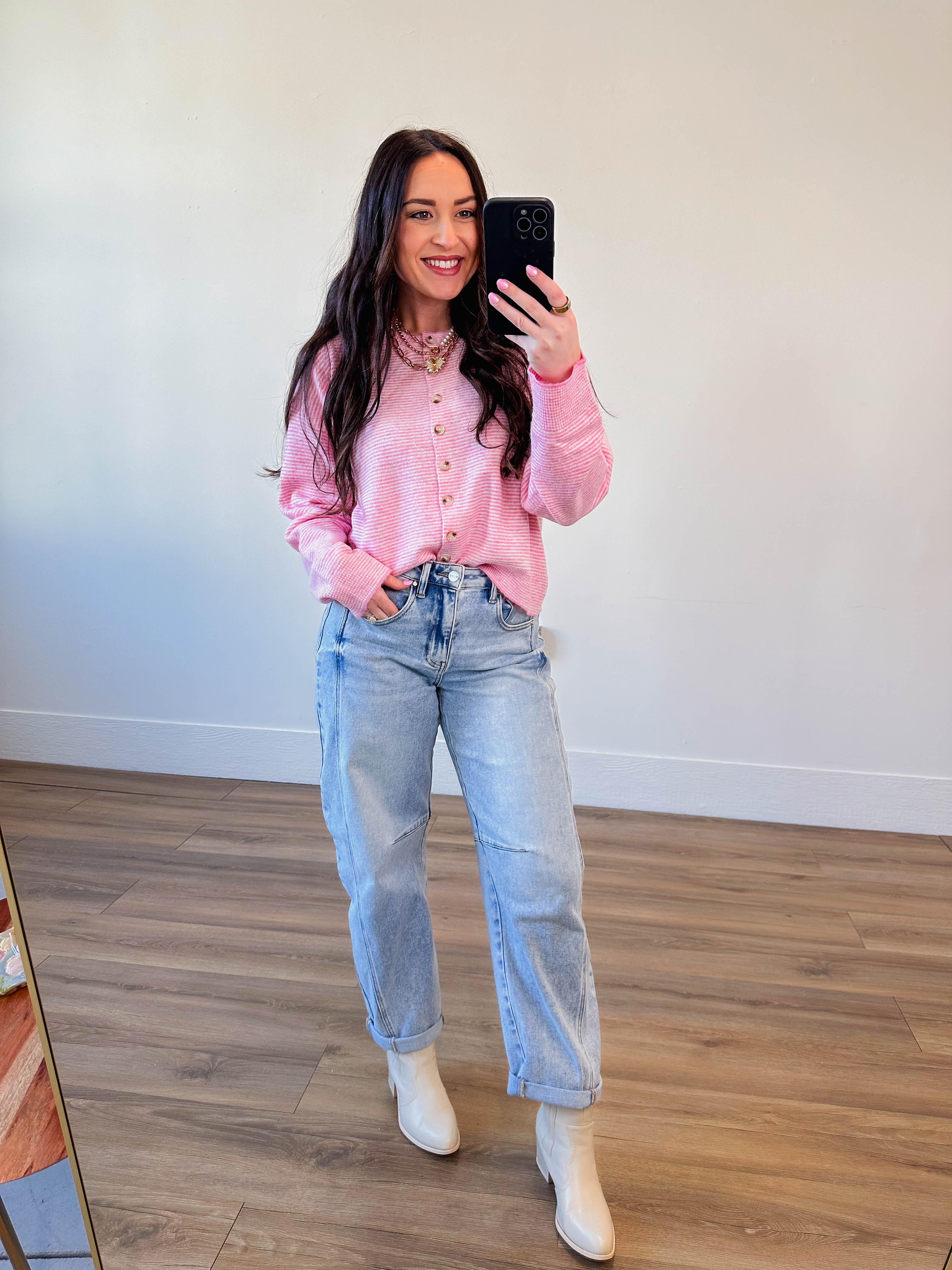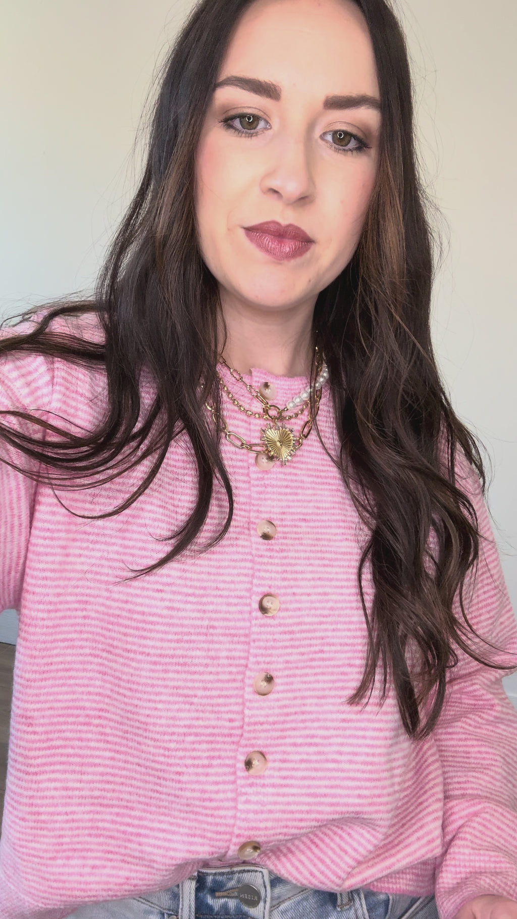 Layer up with this playful striped cardigan that brings instant personality to any outfit. Featuring a classic crew neckline, long sleeves, and a button-front closure, it's equal parts cozy and chic. The soft, stretchy fabric moves with you, while the vibrant green stripes add that fun pop of color your wardrobe's been craving.
