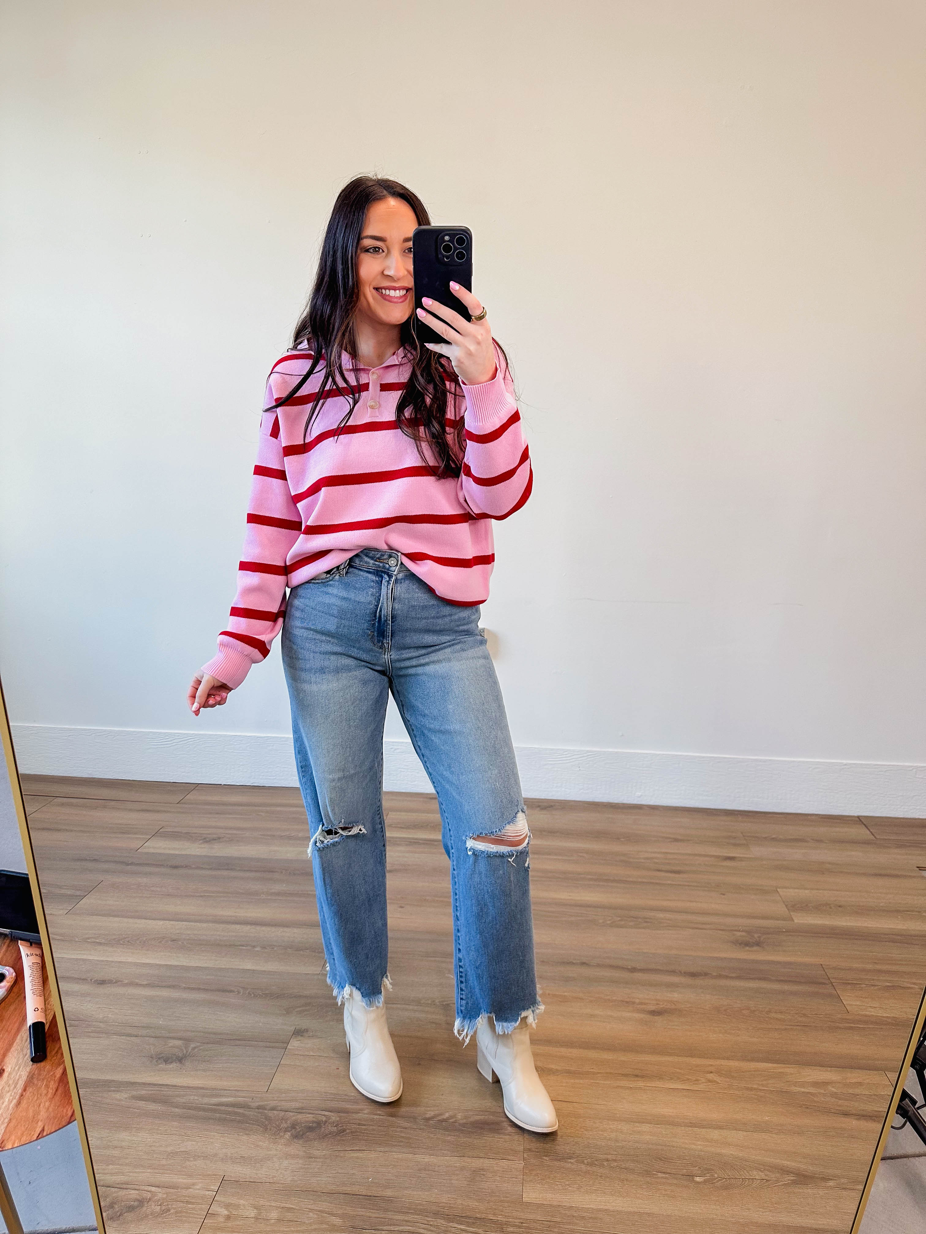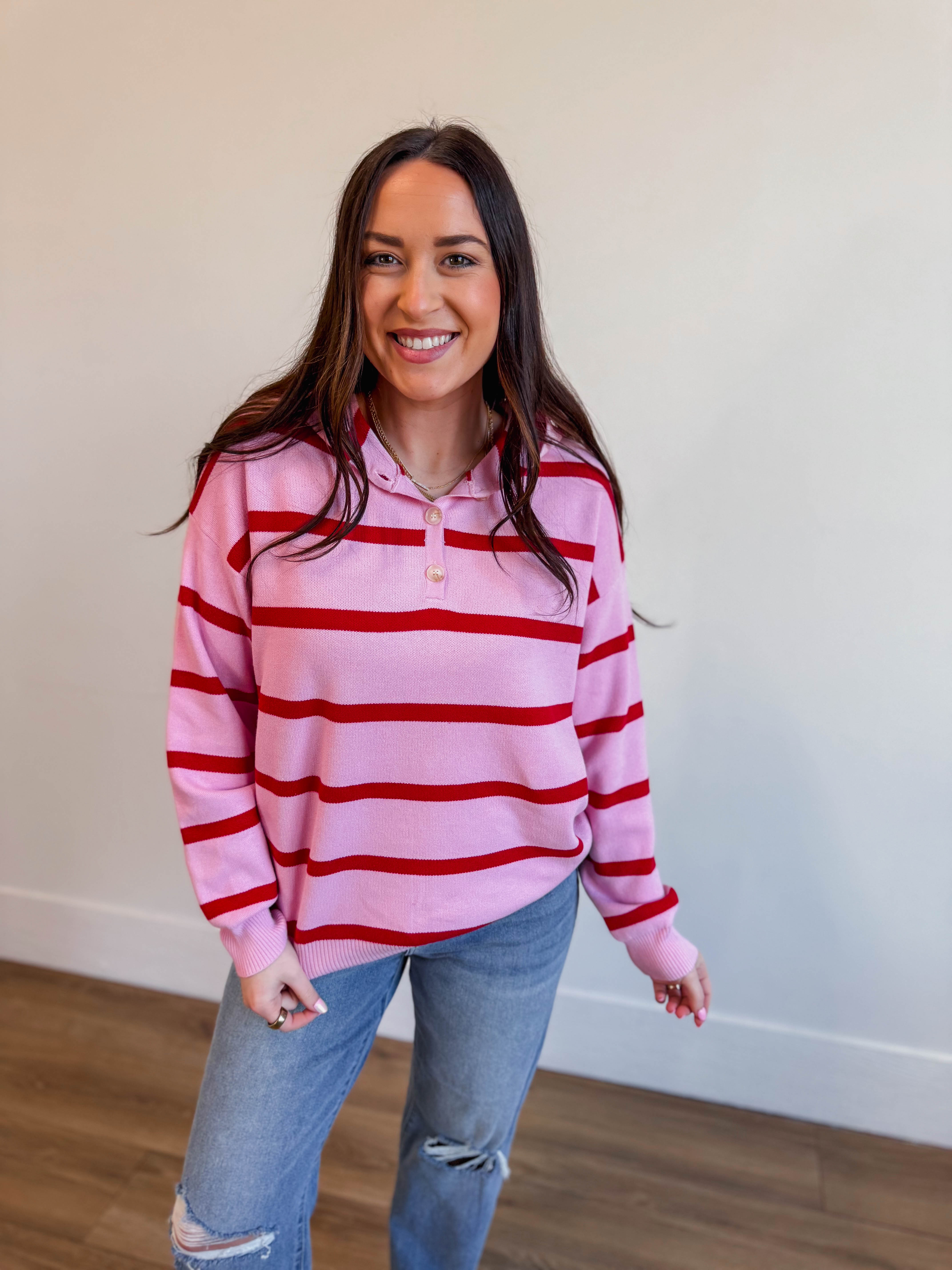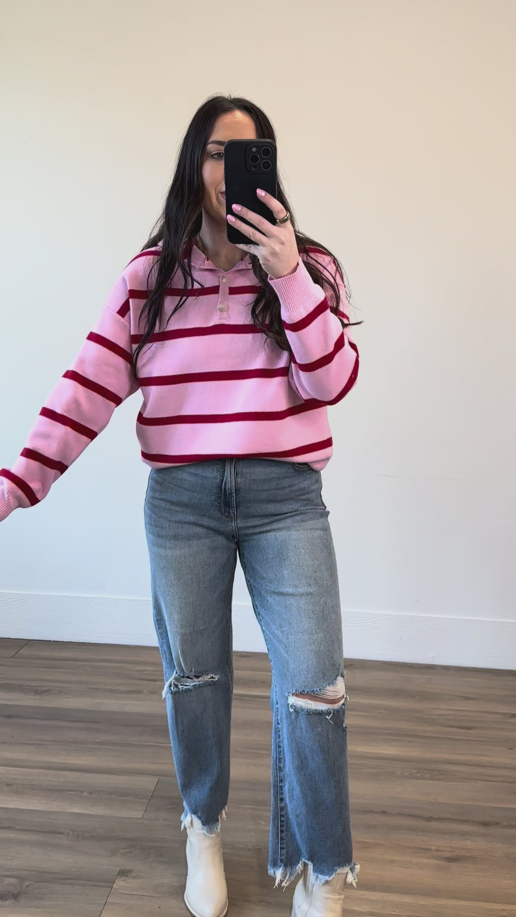 Meet your new wardrobe MVP. The Lola Striped Hooded Sweater rocks a bold stripe design that instantly brightens any day. Slip it on with the half button closure, pull up the cozy hood, and you're ready—whether you're heading to the office or kicking back on the weekend. Long sleeves keep you warm while the playful pattern keeps things fun. One sweater, endless outfit possibilities.
