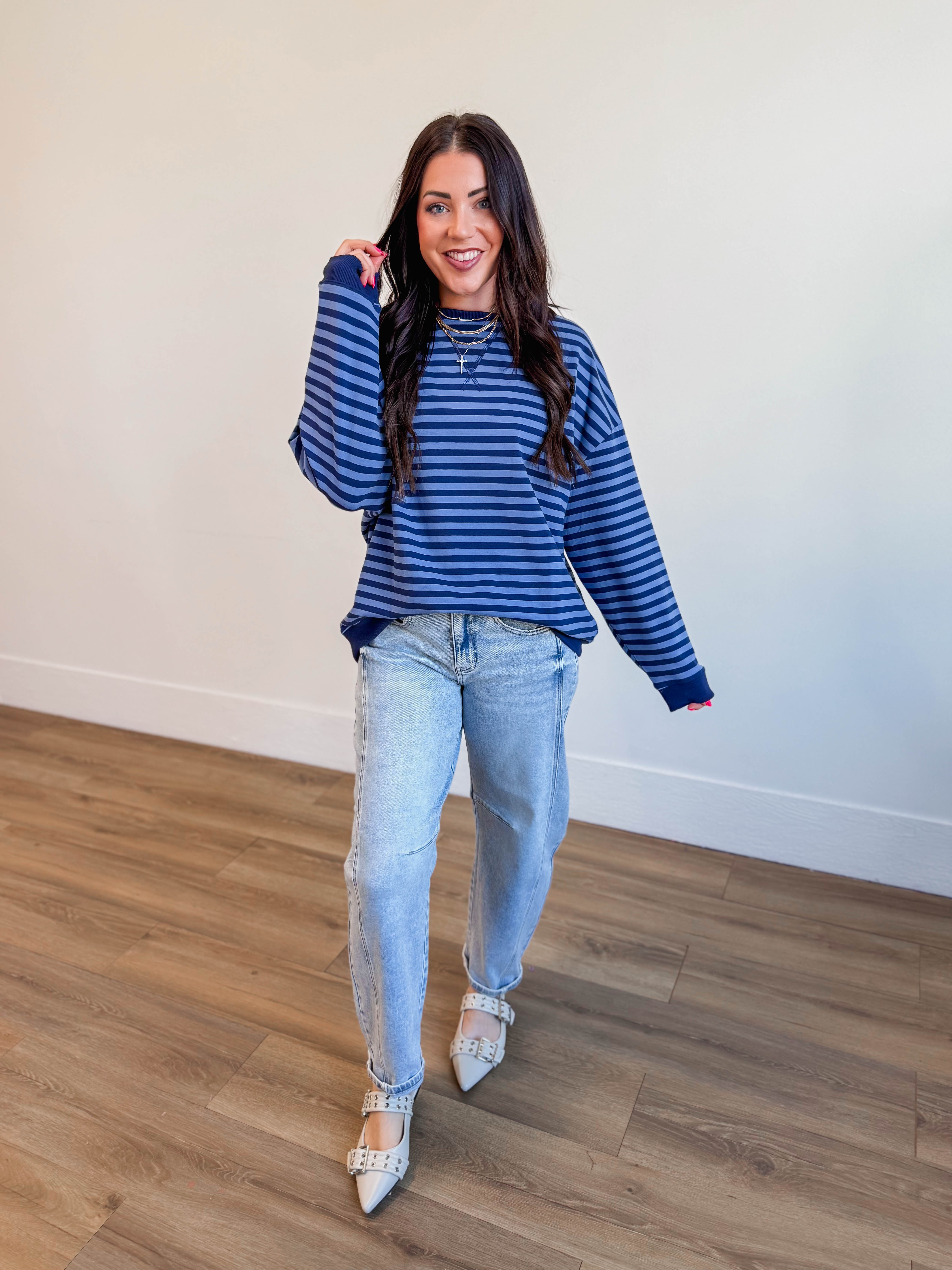 On The Line Pullover-Navy/Blue