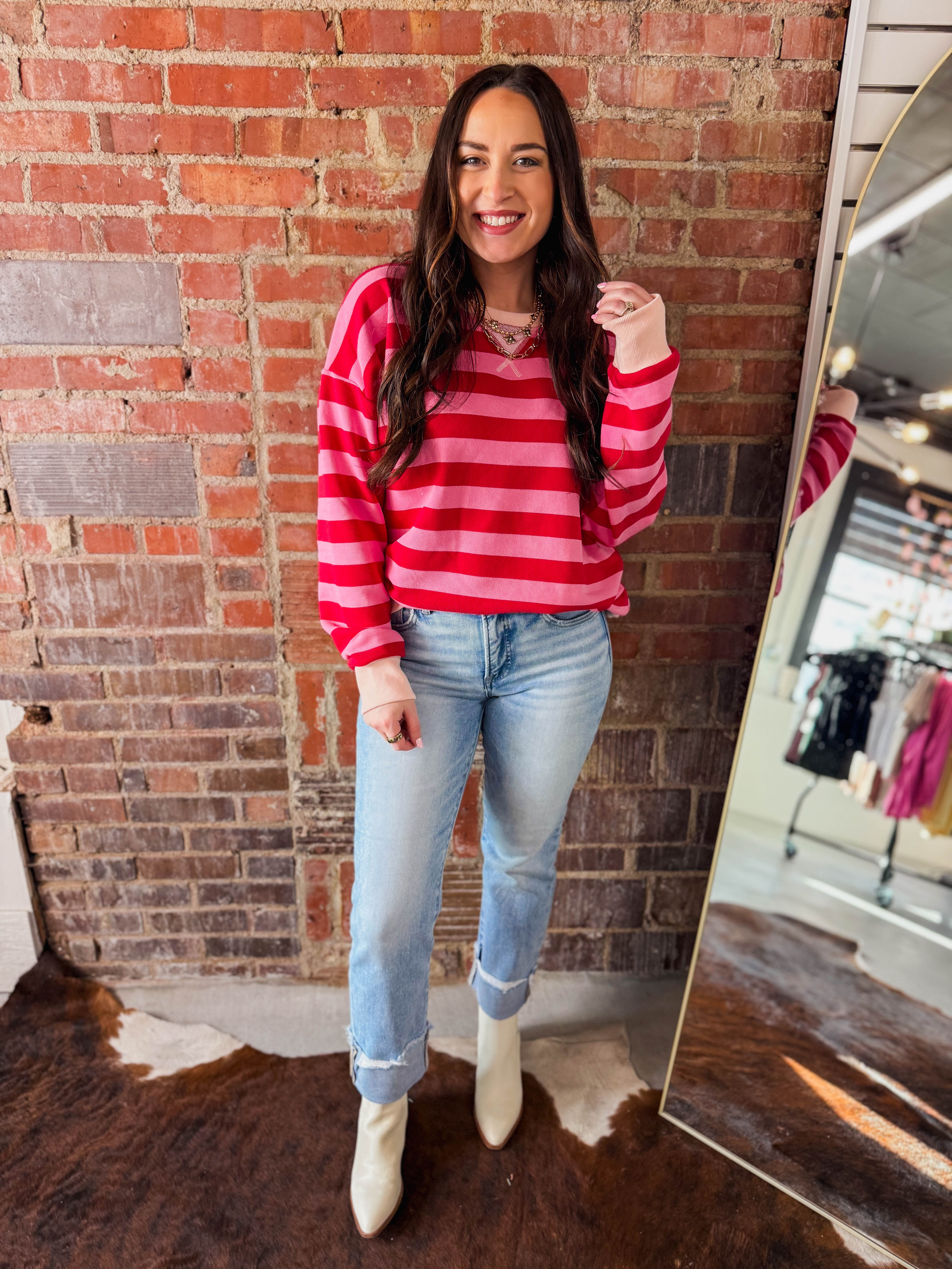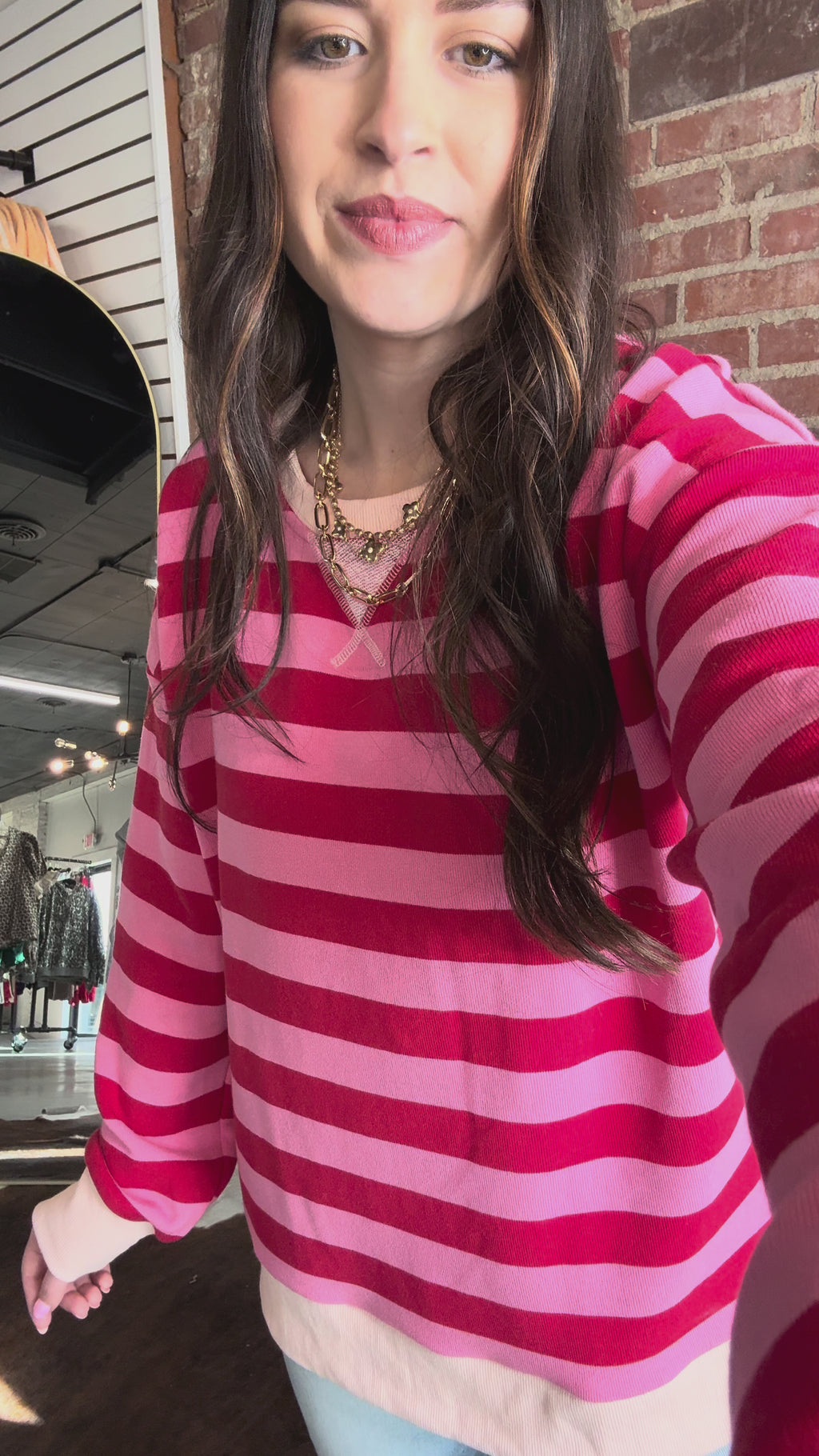 Throw on the Play It Cool Striped Pullover and make a statement. This crew neck sweatshirt features eye-catching chunky stripes that add personality to any outfit, crafted from buttery-soft French terry for all-day comfort. Long sleeves keep you cozy while the bold color blocking keeps things fresh and fun.