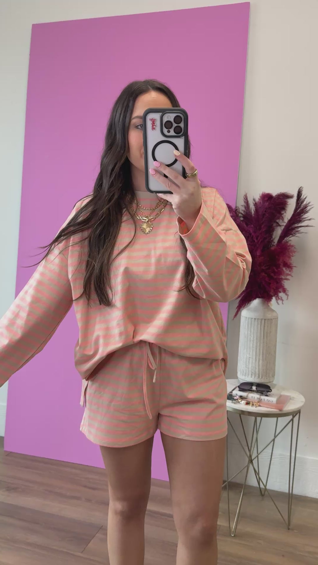 Capture effortless cool girl energy with this striped long sleeve top. The laid-back vibe pairs perfectly with the matching shorts (sold separately) for an instantly coordinated lounge look. Mix and match with your existing pieces or style them together for that coveted relaxed aesthetic. Soft, comfortable, and undeniably chic—the ultimate piece for casual days at home or out and about.