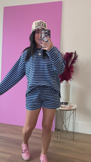 Unwind Striped Shorts-Blue/Navy