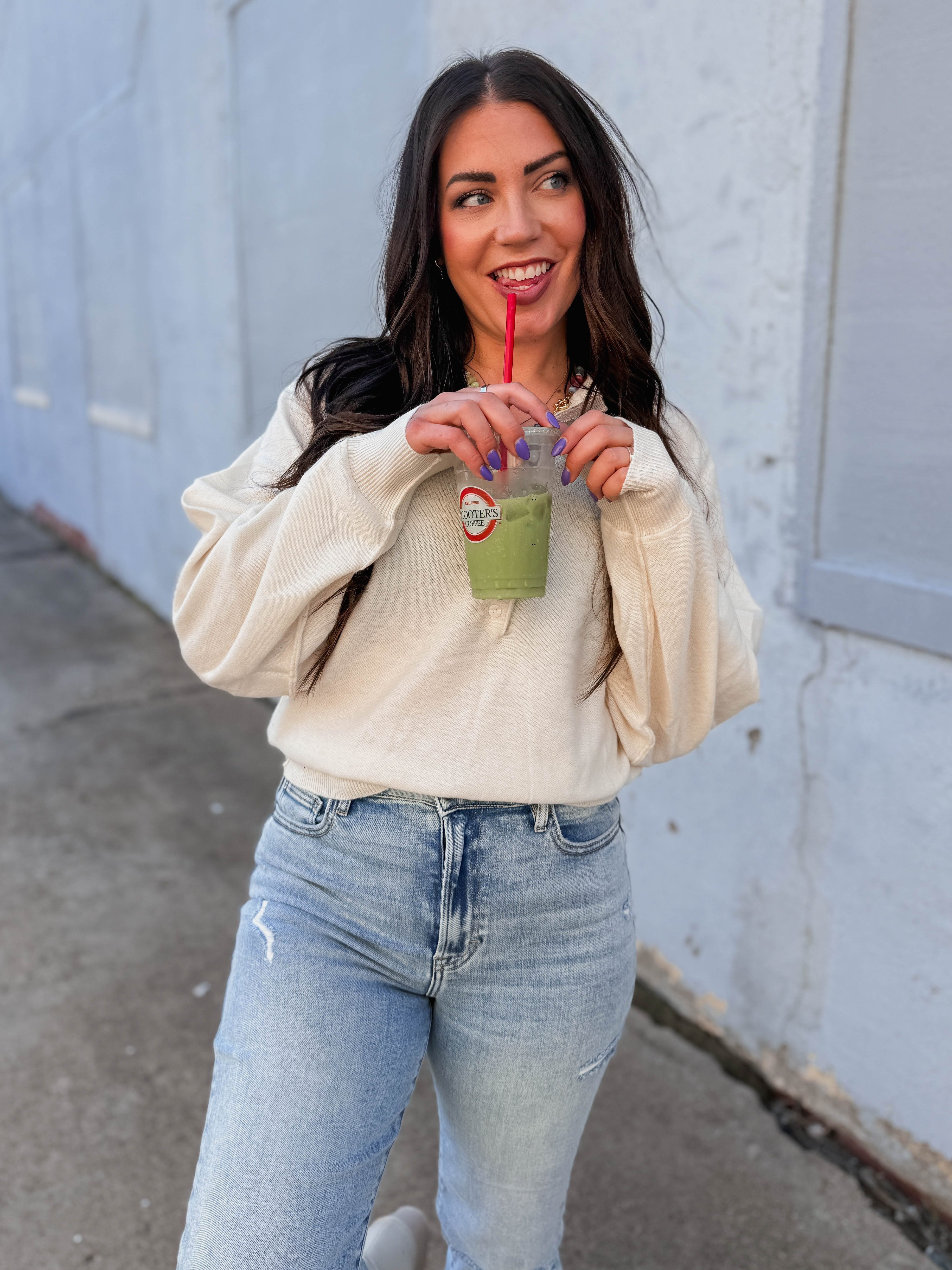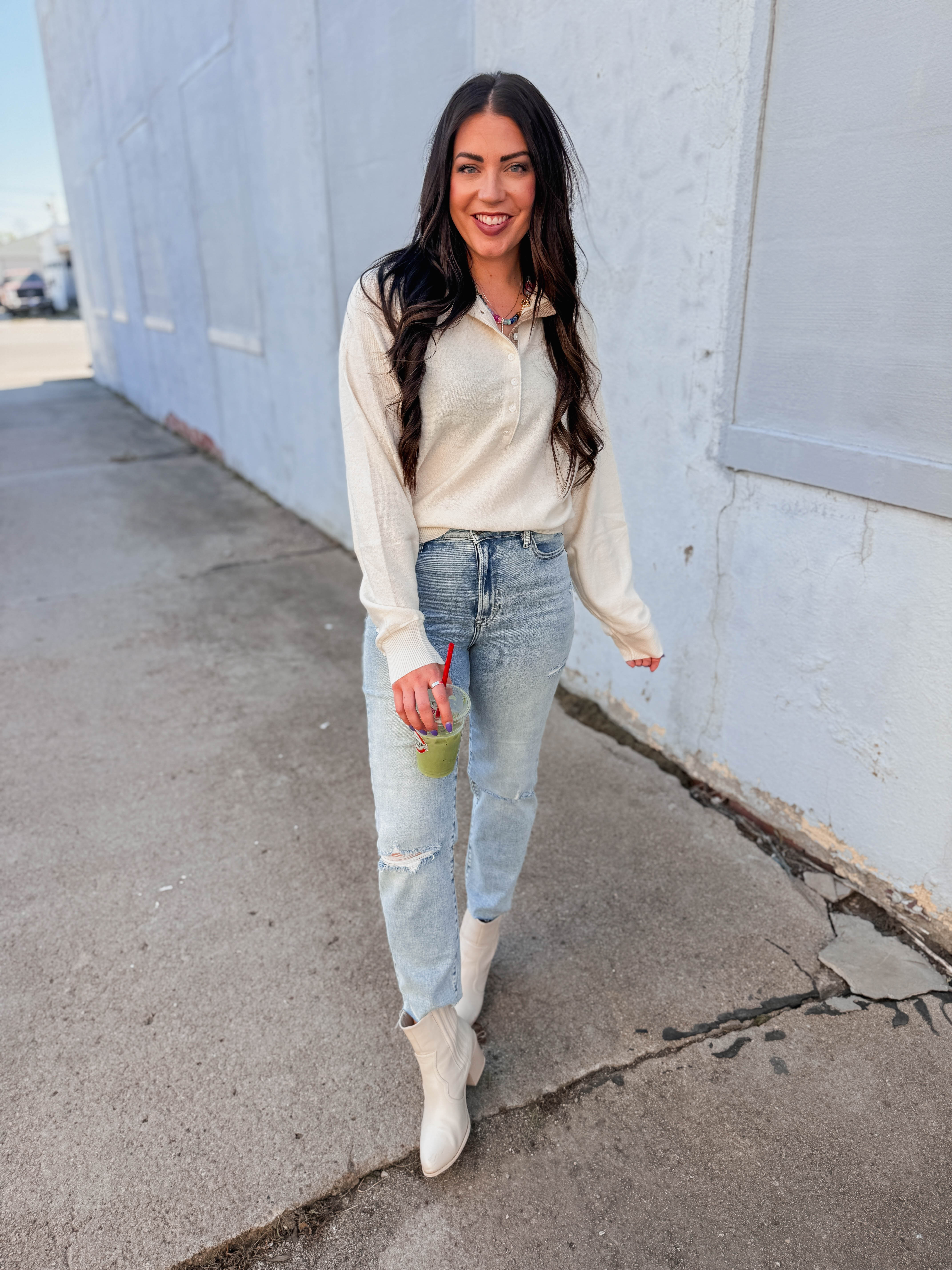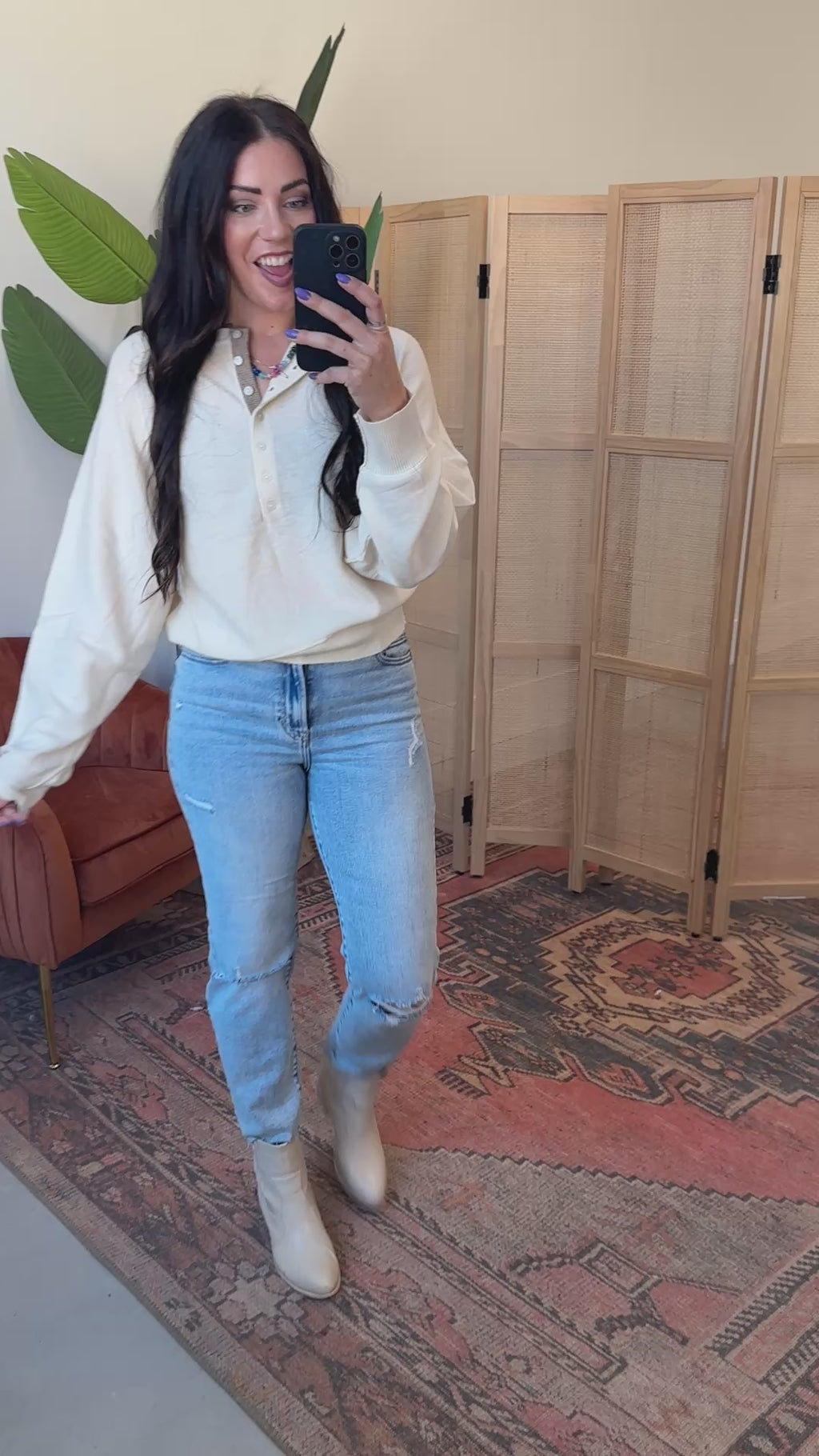 The Liliana Henley Sweater blends cozy comfort with effortless style. Featuring a classic Henley neckline with a half-button closure and ribbed hems, it’s perfect for breezy days. Long sleeves and a relaxed fit take you smoothly from work to weekend fun.