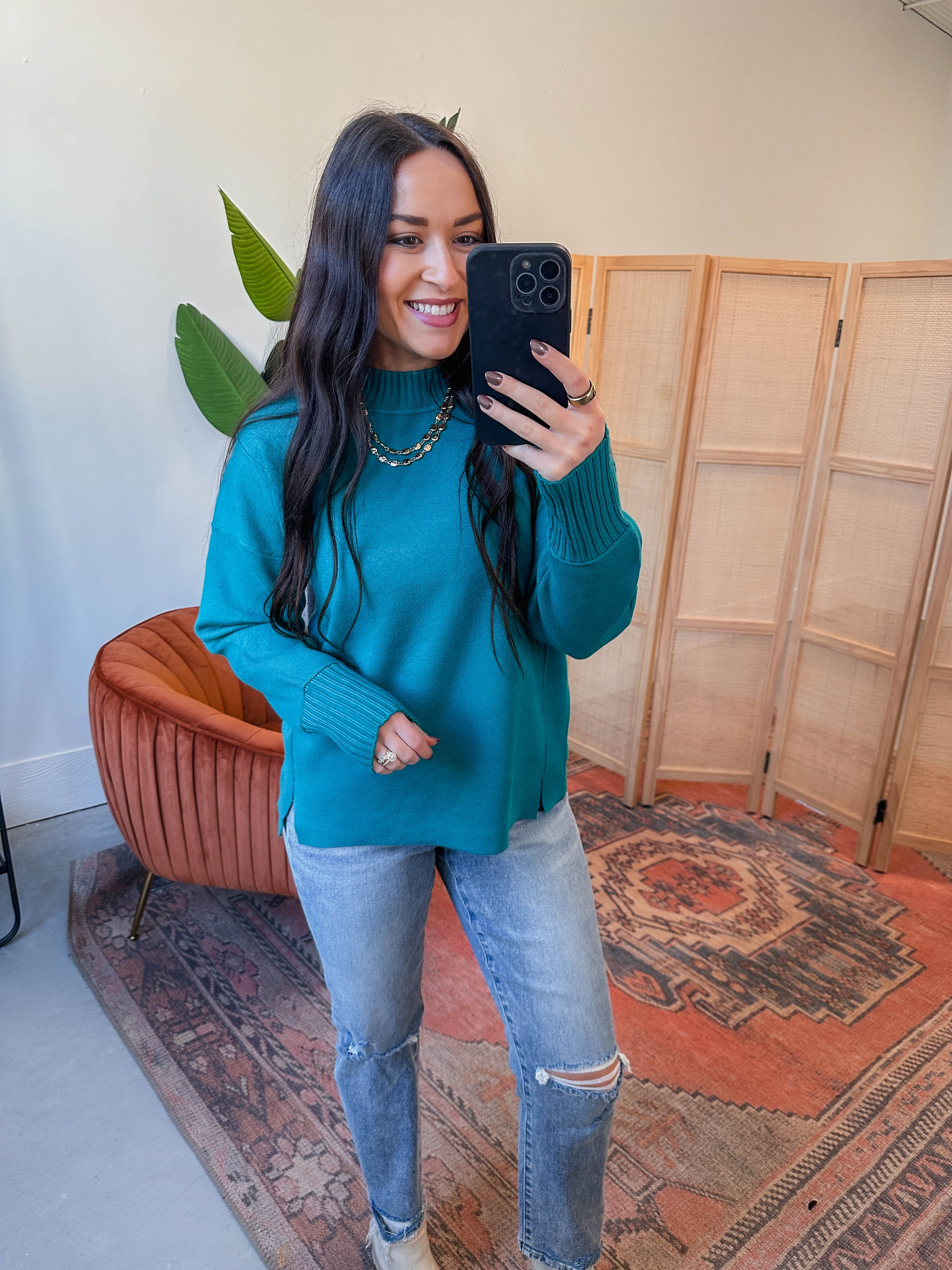 Cozy up in the Sophia Sweater, a simple pullover with playful twists. Featuring a chic mock neck, long sleeves, and side slits for easy movement, plus chunky ribbed hems and stylish shoulder seams that make this sweater stand out. Perfect for adding a pop of coral charm to any outfit!