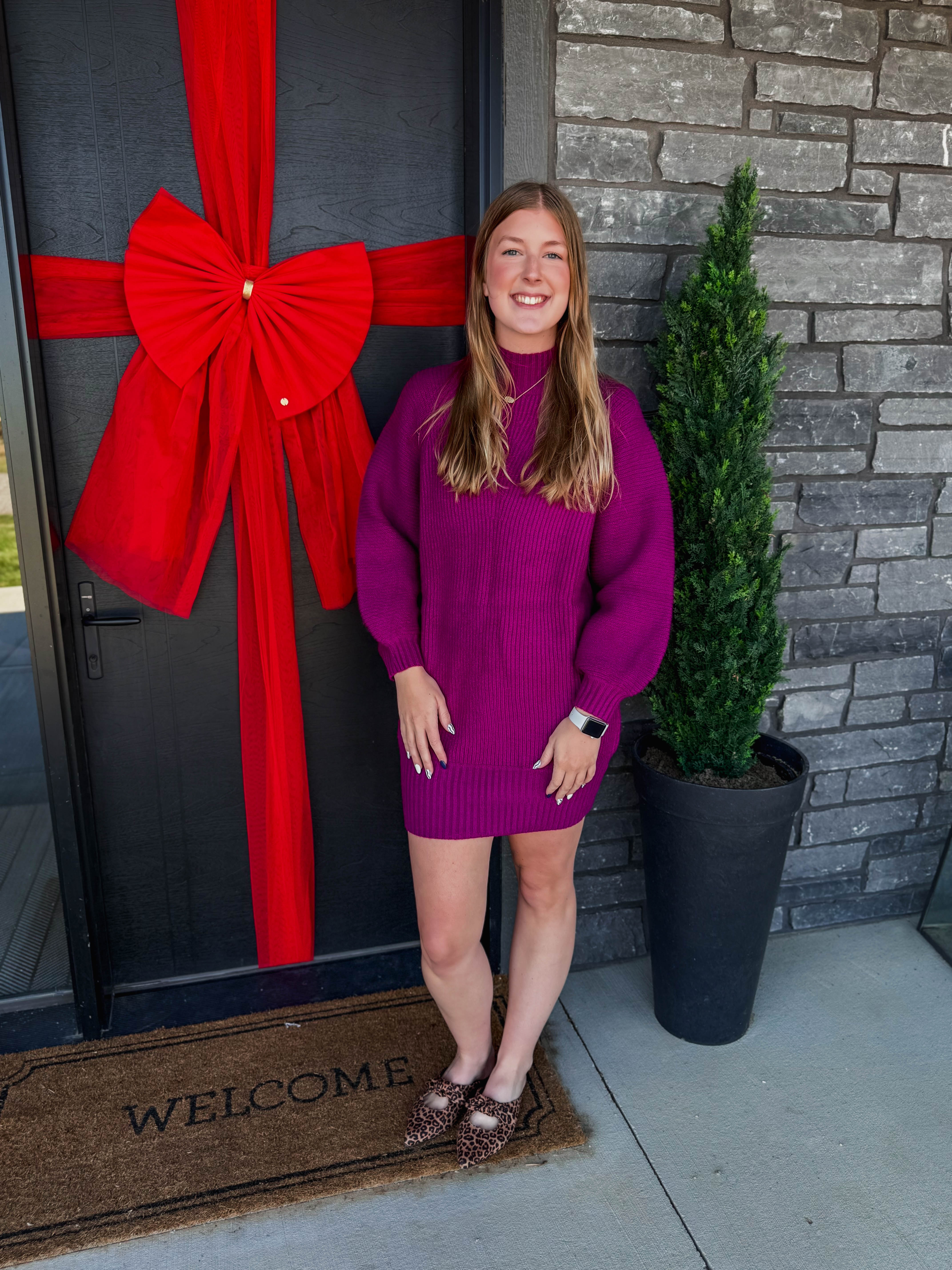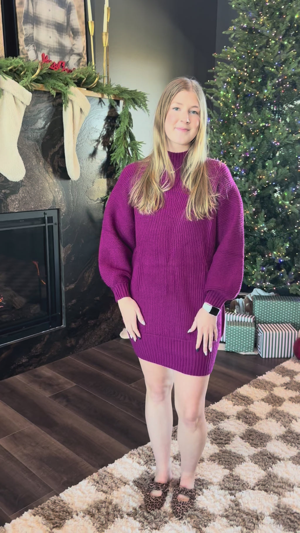 Cozy up in the Alia Mini Sweater Dress! Featuring a chic mock neckline, long sleeves, and ribbed hems, this relaxed-fit dress pairs perfectly with knee-high boots for a cute, cool-weather look.