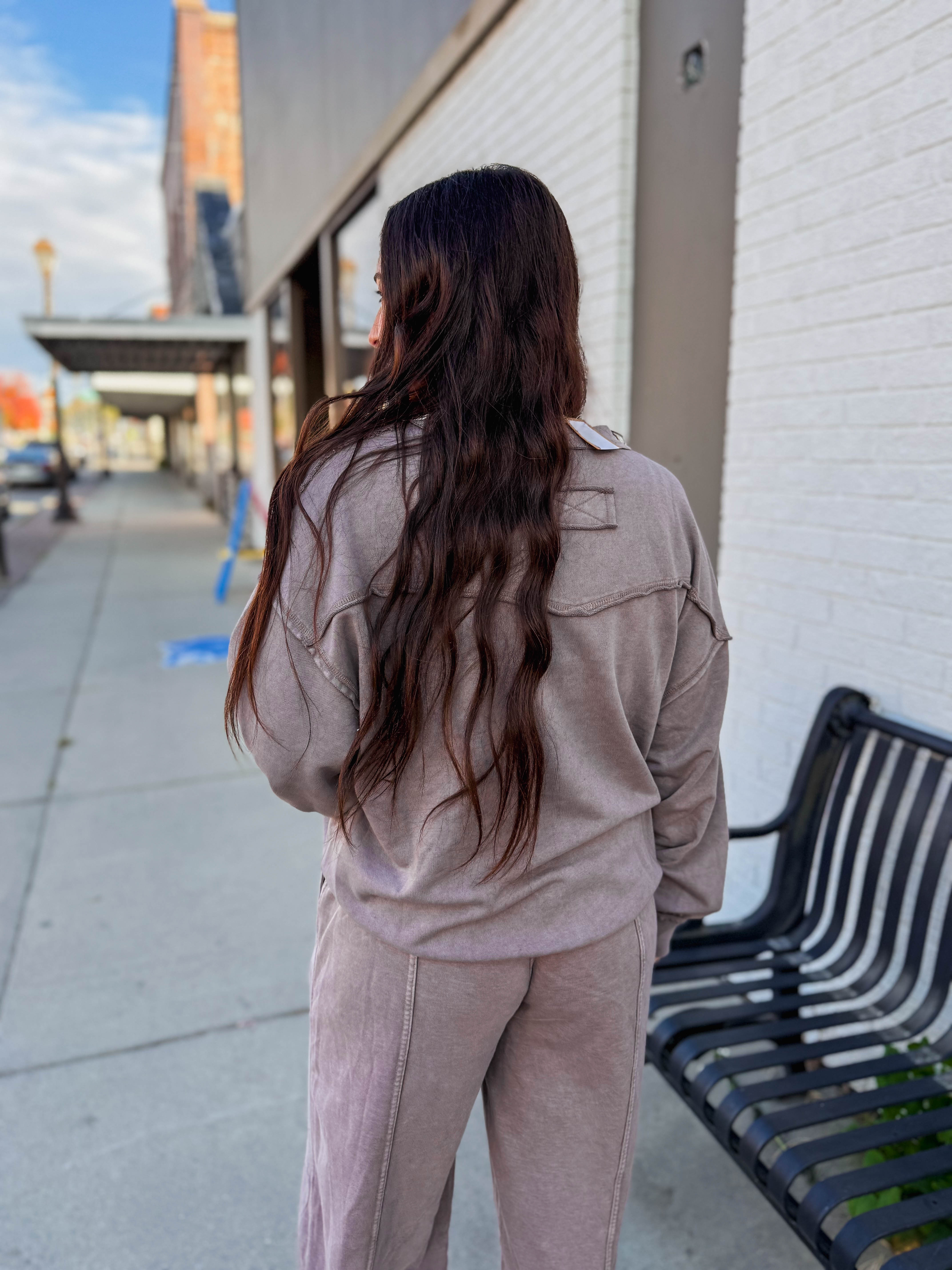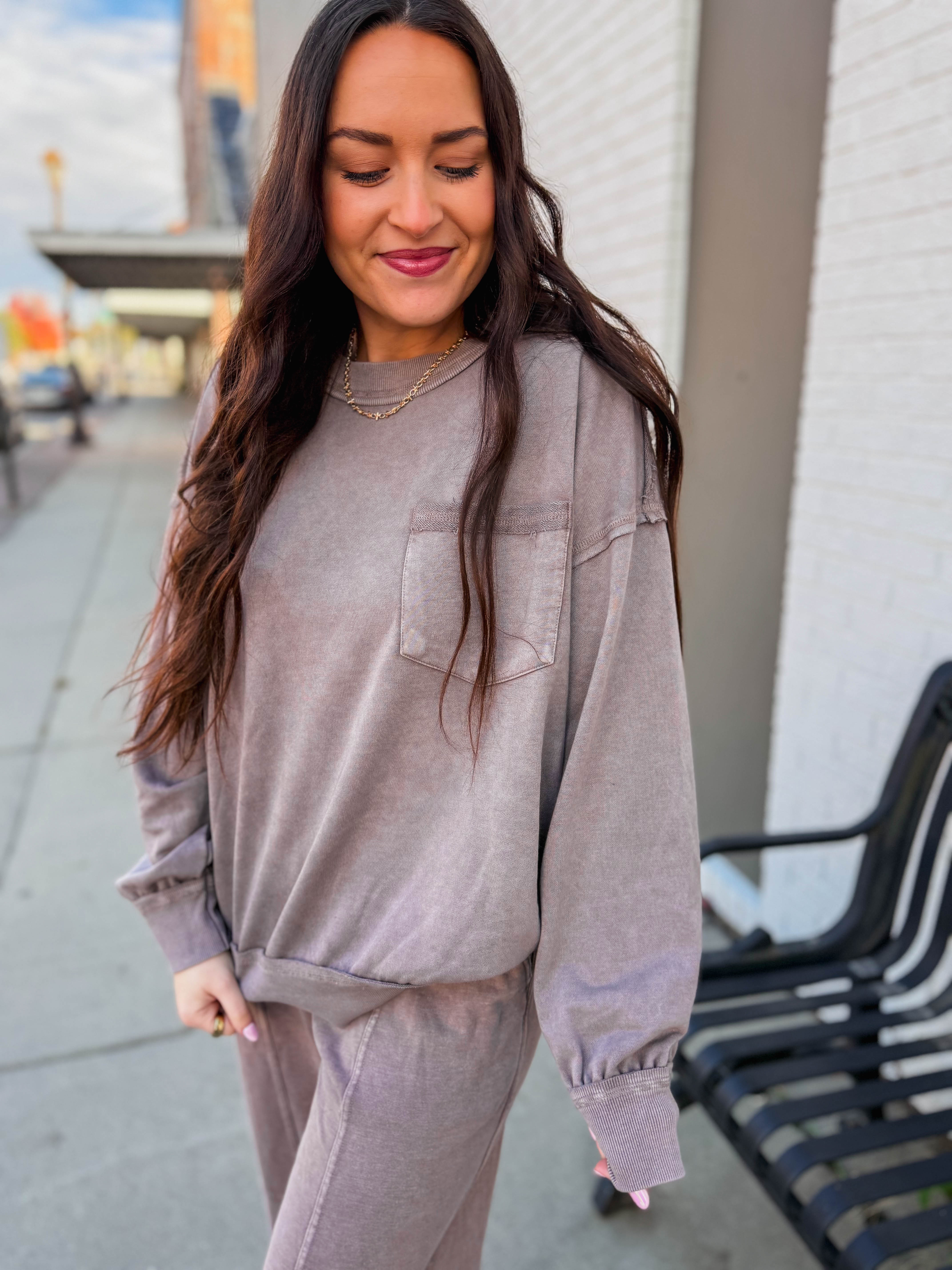 Stay comfy and cute in the Cozy Mode Pullover! With a cozy crew neckline, long sleeves, and a handy chest pocket, this French Terry top is perfect for lounging, running errands, or just chilling in style.