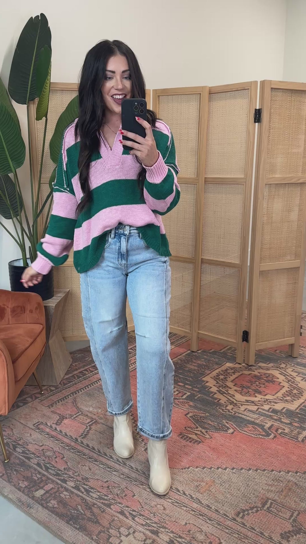 - This sweater has an oversized fit.