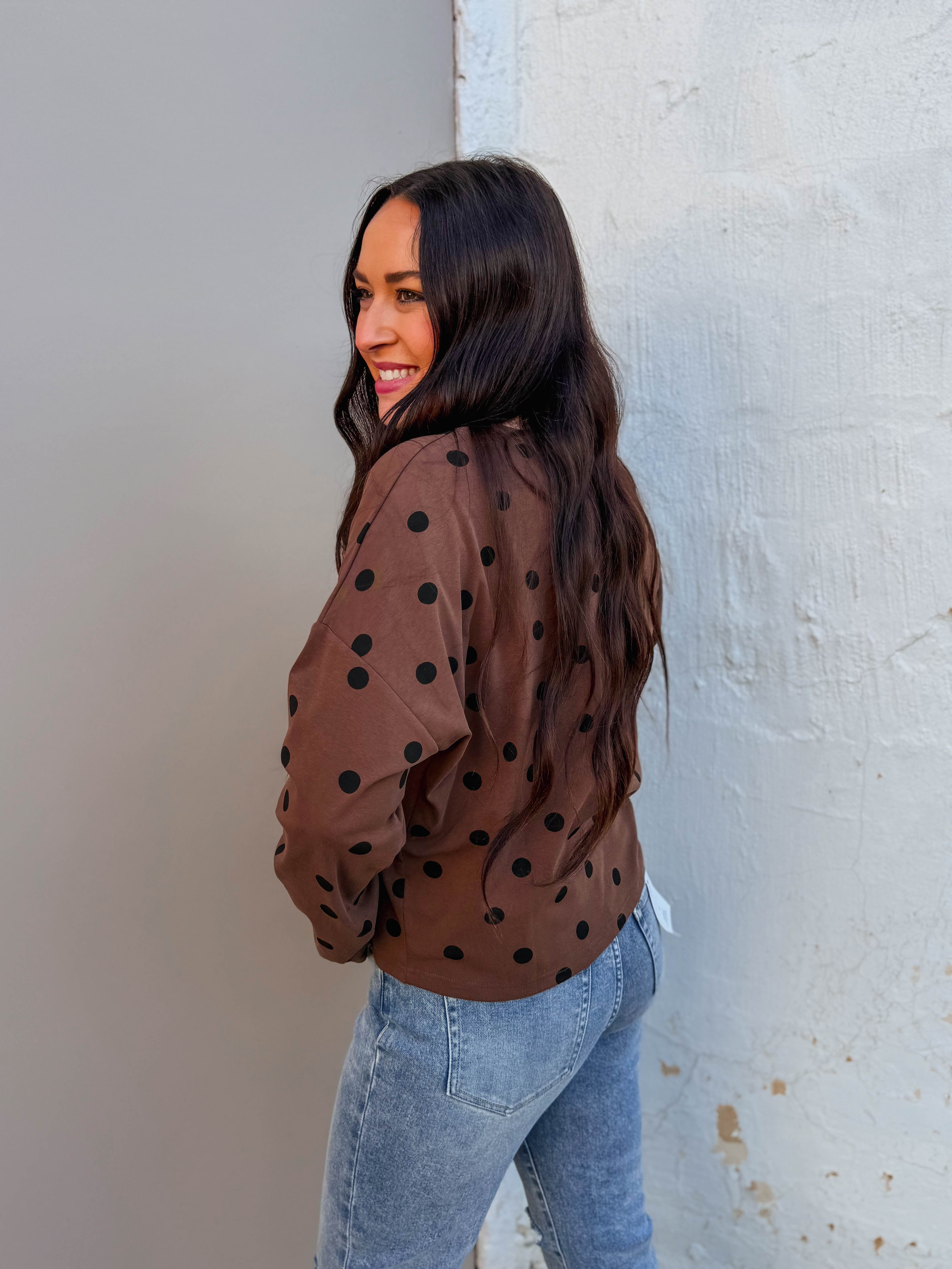 Effortlessly chic, the Sweet Spot Cardi transitions from office to weekend with ease. Featuring a classic round neckline, long sleeves, and convenient button-front closure, it's the perfect layering piece. The playful polka dot pattern adds a fun, trendy touch that keeps things interesting.