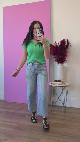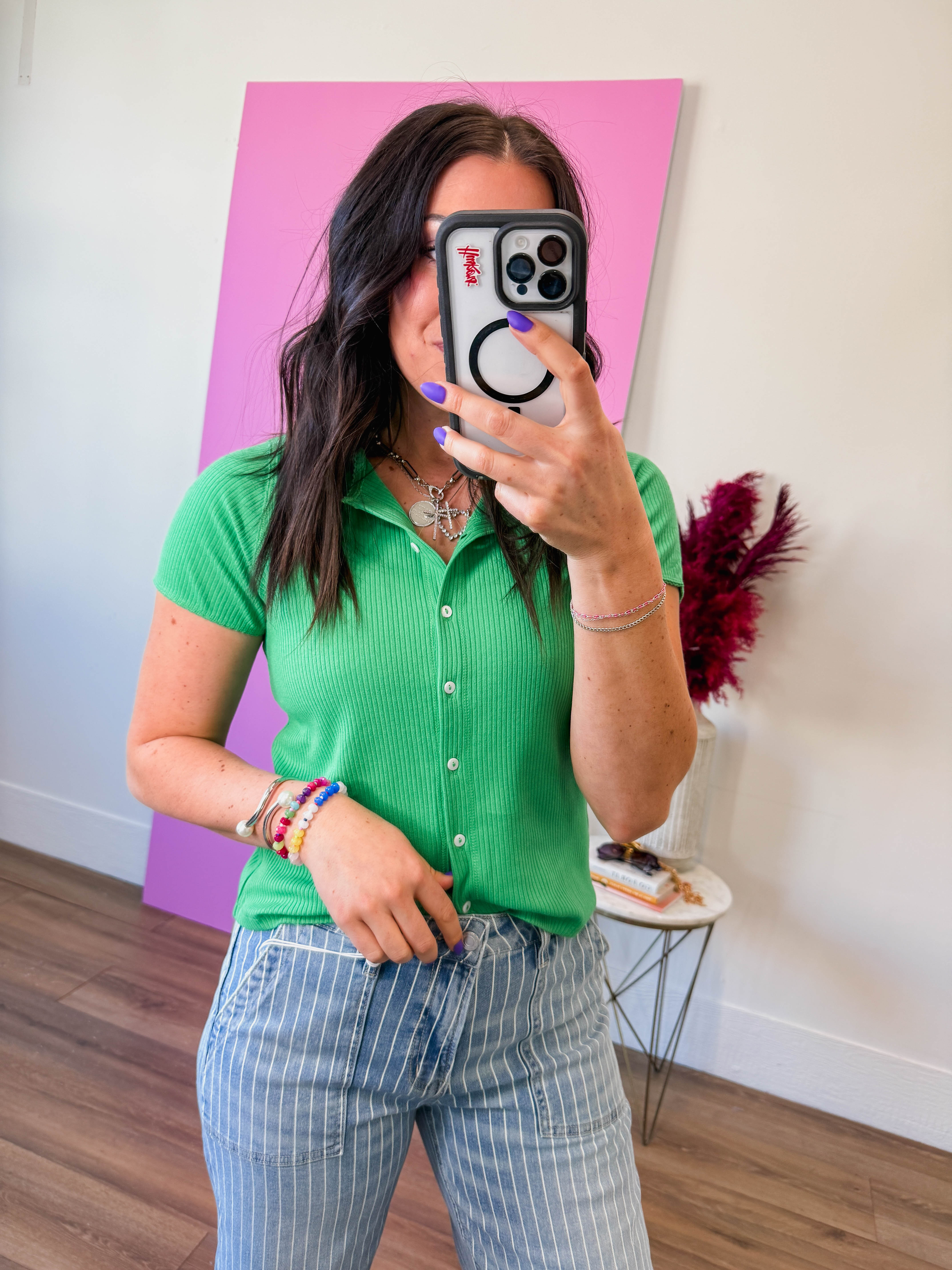 The Maya Ribbed Button Down Tee is your new go-to for effortless style! This cute cardigan tee brings a fun pop of color to any outfit, whether you're layering it over your favorite basics or rocking it solo. With its trendy ribbed design and button-down front, it's the perfect piece for mixing and matching. Dress it up or down—this versatile tee does it all with playful charm.
