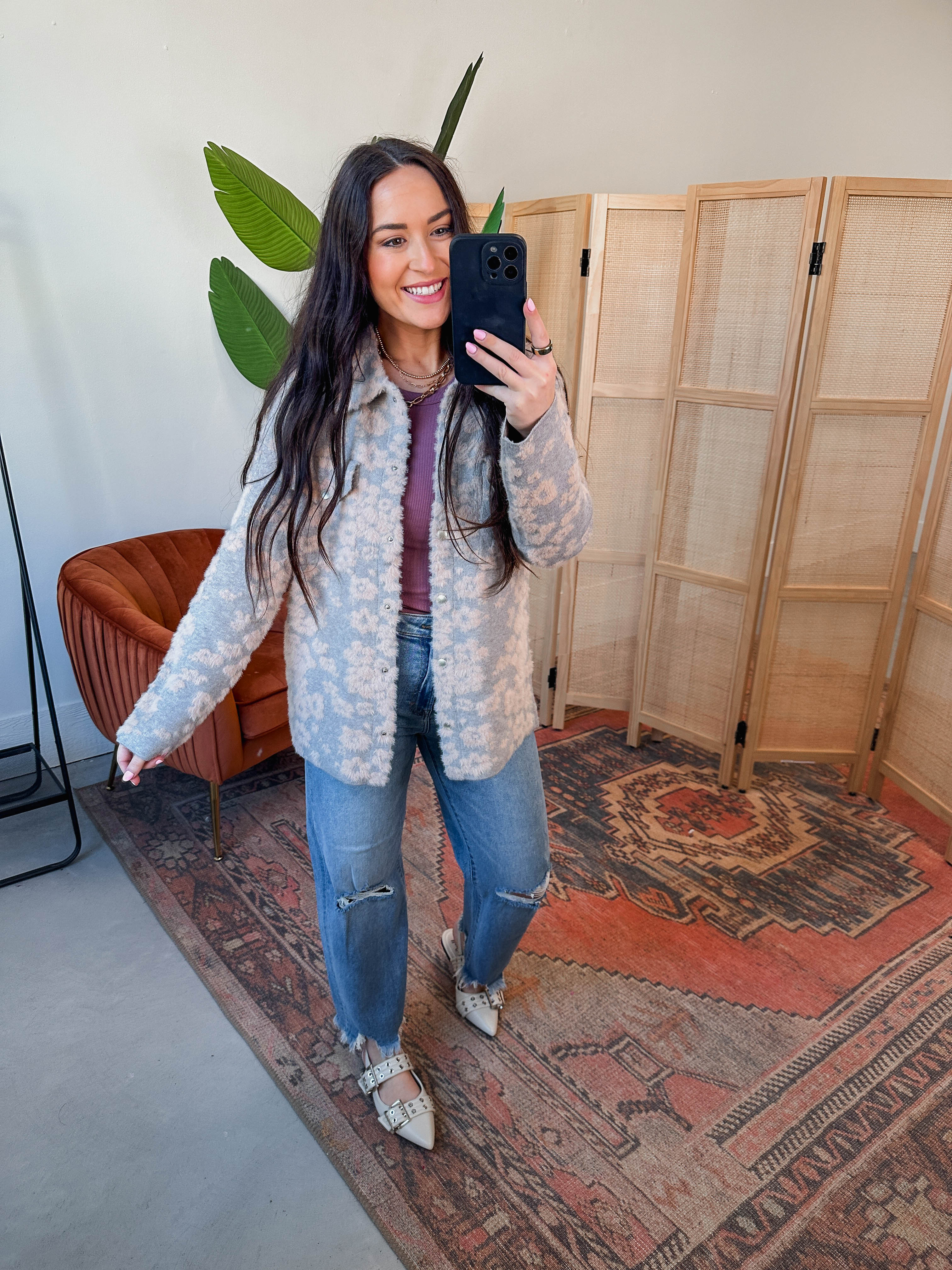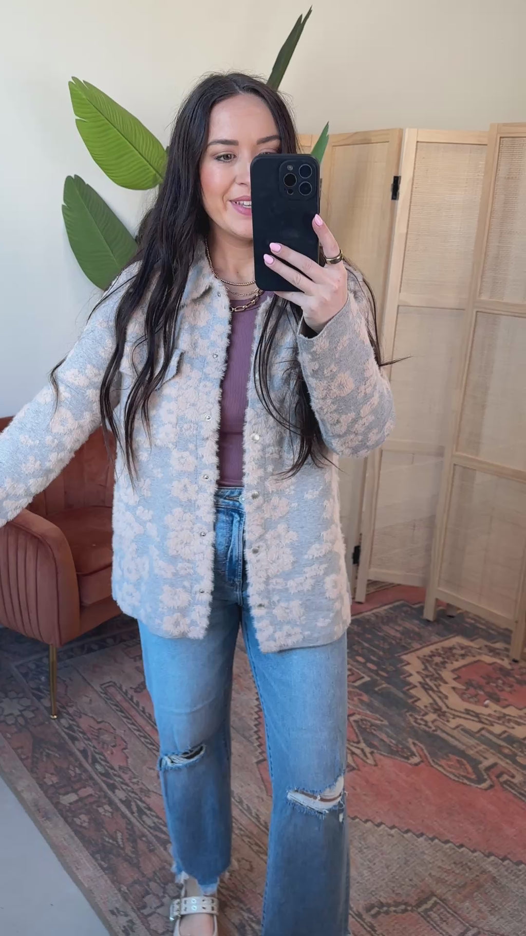 The Presley Floral Jacket is a fun, unique layering piece featuring a collared neckline and long sleeves. Its floral jacquard fabric and button-front closure make it perfect to take you from work to weekend with effortless style.
