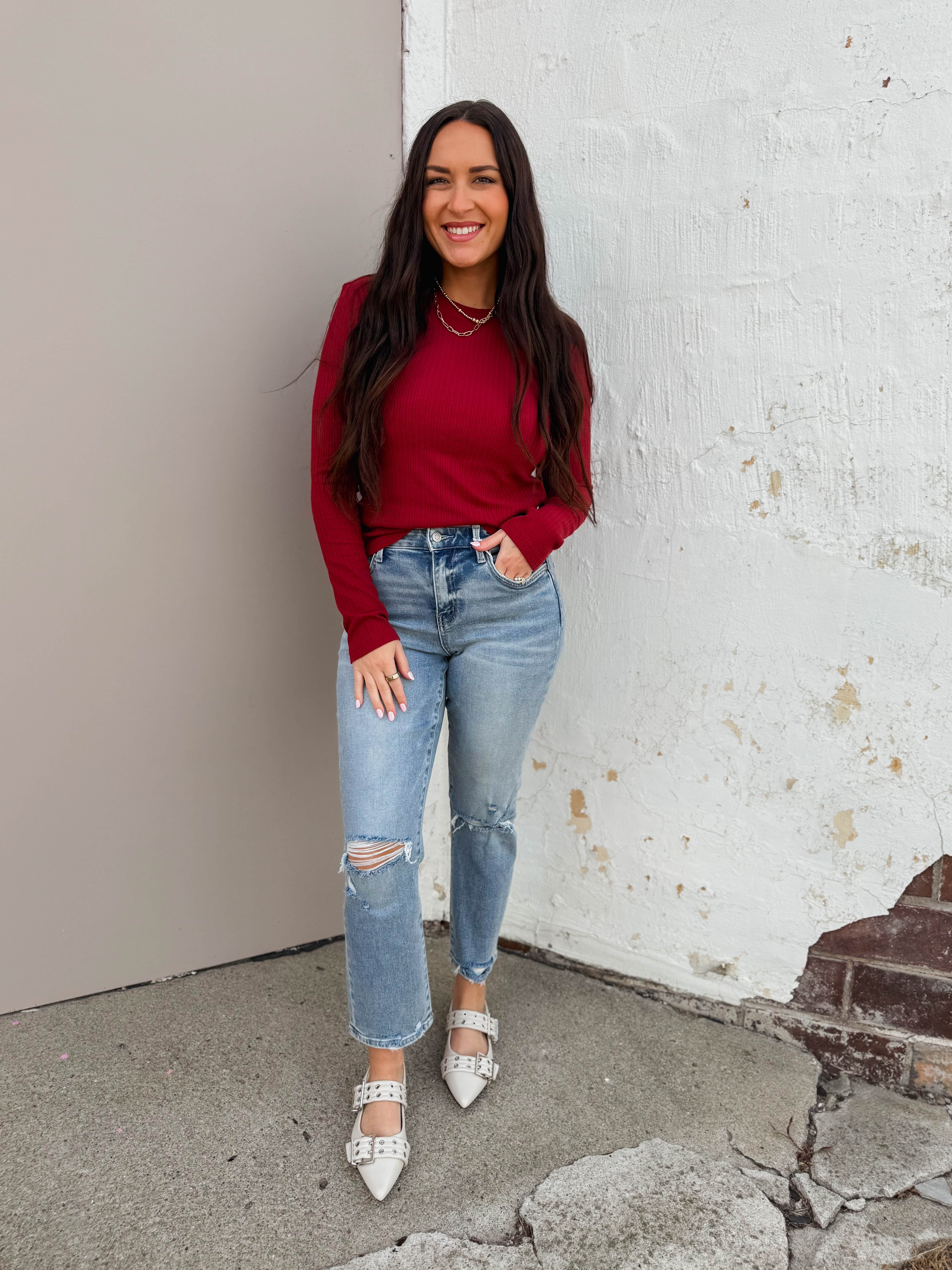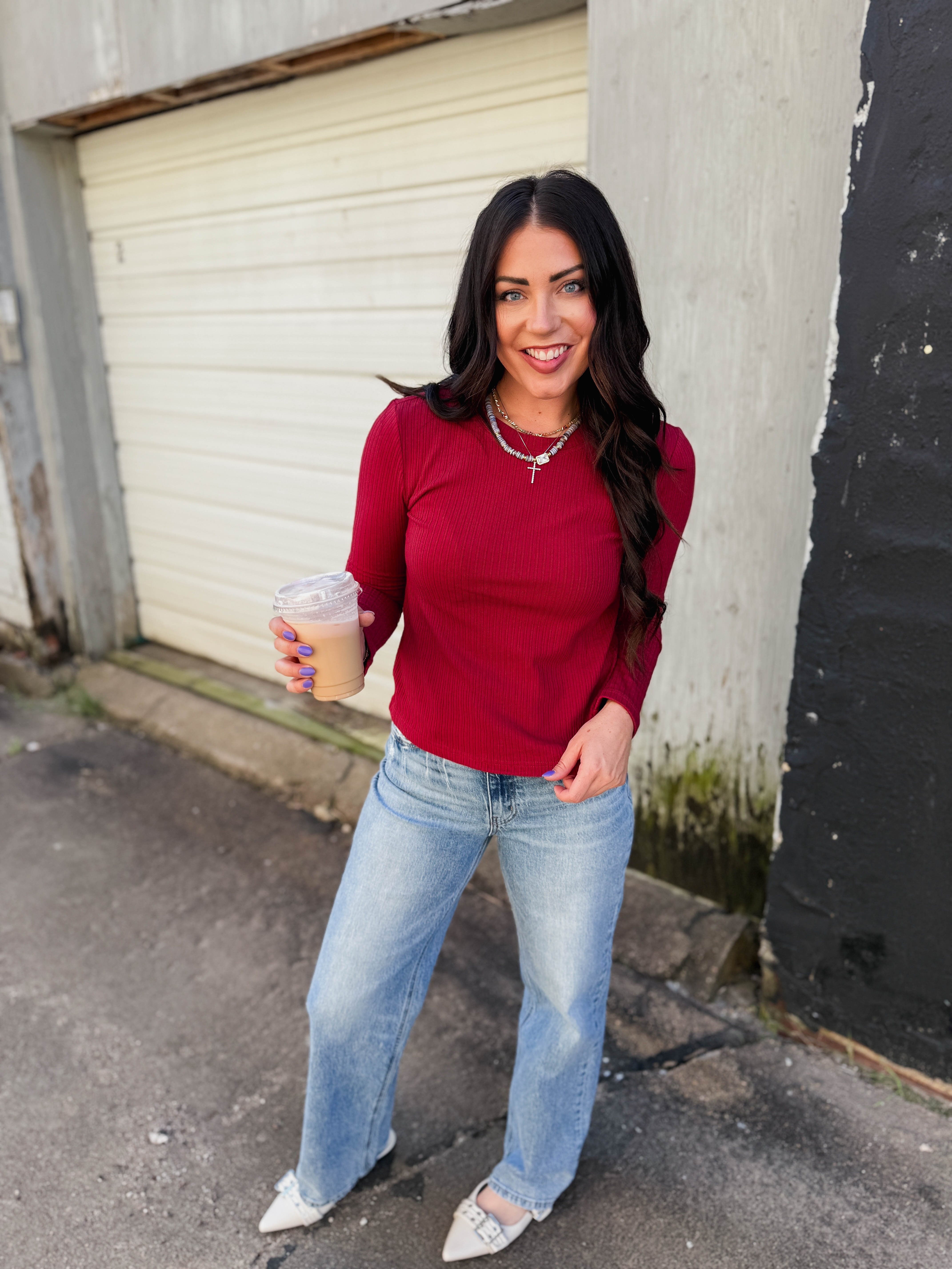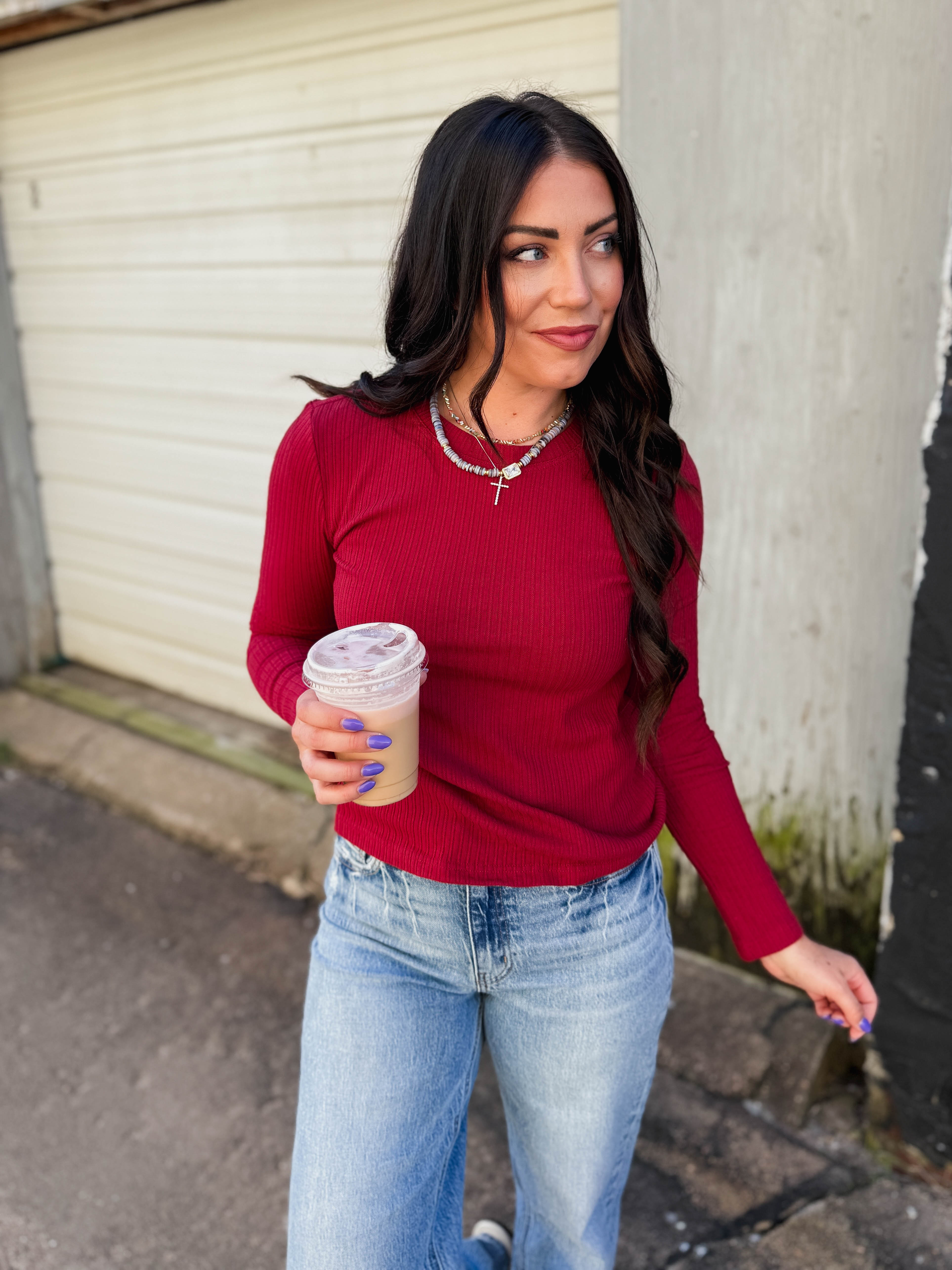 The Minnie Long Sleeve is your go-to basic with a twist. Featuring a cozy crew neckline, ribbed knit texture, and flattering waist length, it’s perfect for sliding from work mode to weekend fun effortlessly. Long sleeves keep you comfy and stylish all day long!