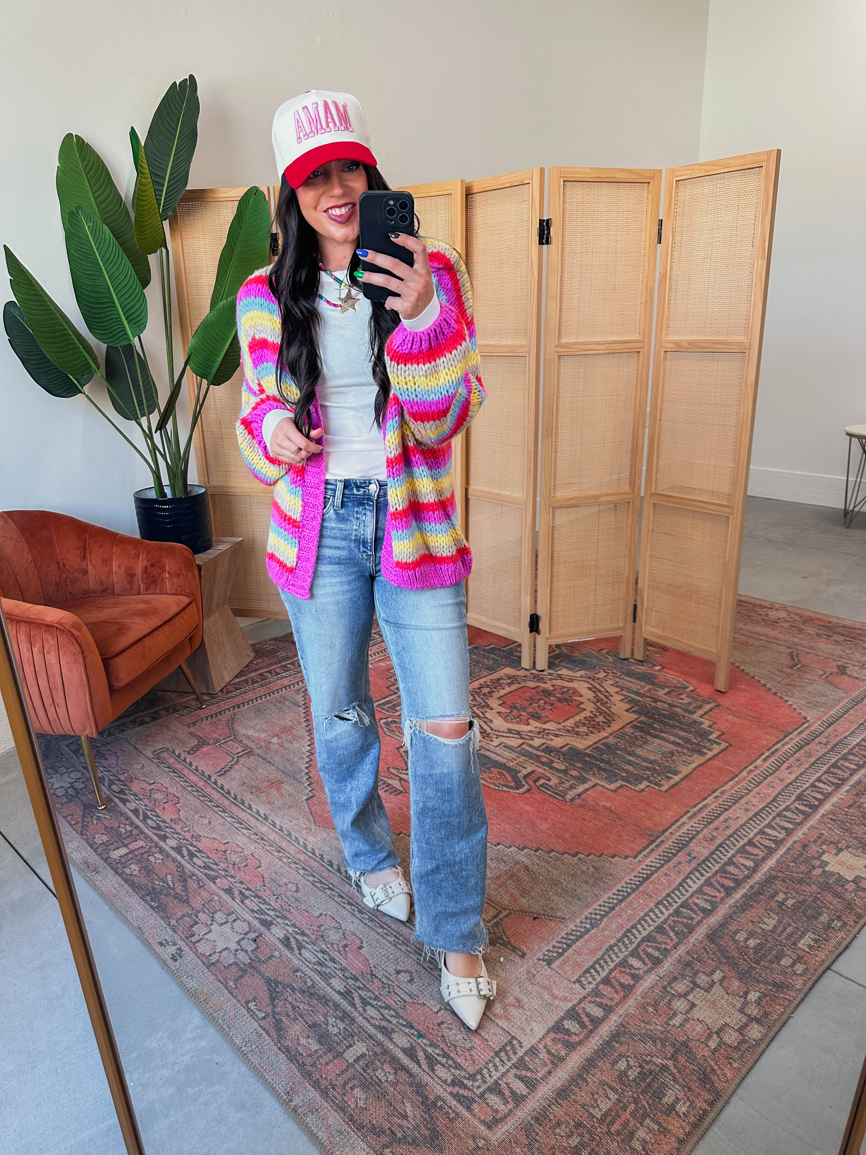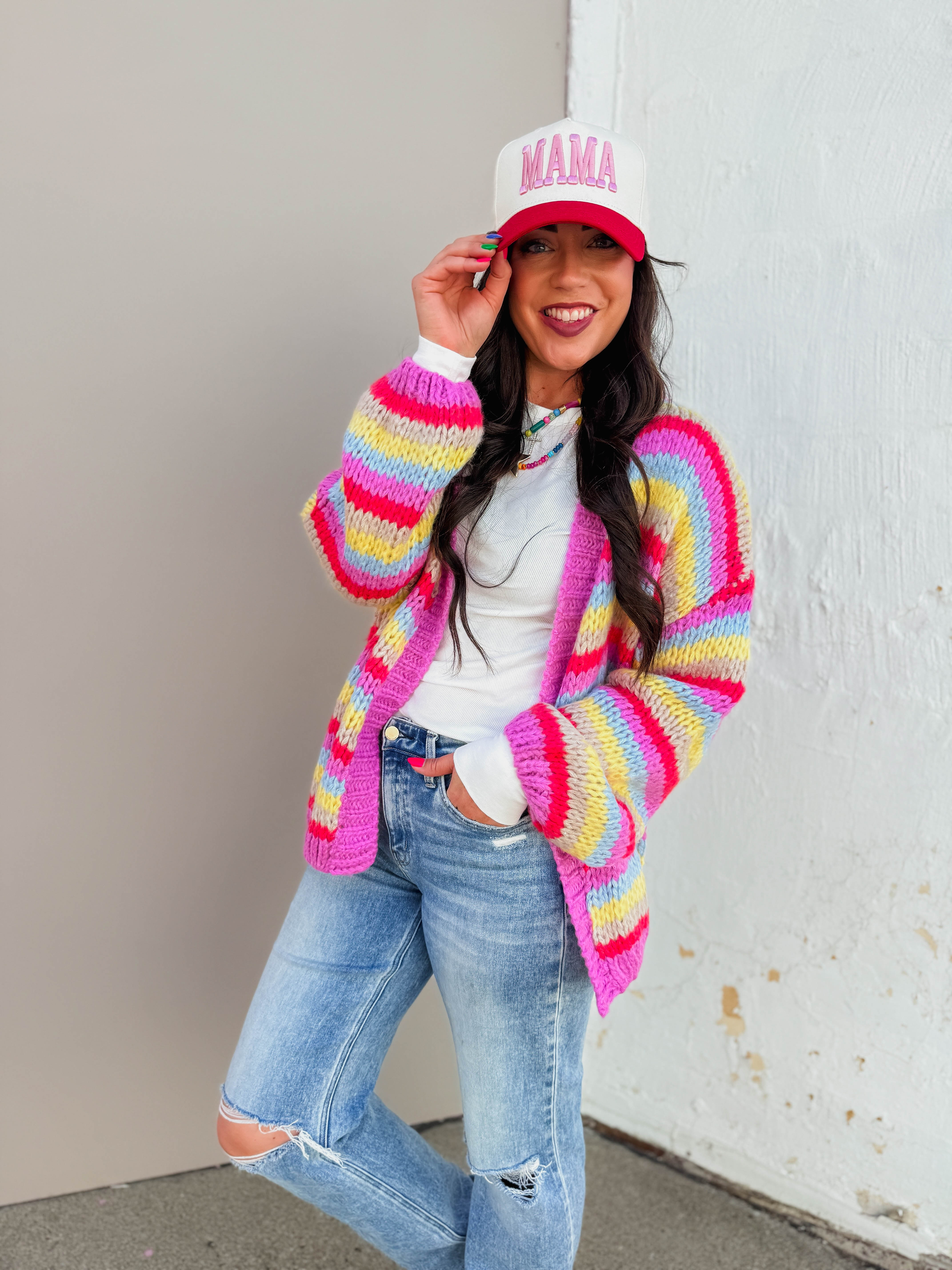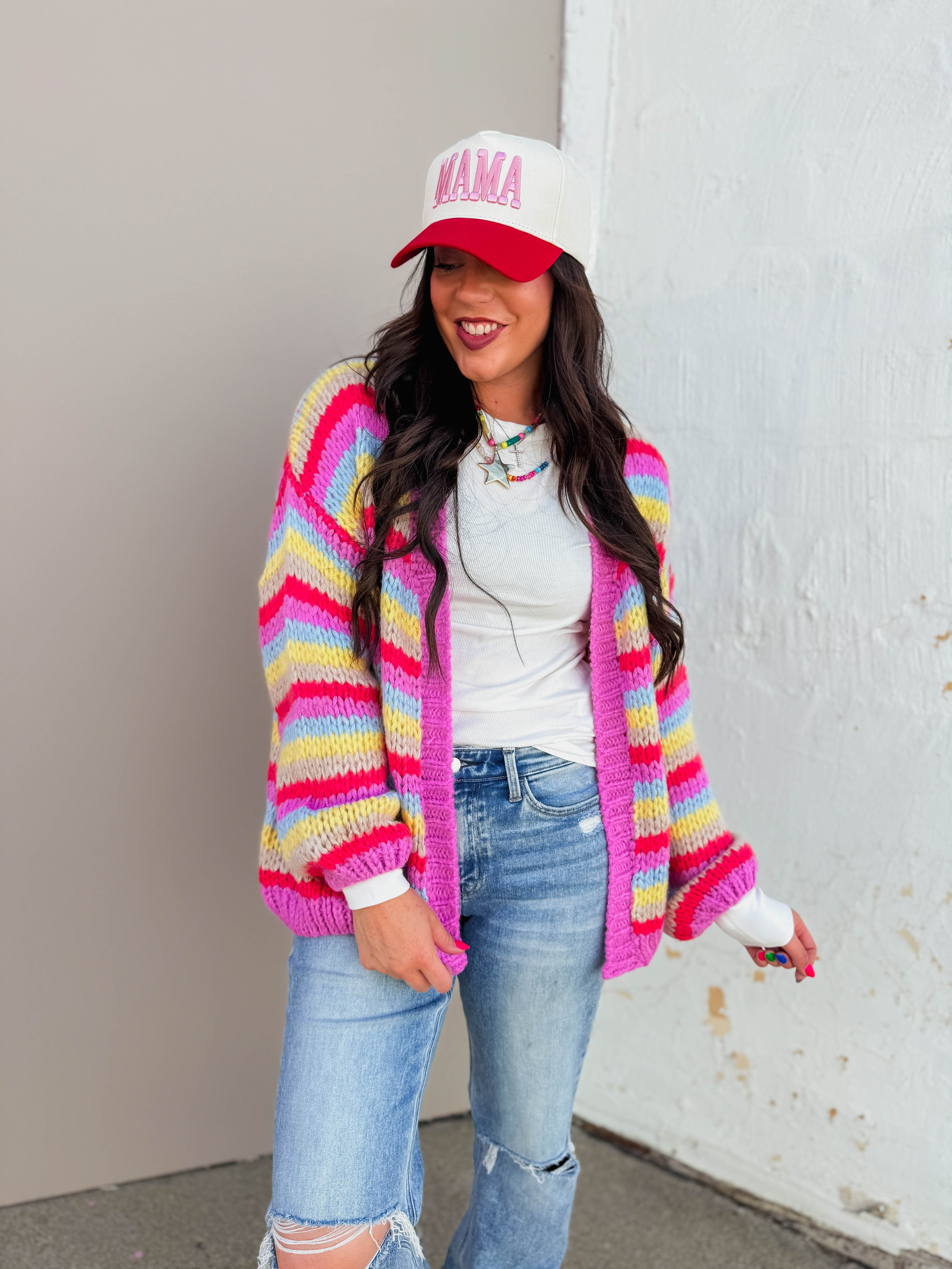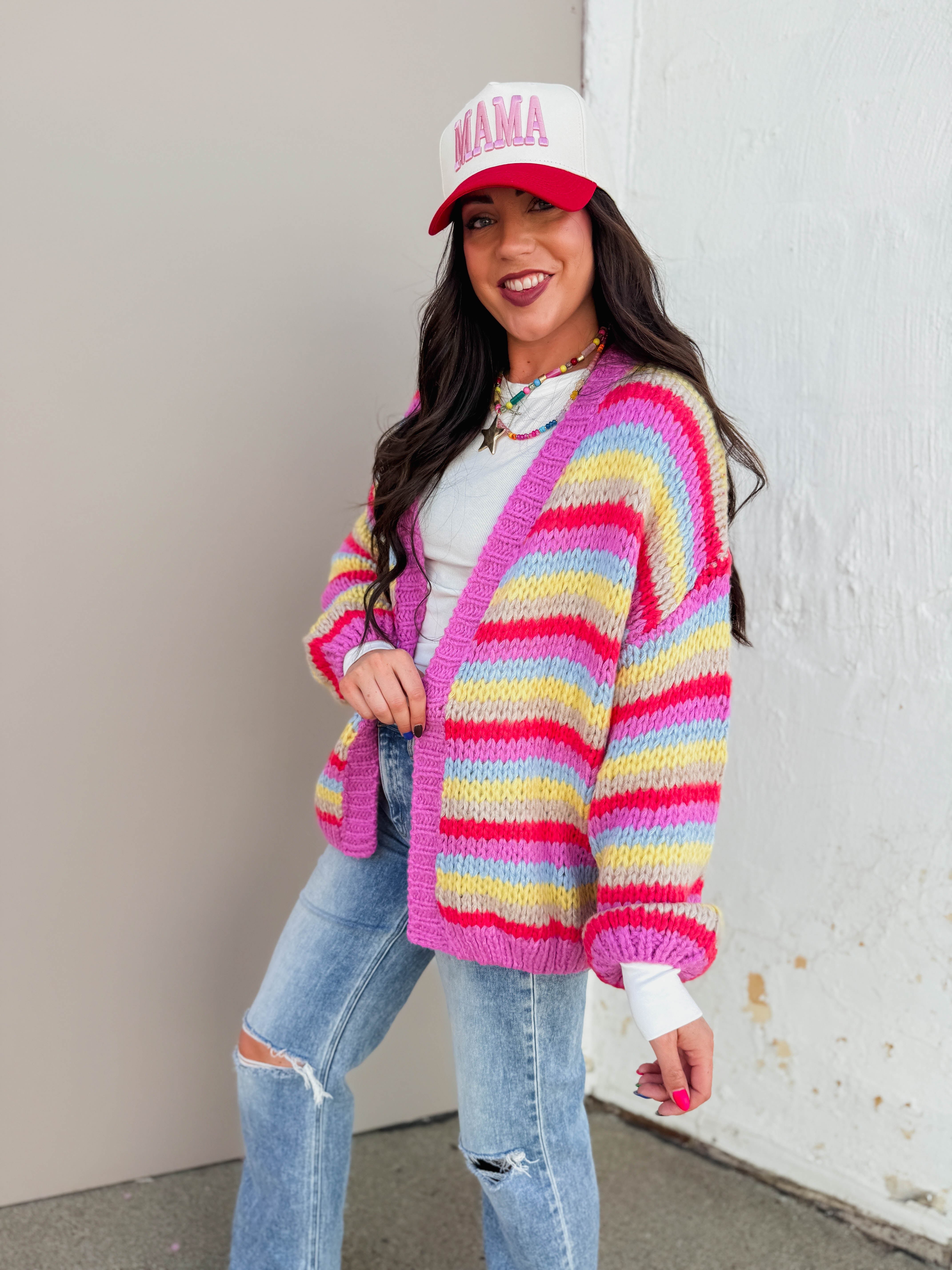 Add a fun pop of color to your wardrobe with the Nova Striped Cardigan. Featuring relaxed fit, multi-color stripes, and contrast trim, this open-front sweater transitions effortlessly from work to weekend. Ribbed hems keep the look polished and comfy all day long.