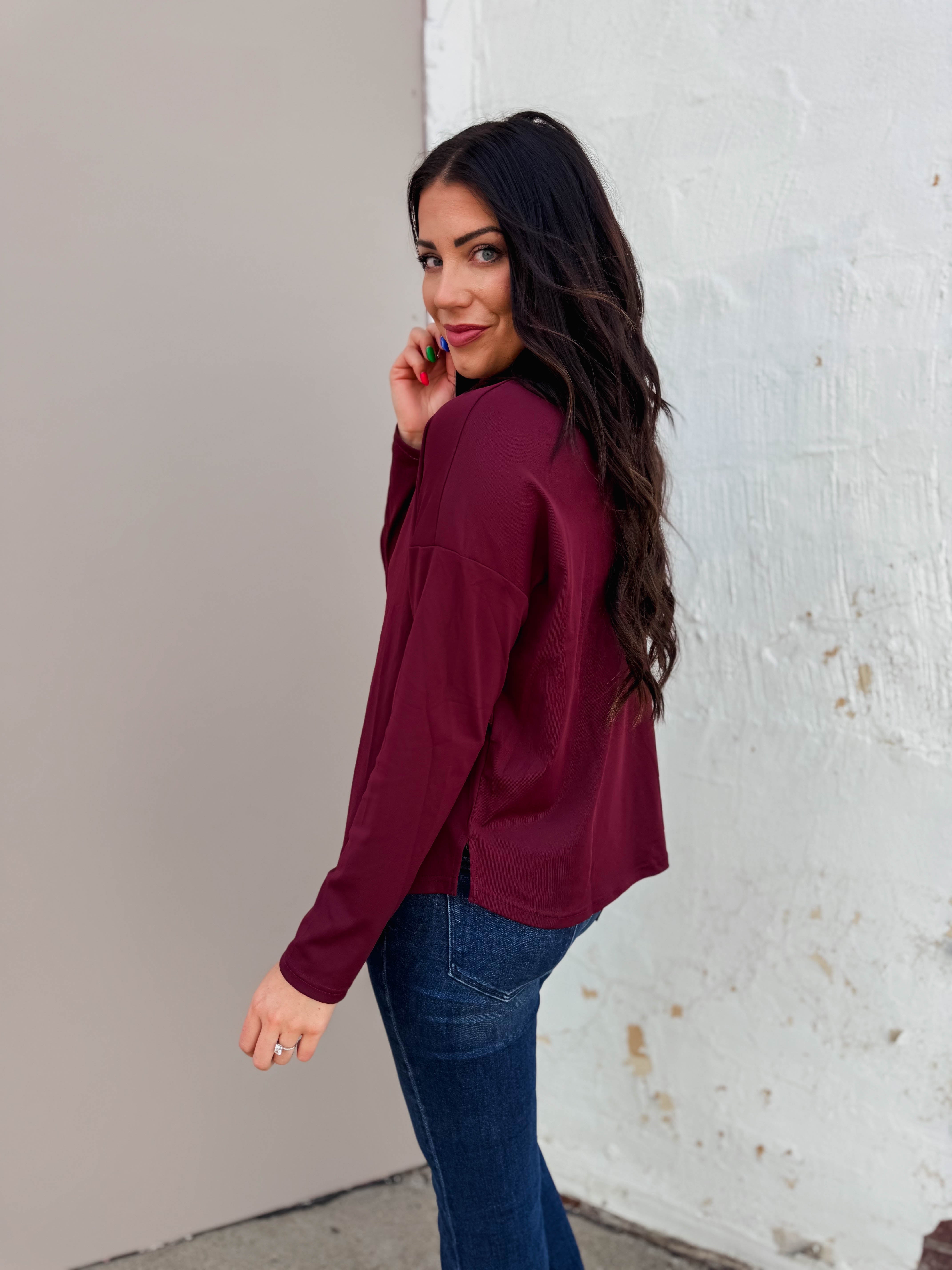 The Remi Mock Neck Top is your new go-to for comfort and style. With its cozy solid fabric, relaxed fit, and drop shoulders, it’s perfect from work to weekend. Long sleeves and a mock neck add a chic touch—wear it anywhere, feel effortlessly cool!