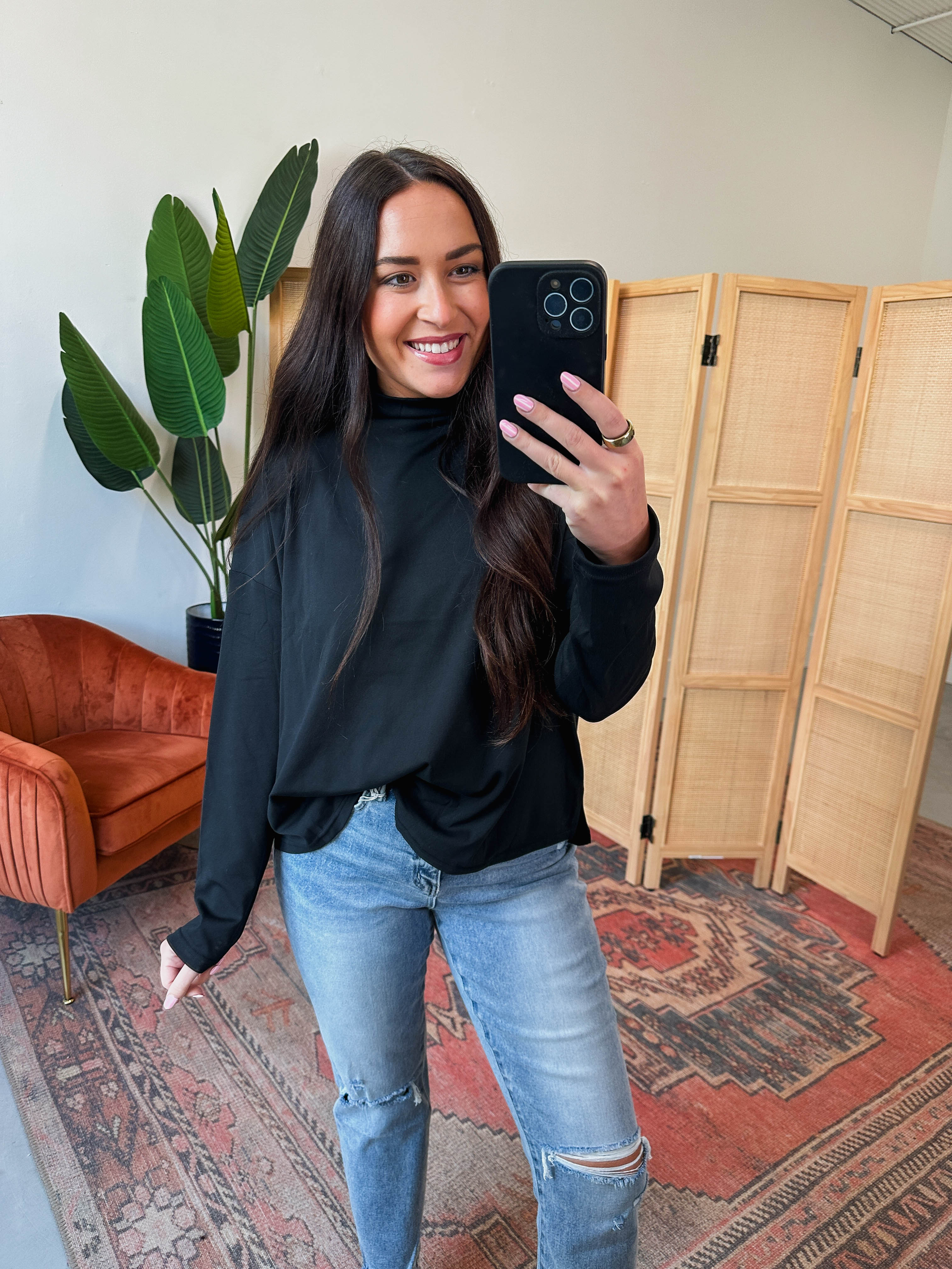 Remi Mock Neck Top-Black