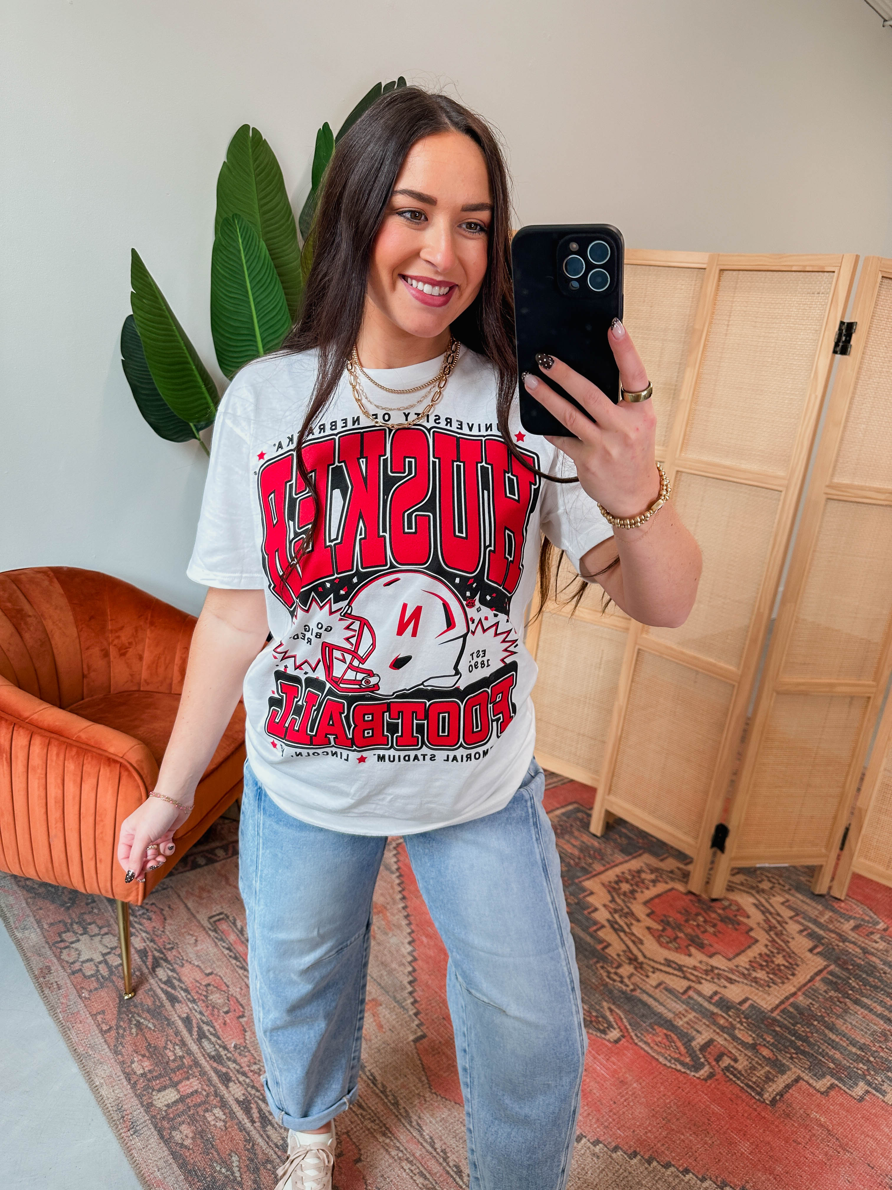 Show your Husker pride in this soft, lightweight tee featuring a bold Nebraska Football graphic. With a relaxed fit and short sleeves, it’s perfect for game day fun and easy comfort all season long.