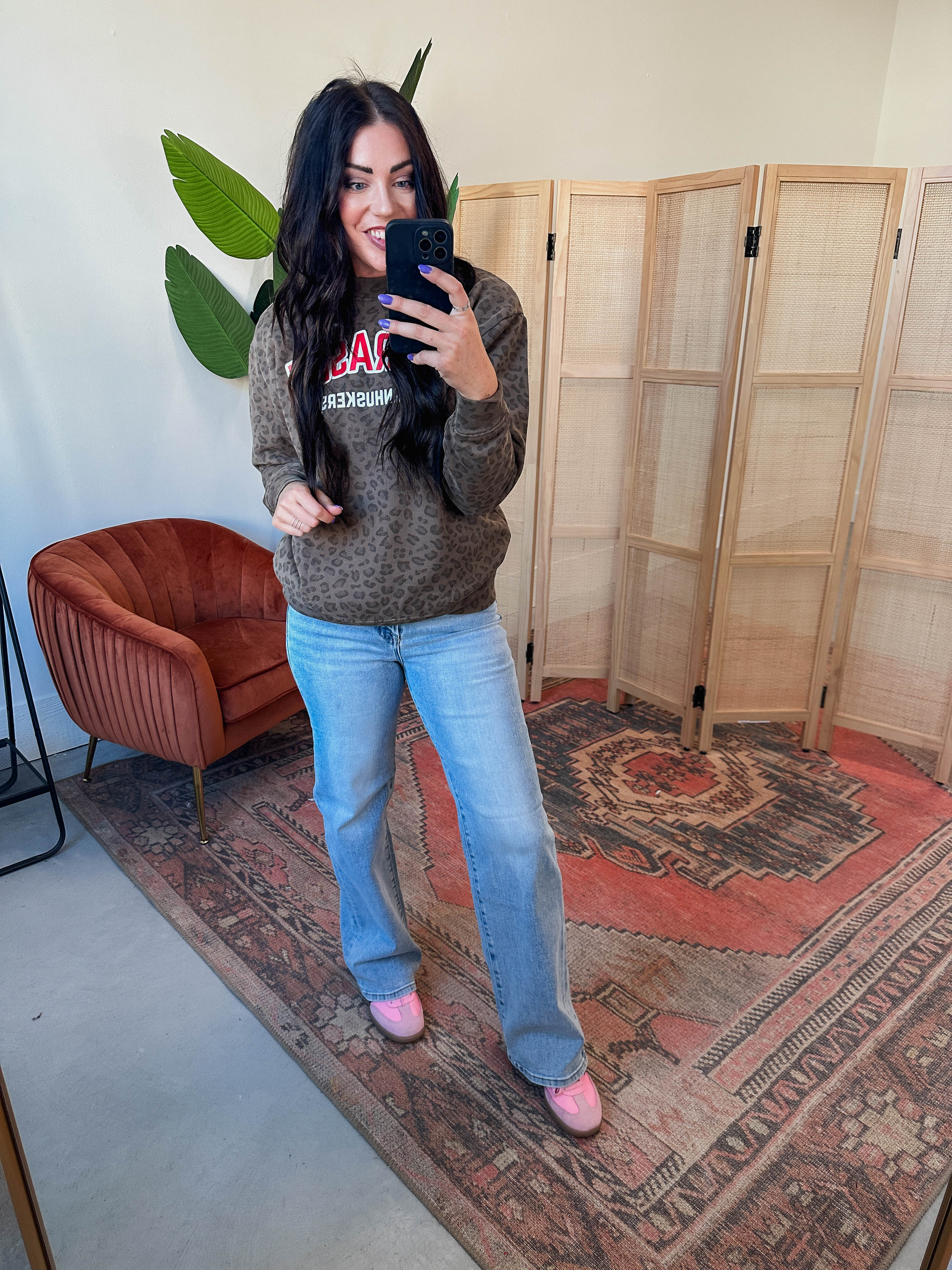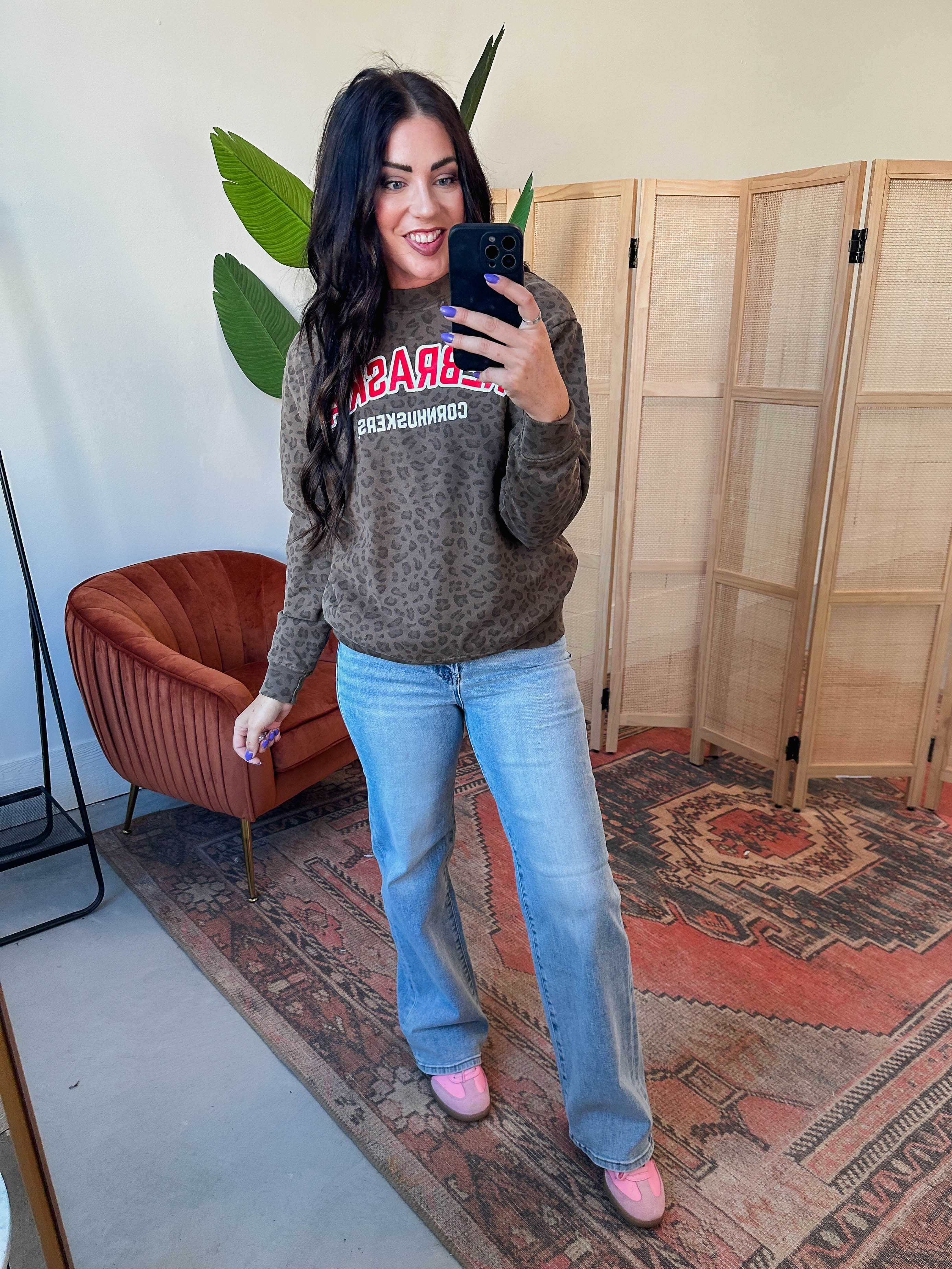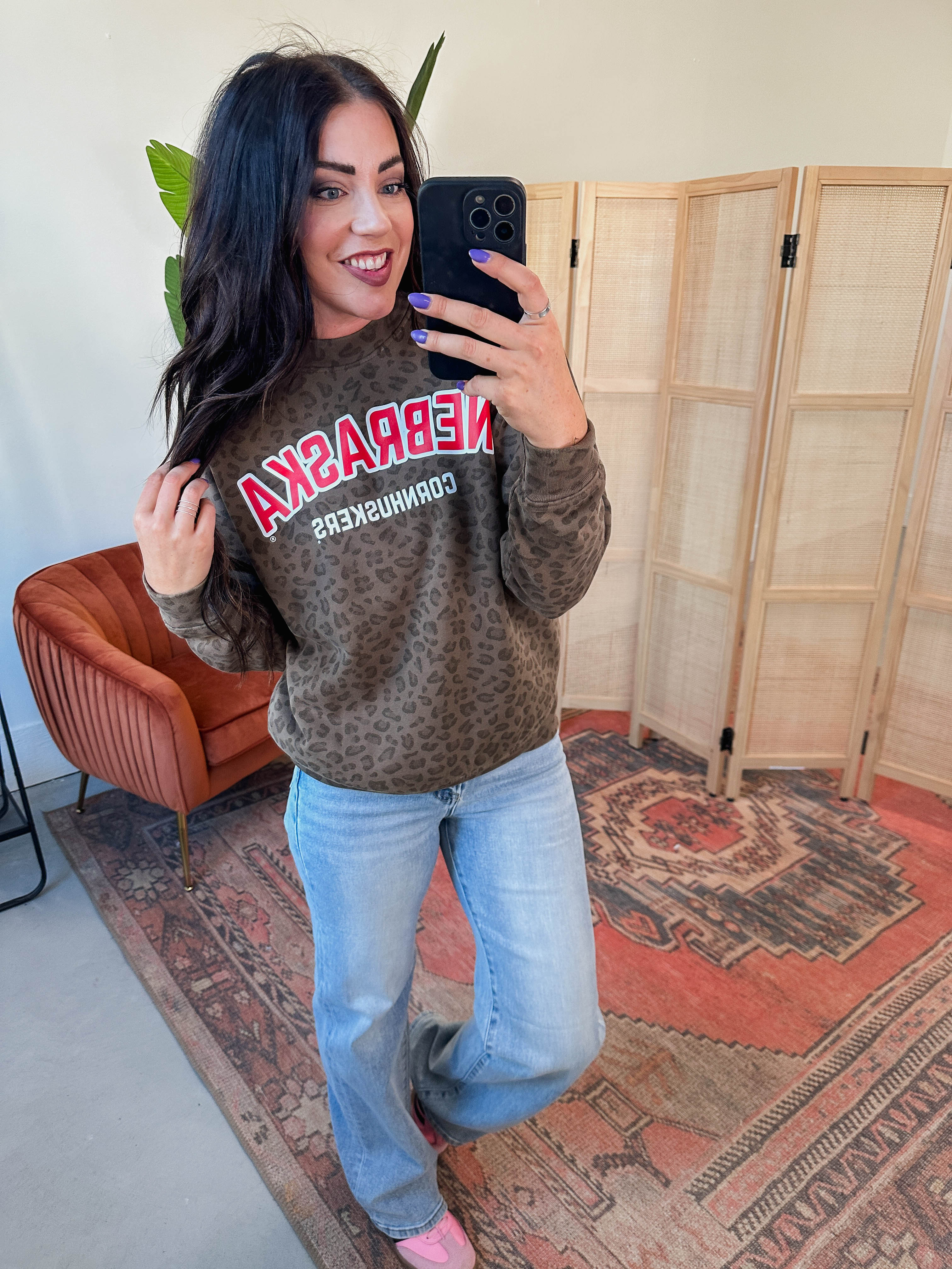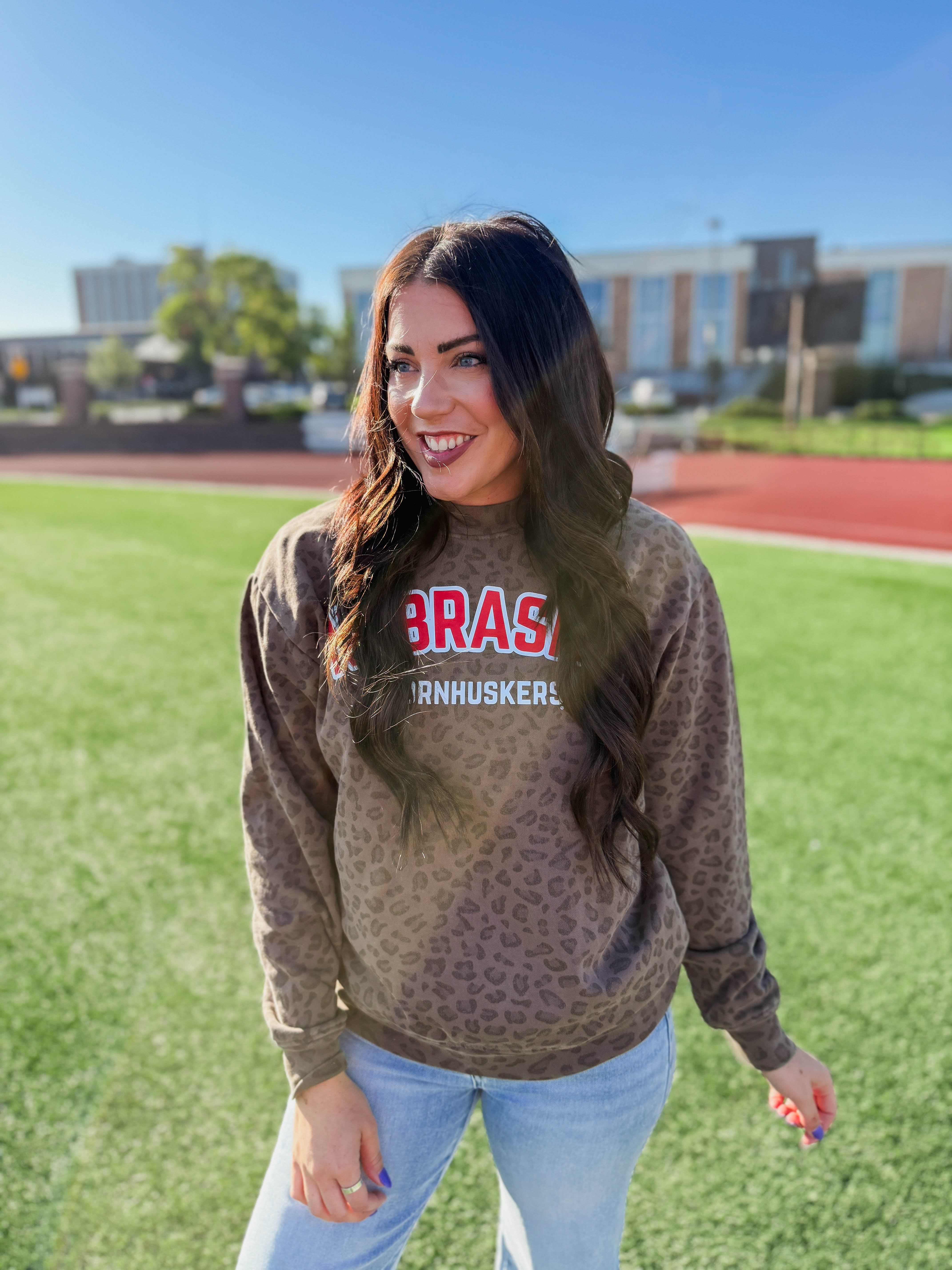 Calling all crewneck lovers!! This one's for you! We brought in the best selling leopard Nebraska Design in a crew!! Featuring a bold leopard print and long sleeves, it’s the perfect cute and cozy pick for game days. Stand out with this unique athletic piece that blends style and fandom effortlessly.