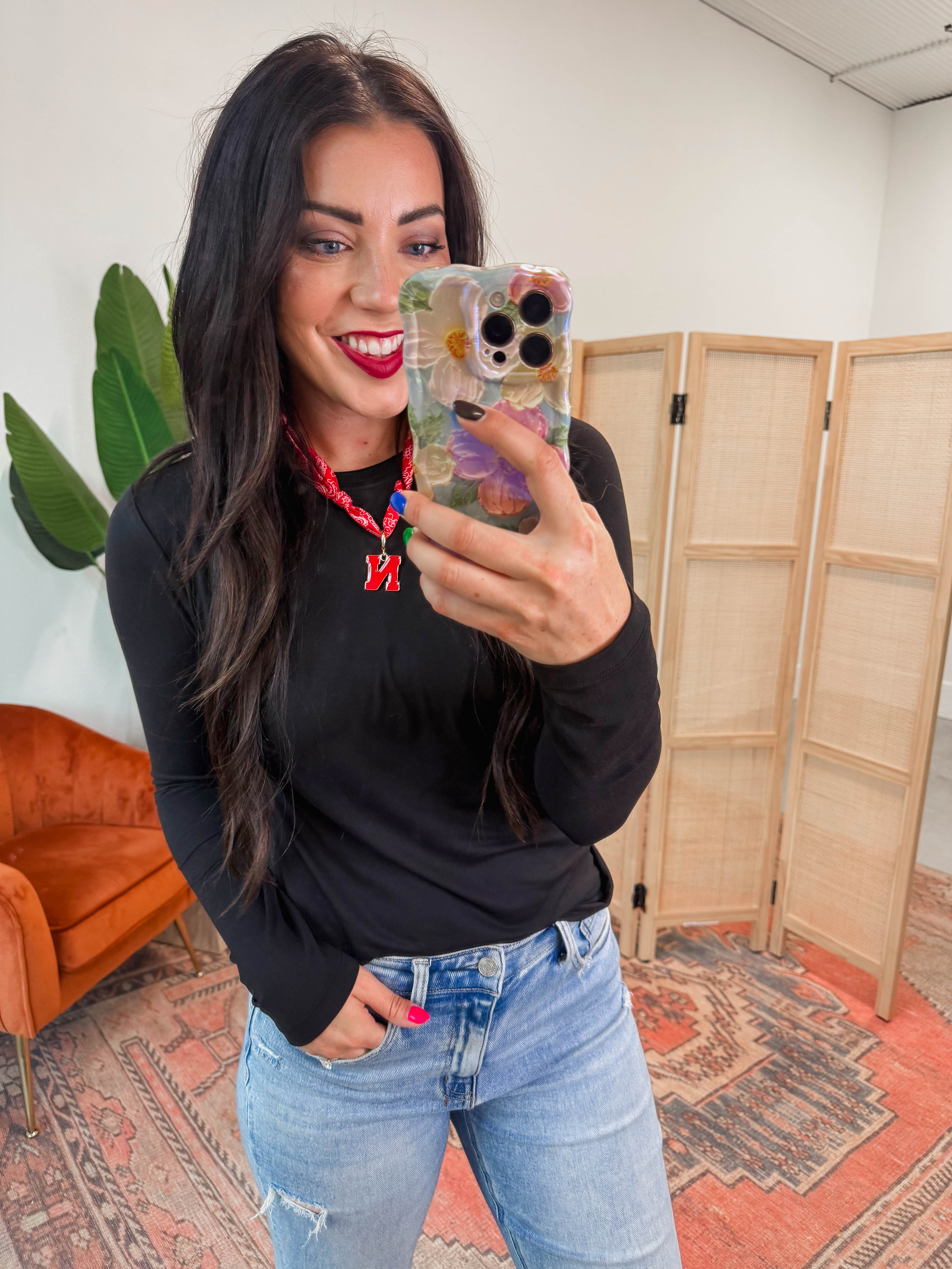 A spirited nod to Nebraska pride, this Cornhuskers bandana scarf necklace blends sporty charm with classic style. DETAILS 18K Shiny Gold Plating