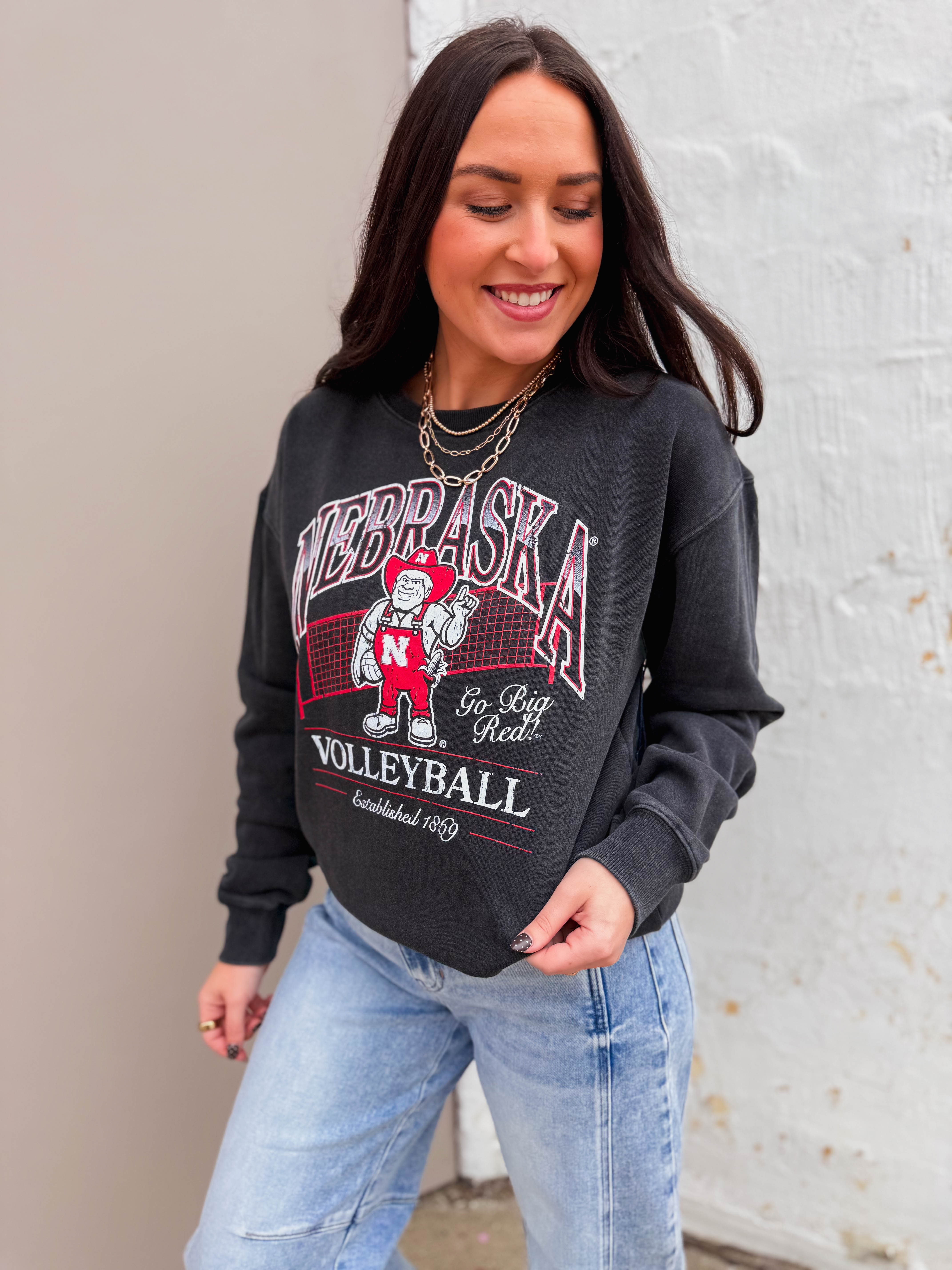 Cheer on the Huskers in style with this Nebraska Williams Volleyball Comfort Crew! Featuring a cozy crew neckline, long sleeves, and a trendy washed look, it’s perfect for game days or casual chill time. Show your team spirit with a fun volleyball graphic that’s as cute as it is comfortable.