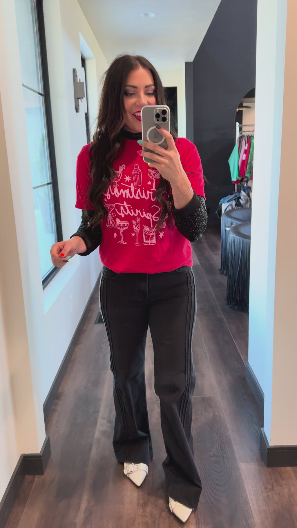Celebrate the season in style with this Christmas Spirits Tee! Featuring a cute holiday graphic, a comfy crew neckline, and short sleeves, it’s perfect for spreading festive cheer all day long.