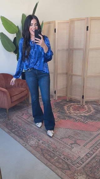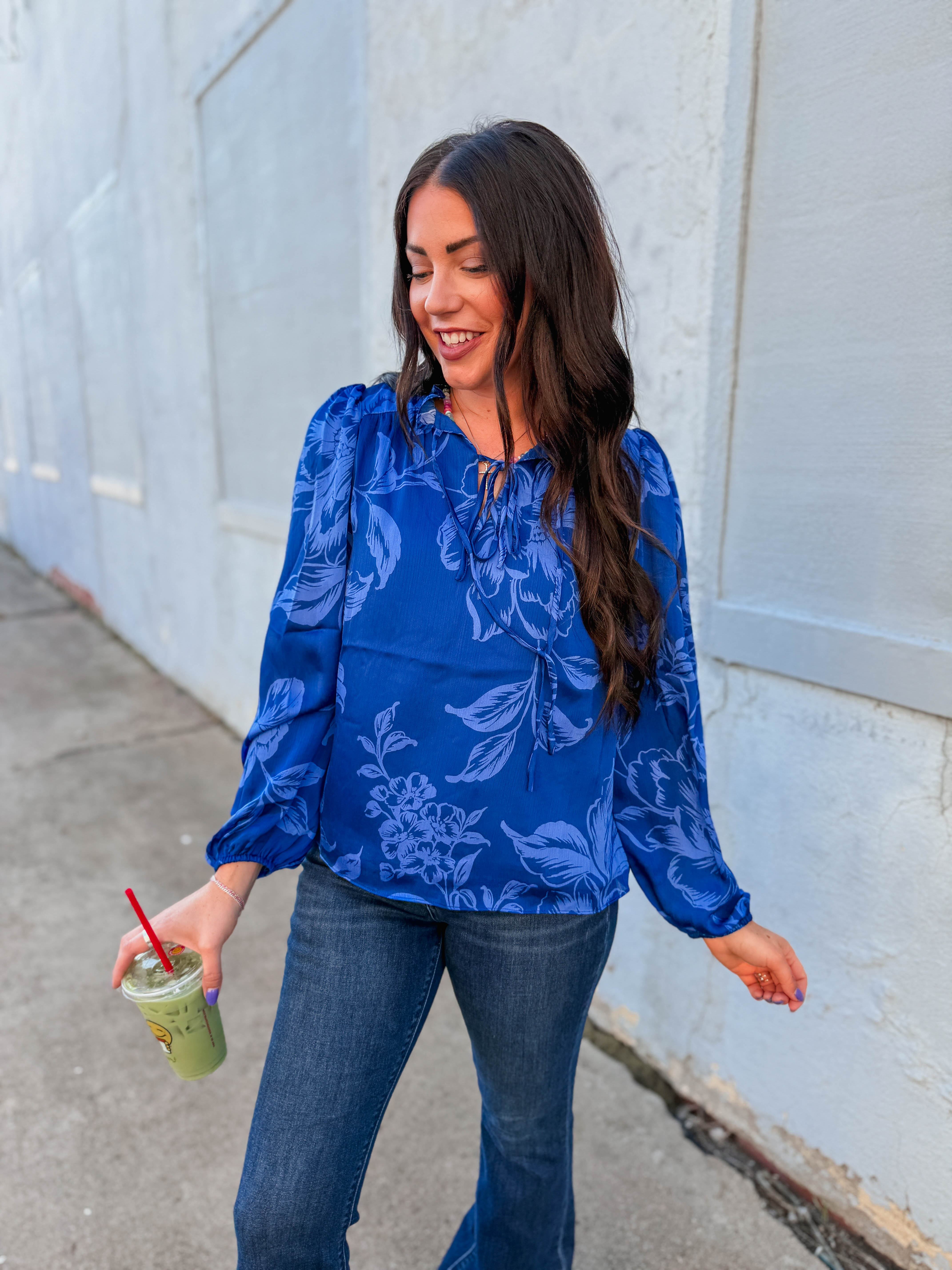 Add a fun pop of color to your wardrobe with the Ciara Floral Top. Featuring a playful ruffle neck tie, long balloon sleeves with elastic cuffs, and a vibrant floral pattern, it’s perfect for taking you from work to weekend with ease.