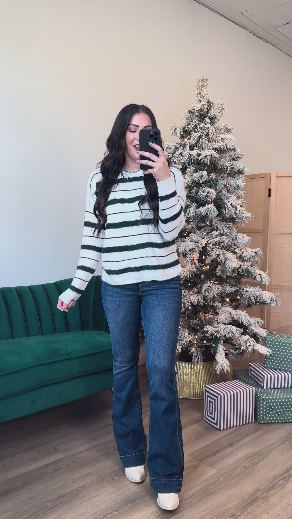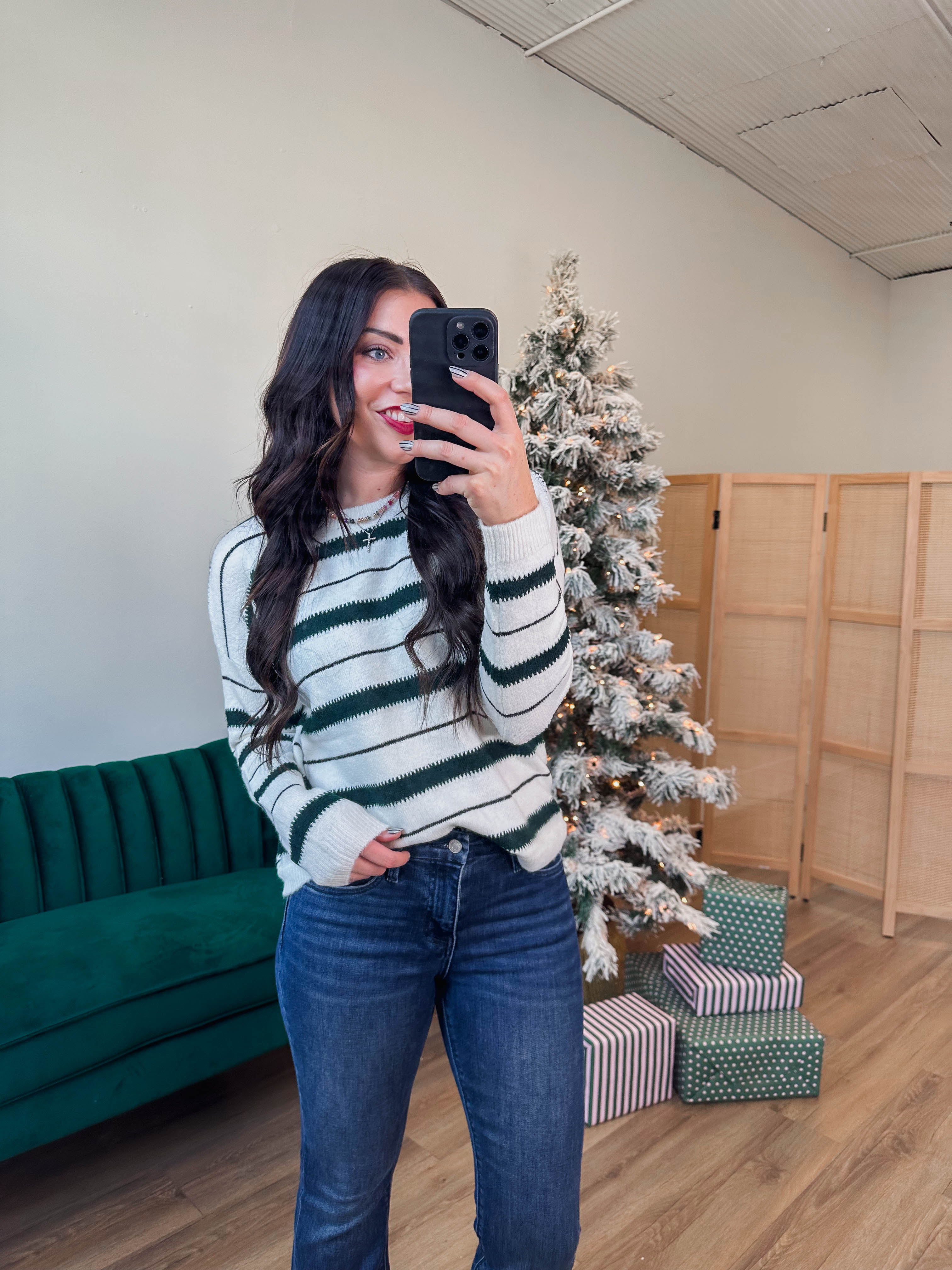 Cozy up in the Cole Striped Sweater, featuring a classic crew neckline and long sleeves. Its playful striped pattern makes it perfect for workdays and weekend fun, plus it adds a subtle holiday charm to your wardrobe. Cute, comfy, and effortlessly stylish!
