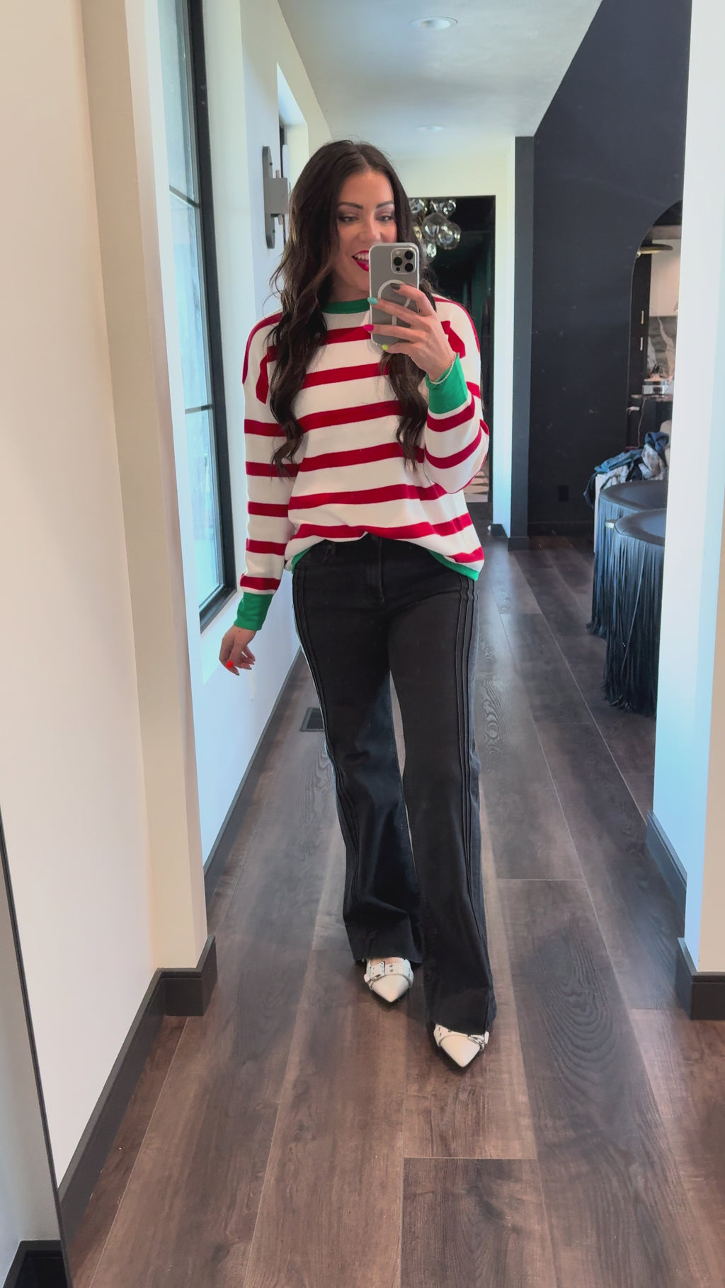 Cozy up this season in our Home For The Holidays Sweater! This charming pullover features a classic crew neckline, long sleeves, and a festive striped pattern with color contrast accents. Perfect for holiday gatherings, family photos, or just staying warm in style. A cute essential that brings seasonal cheer to your everyday wardrobe.