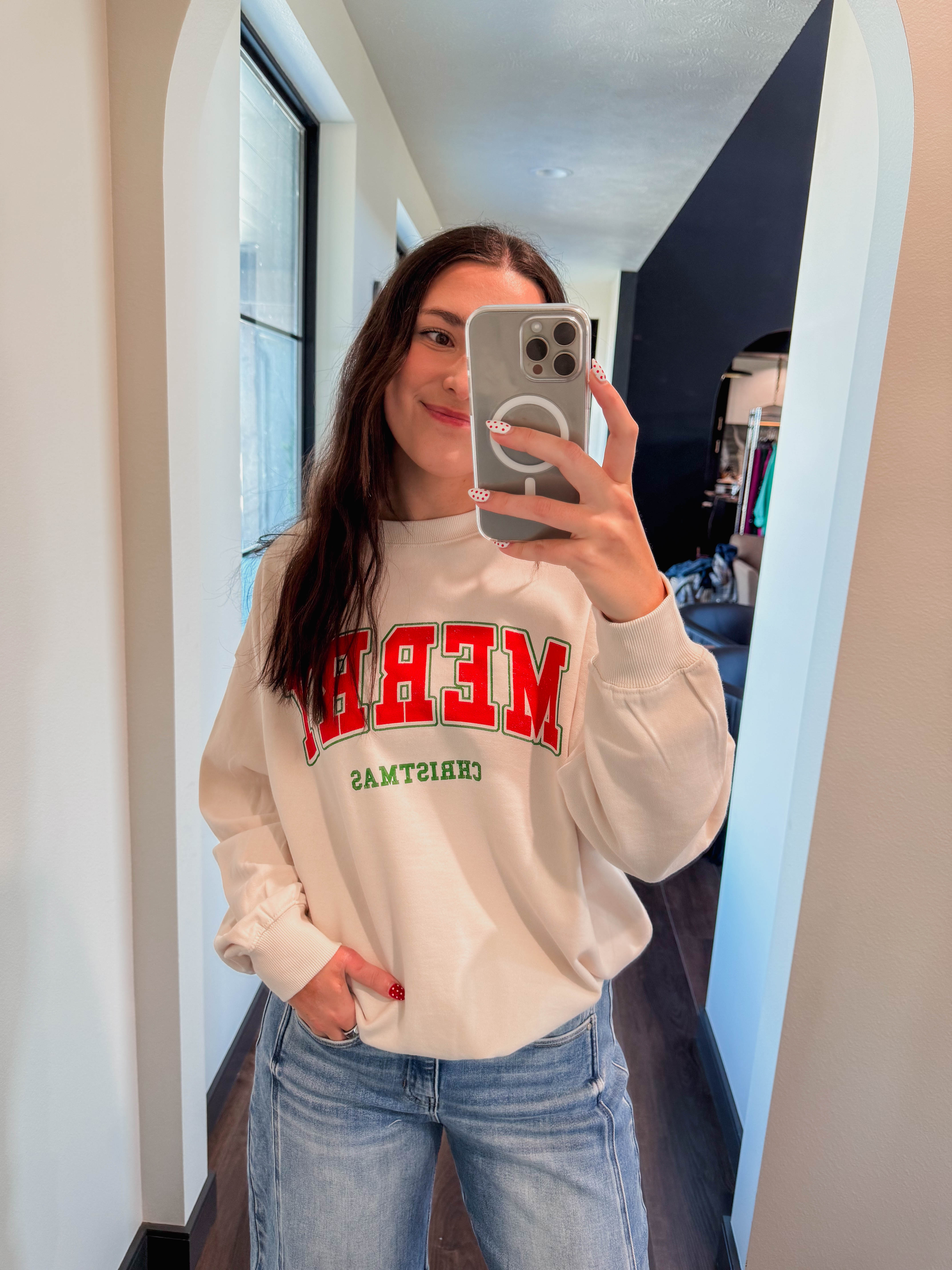 Wrap yourself in holiday warmth with this cheerful Christmas sweatshirt. The striking "Merry Christmas" stencil graphic makes a bold festive statement, while the classic crew neckline and long sleeves offer cozy coverage. Designed with a relaxed fit for maximum comfort, this sweatshirt is perfect for holiday parties, family gatherings, or lazy winter days at home.