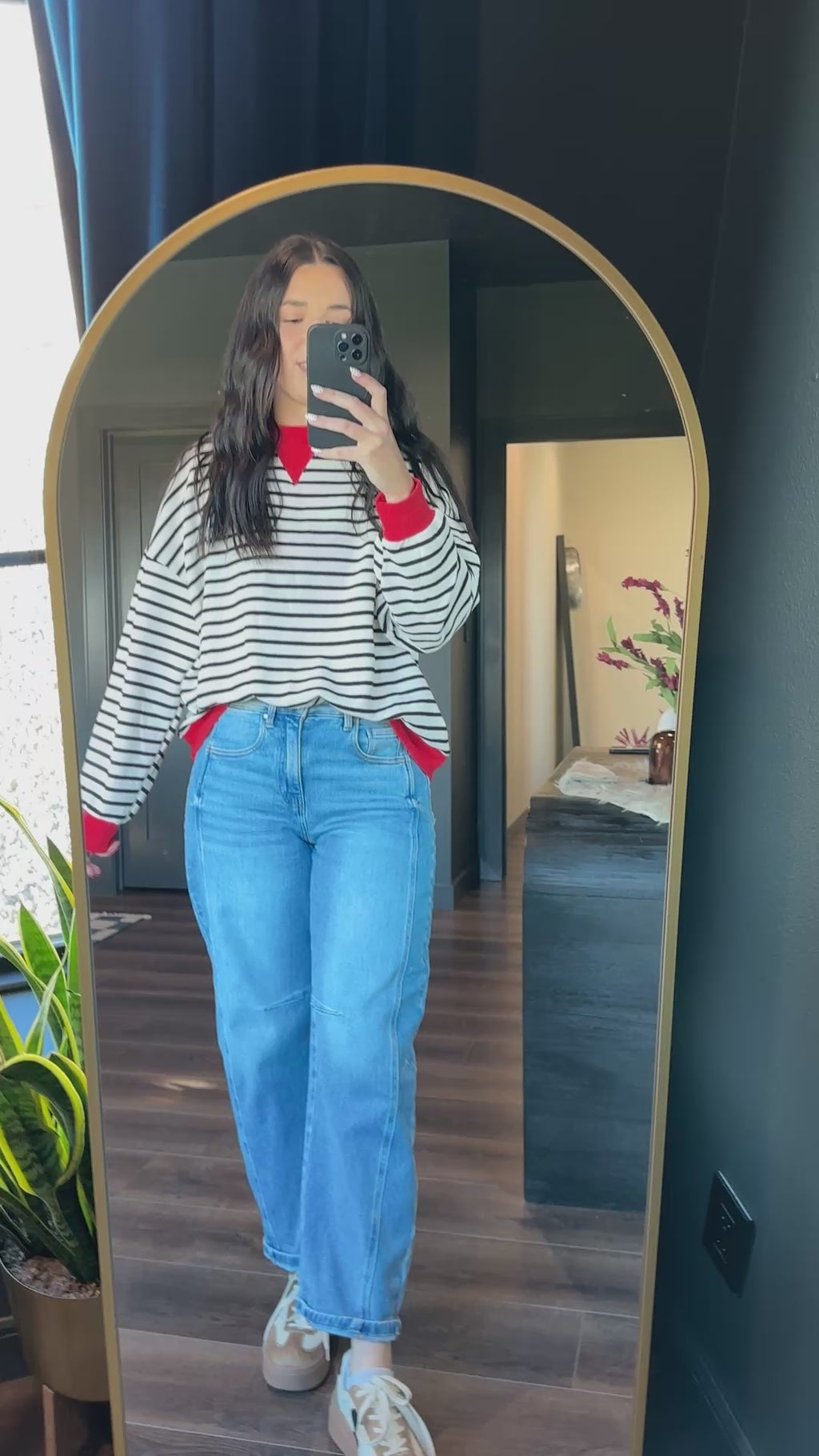 Get cozy and cute with the Snow Day Striped Pullover! This fun sweatshirt features a textured knit, round neckline, and playful contrast trim. Perfect for holiday vibes or everyday wear—ready to take you from work to weekend in style.