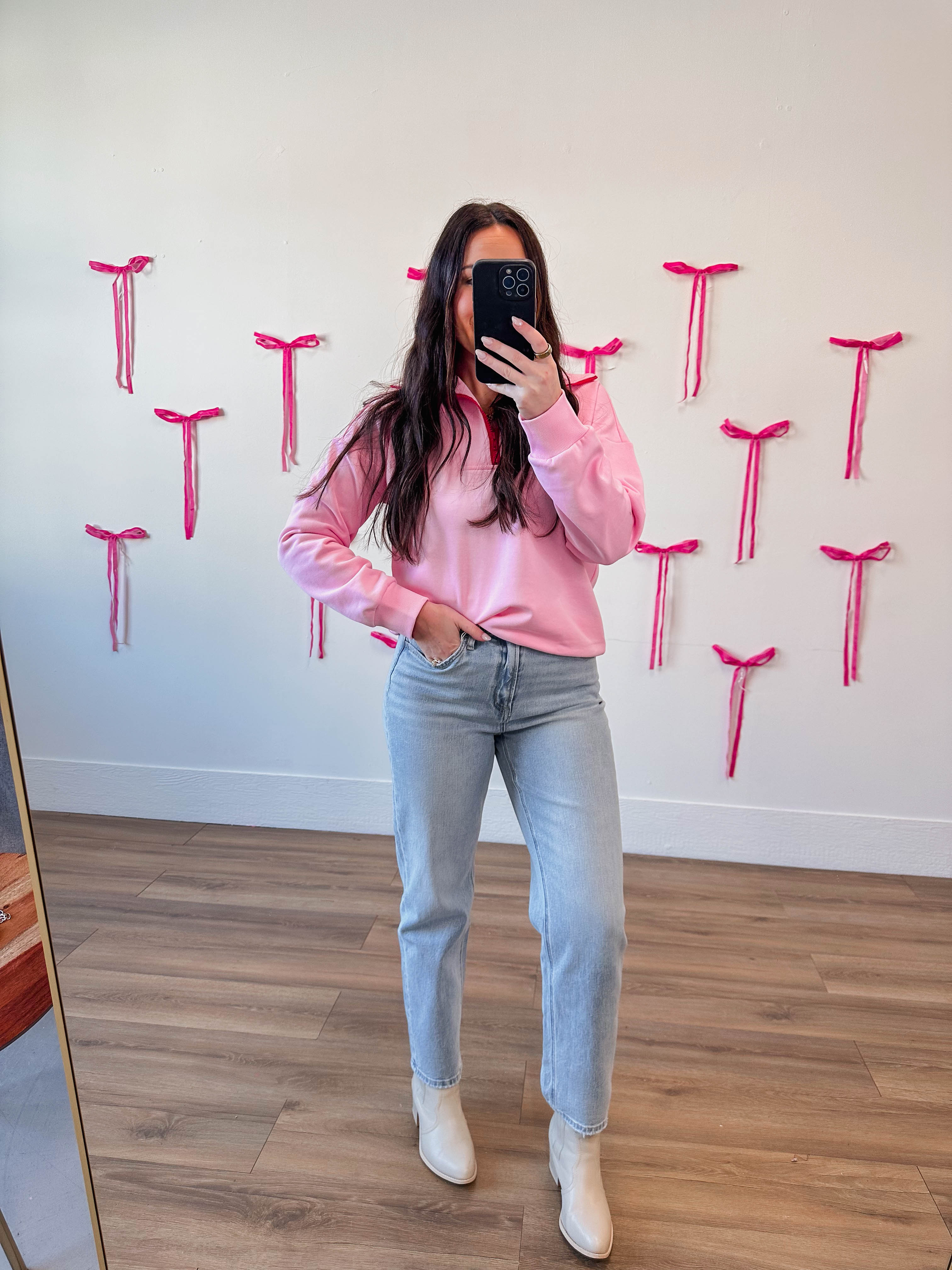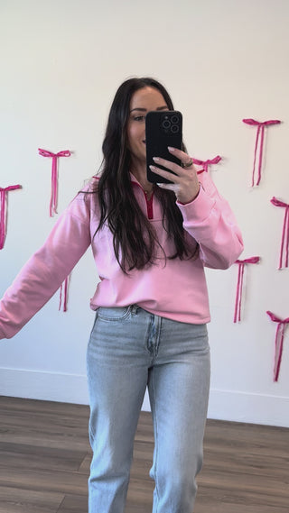 Layer up with this charming quarter zip pullover featuring a crisp collared neckline and long sleeves. The contrast zipper adds a fun pop of color that makes it perfect for year-round styling—dress it up or down for effortless versatility. A playful essential that works as hard as you do.