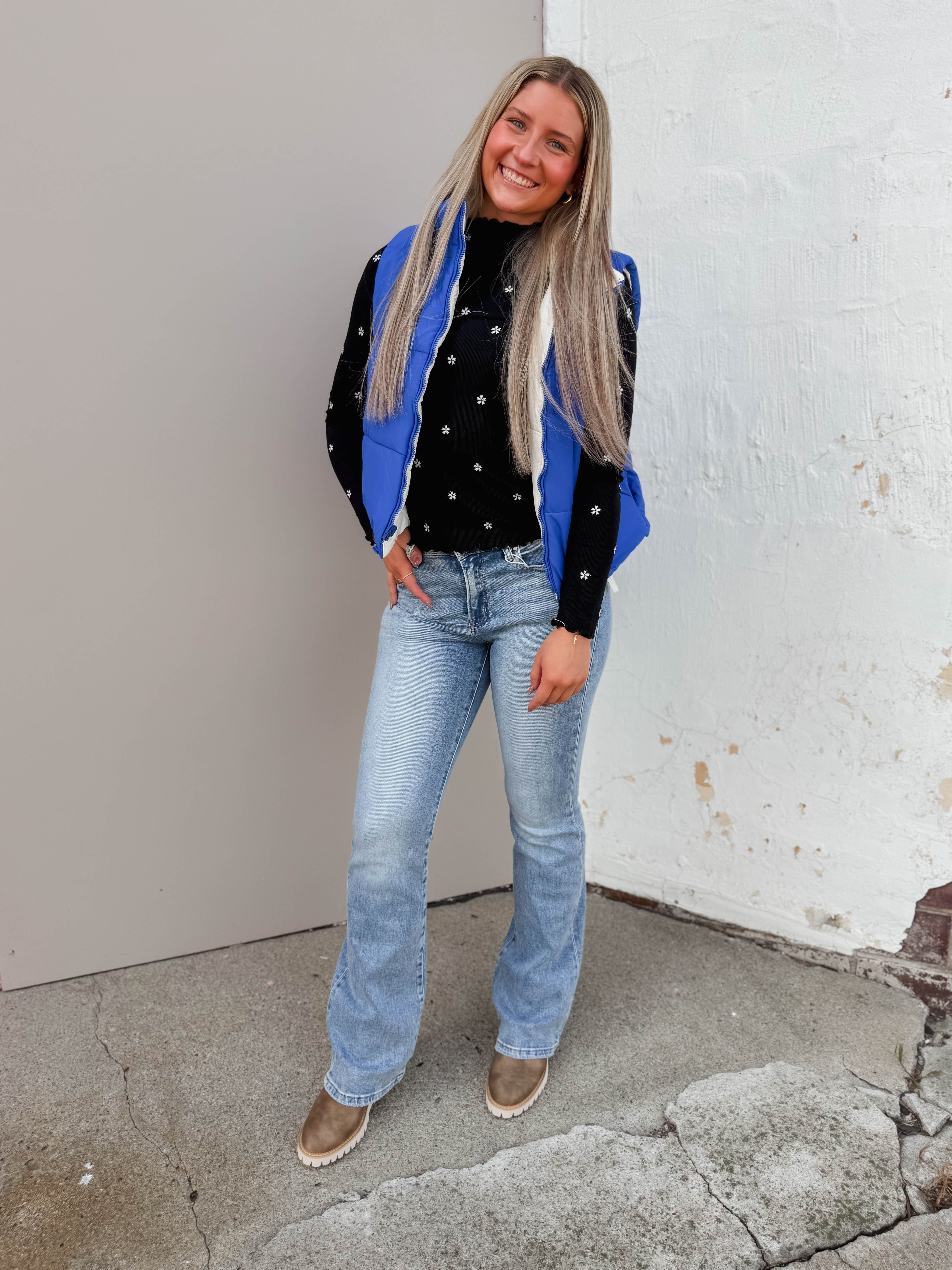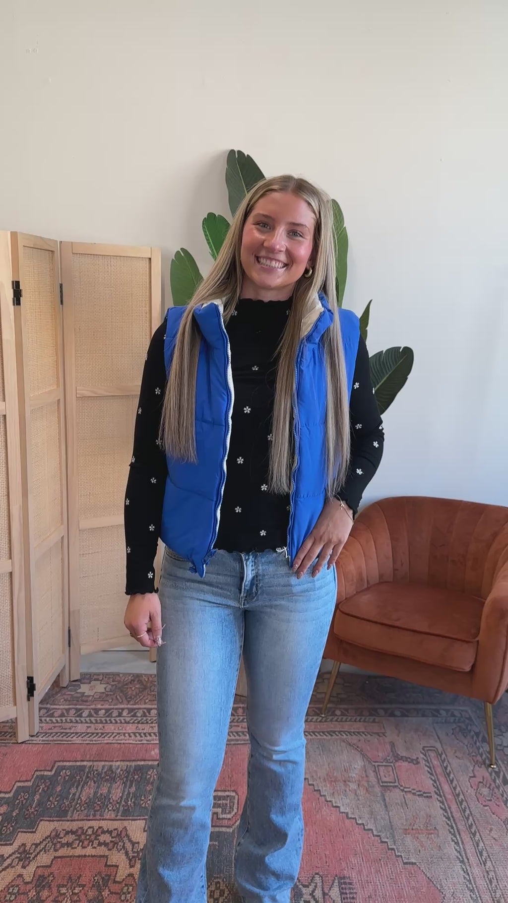 Stay cozy and stylish with the Lola Puffer Vest! Its reversible design offers two looks in one, while the collared neck and drawstring waist add extra flair. Zip it up and use the side pockets for convenience. Perfect for adding a fun pop of color from work to weekend.