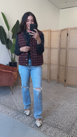 Macey Plaid Vest-Red