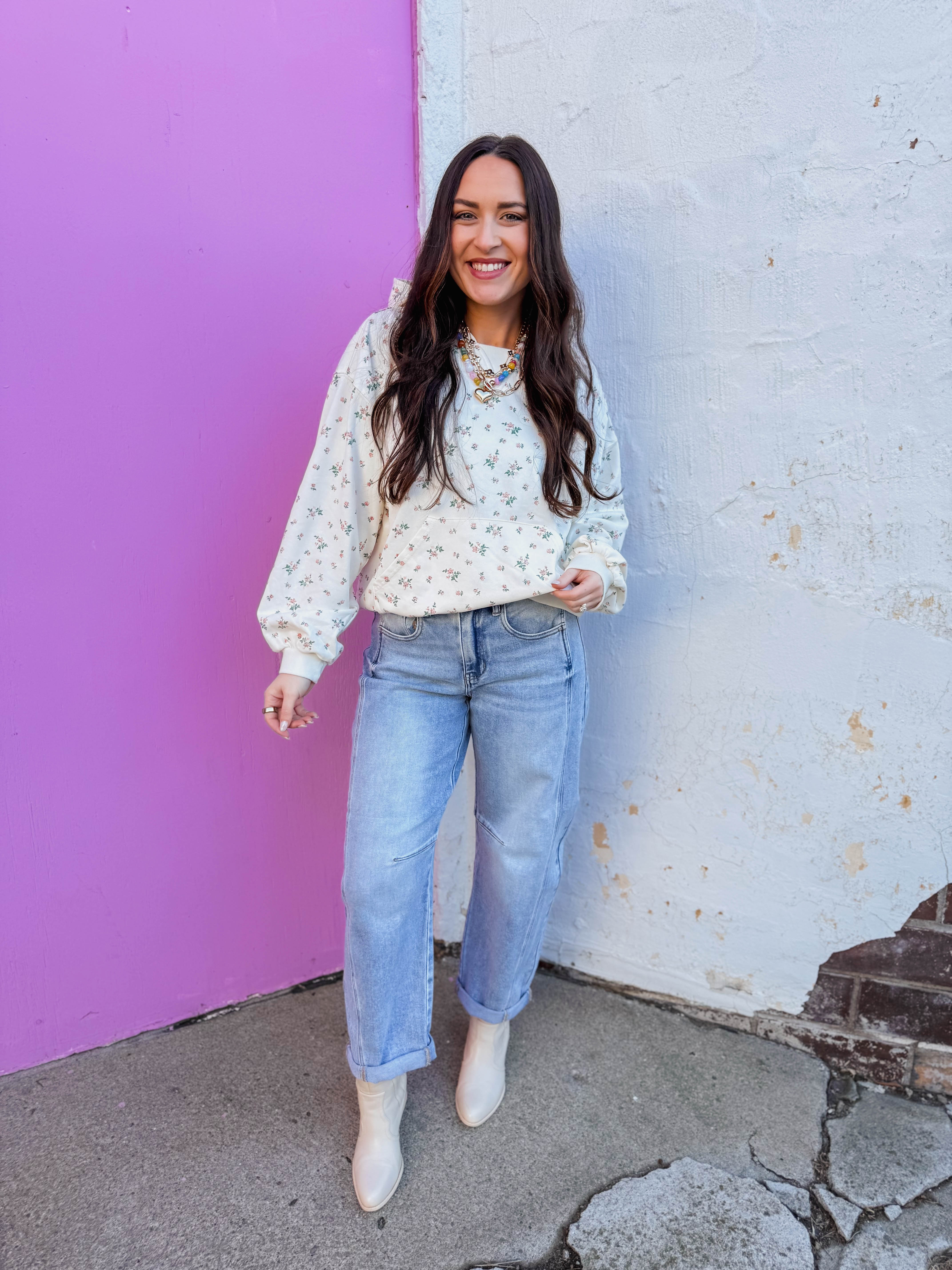 Meet your new favorite layer! The Ada Floral Hoodie is the perfect year-round companion with its adorable floral print and ultra-cozy relaxed fit. The banded hem keeps everything looking sharp while you stay snug and stylish, no matter the season.