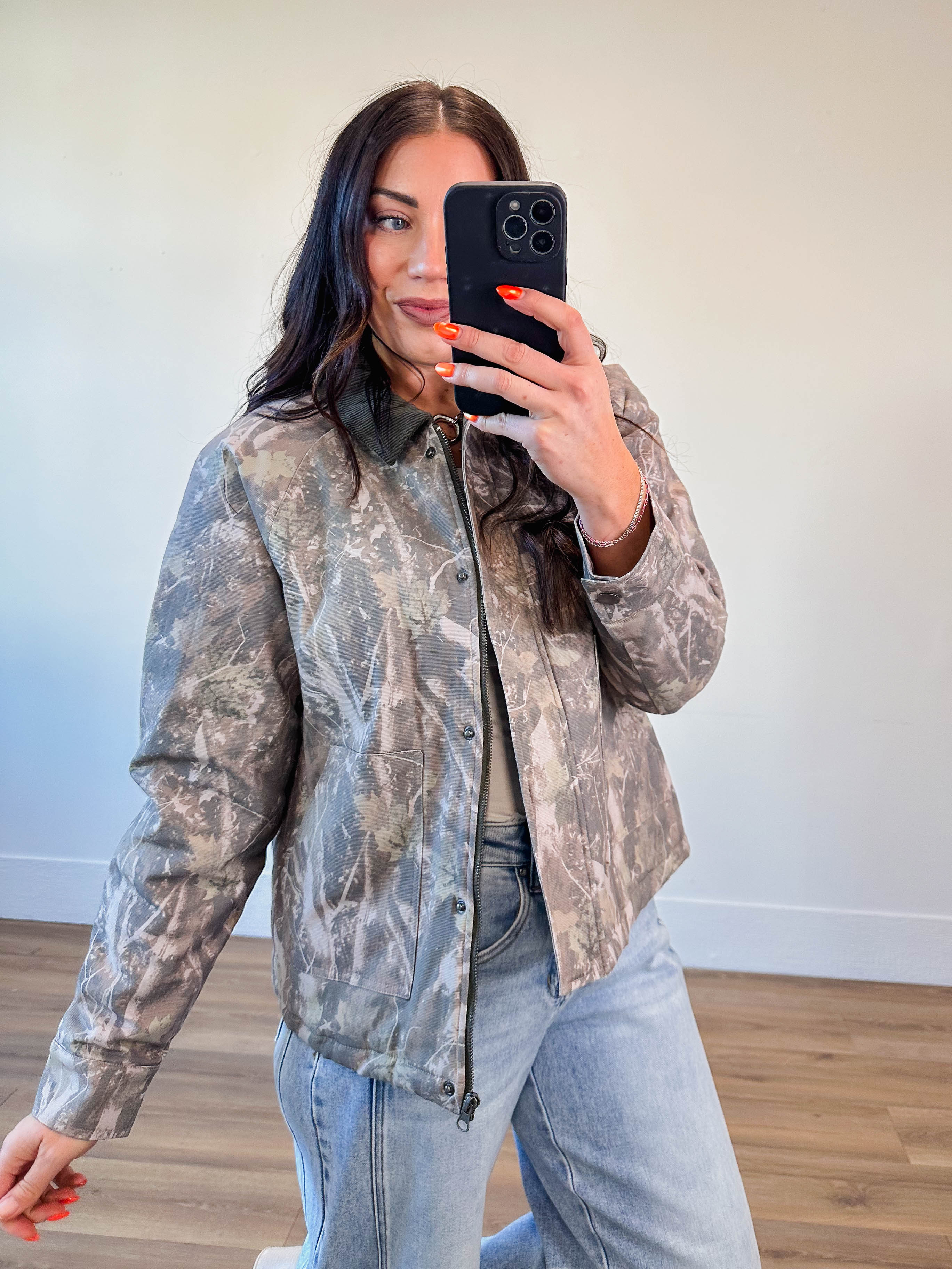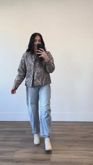 Add a bold edge to your look with Thread & Supply's Korie Jacket! Featuring a trendy camo print, a classic collared neckline, and a puffer style, this jacket zips up front and includes handy side pockets for all your essentials.