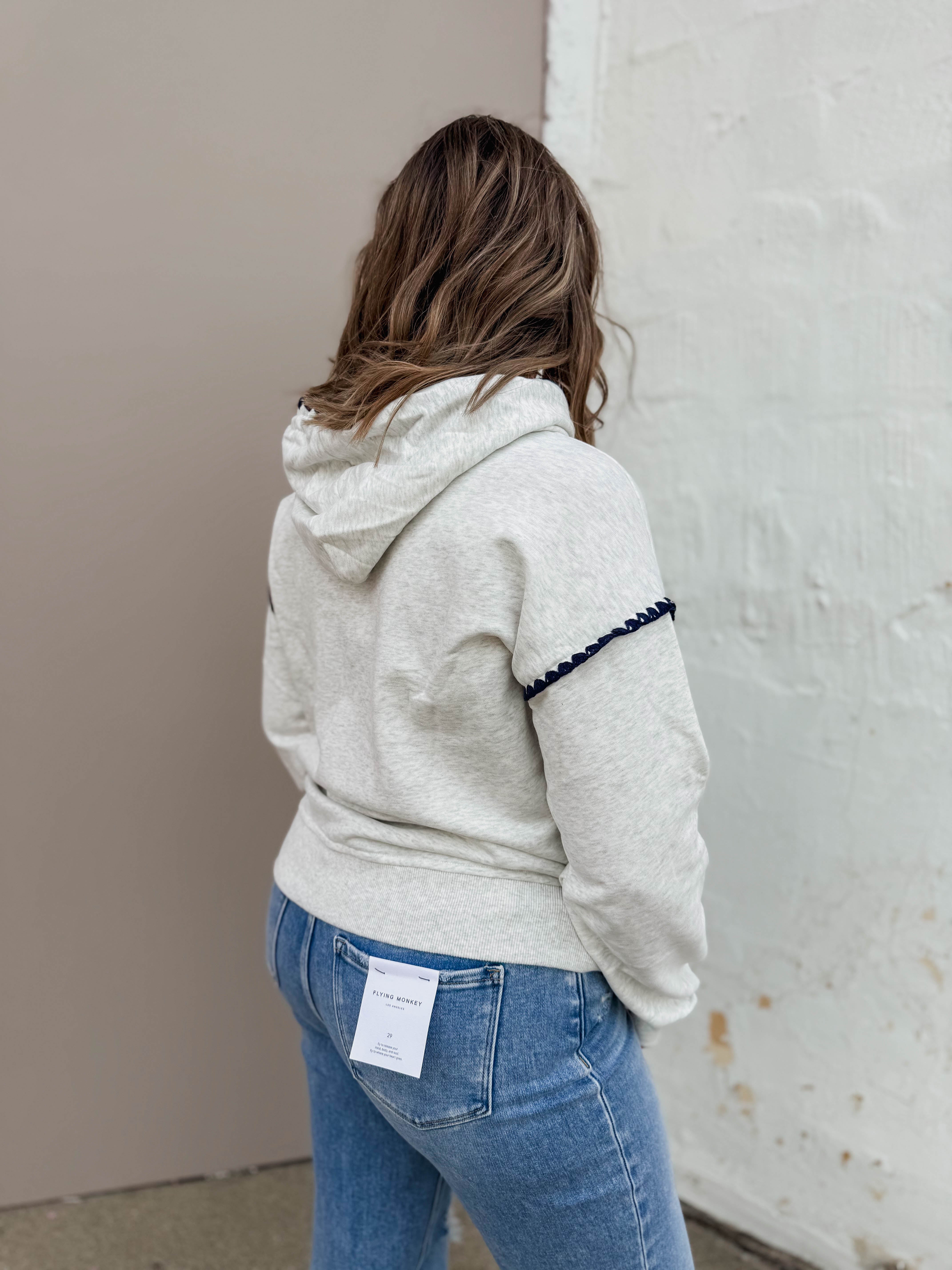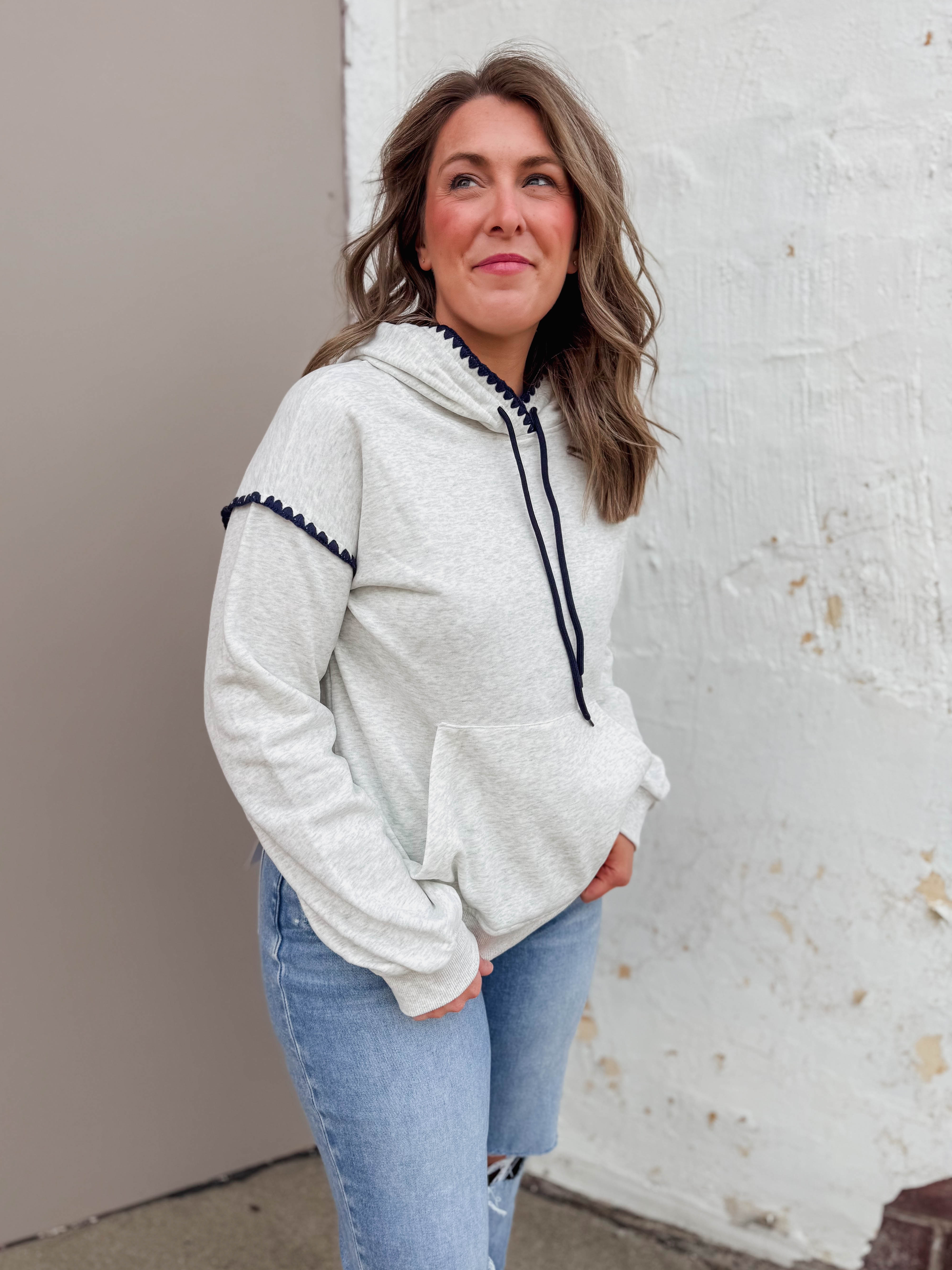 Stay cozy in the Watson Hoodie! With long sleeves and a kangaroo pocket, this super soft sweatshirt features blanket stitching and fun color contrast for extra style and comfort. Perfect for chill days or casual hangouts.