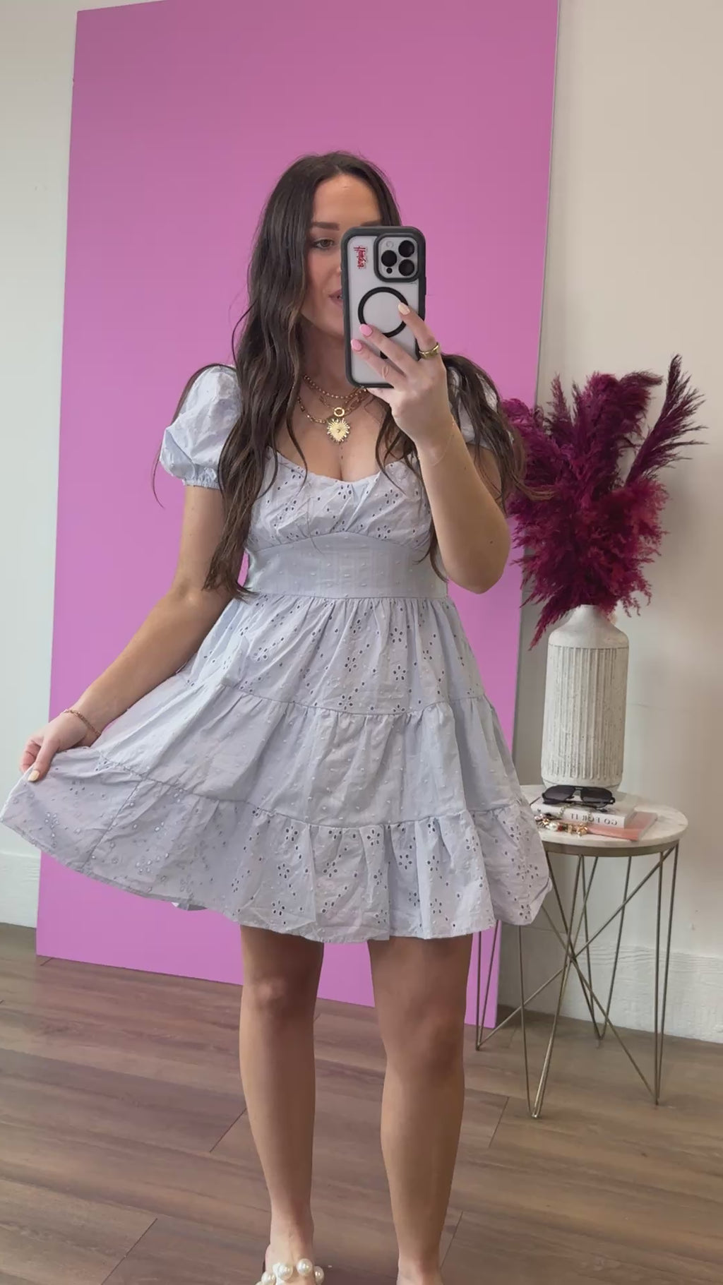 Make a statement in this striking corset style mini dress featuring intricate eyelet design. The structured bodice creates a flattering silhouette while the delicate eyelet detailing adds feminine charm and visual interest. Perfect for nights out or special occasions, this dress commands attention with its bold styling and refined details. Pair with strappy heels and minimal accessories to let the dress shine.