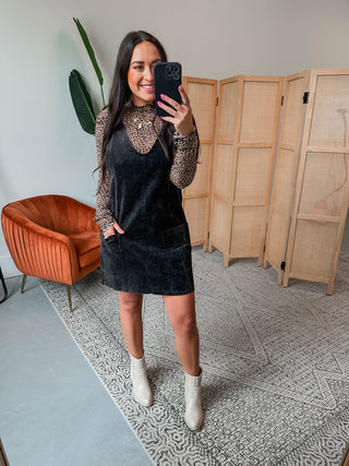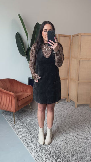 Adeline Corduroy Overall Dress-Black