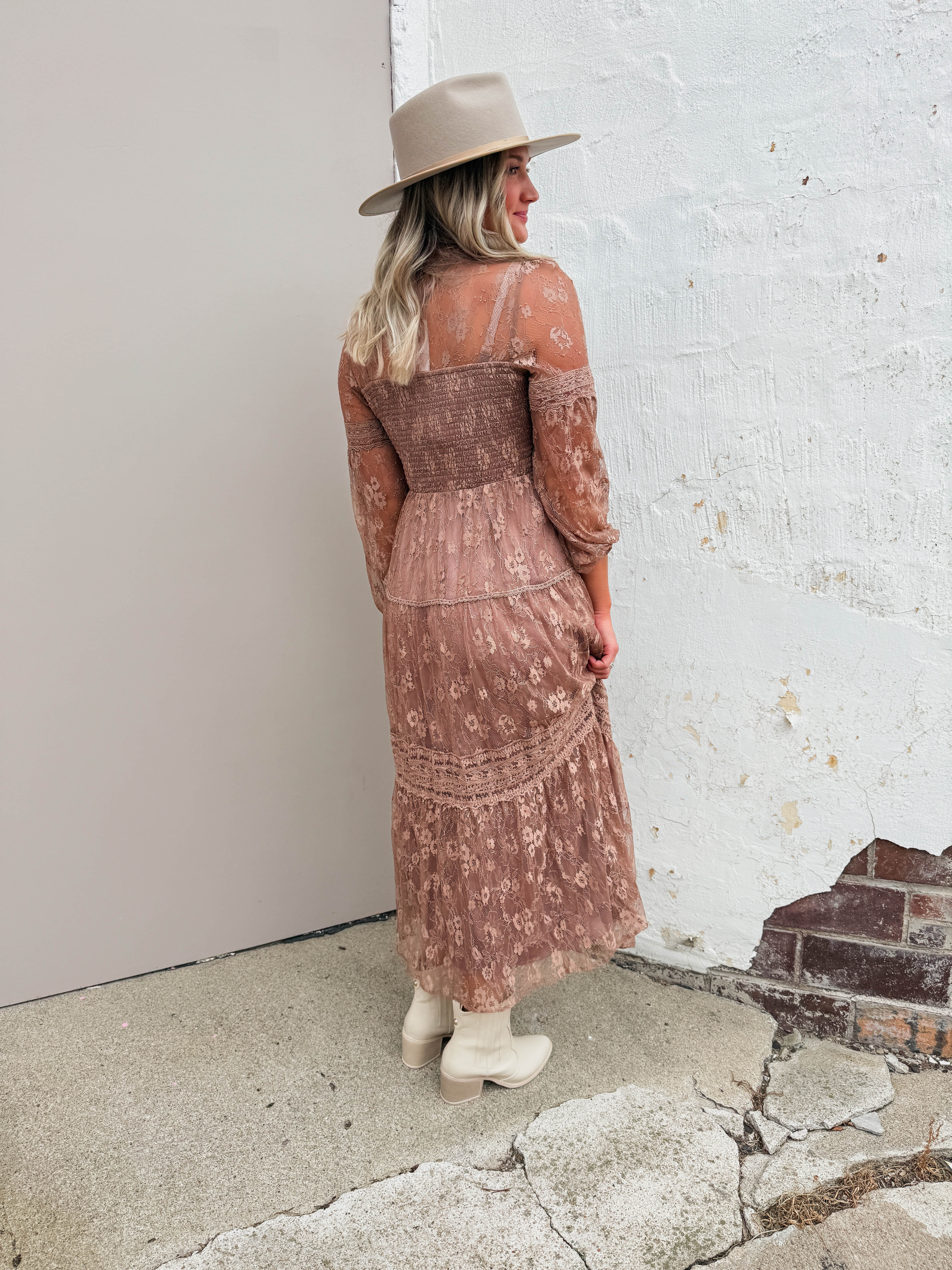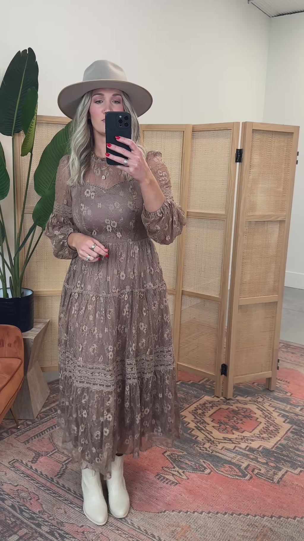 The Blakely Lace Maxi Dress combines a charming crew neckline with a sweetheart lining for a sweet, layered look. Featuring long sleeves, a delicate lace overlay, and playful ruffle tiers, it’s perfect for fall family photos, weddings, and more. Effortlessly cute and ready to wow!