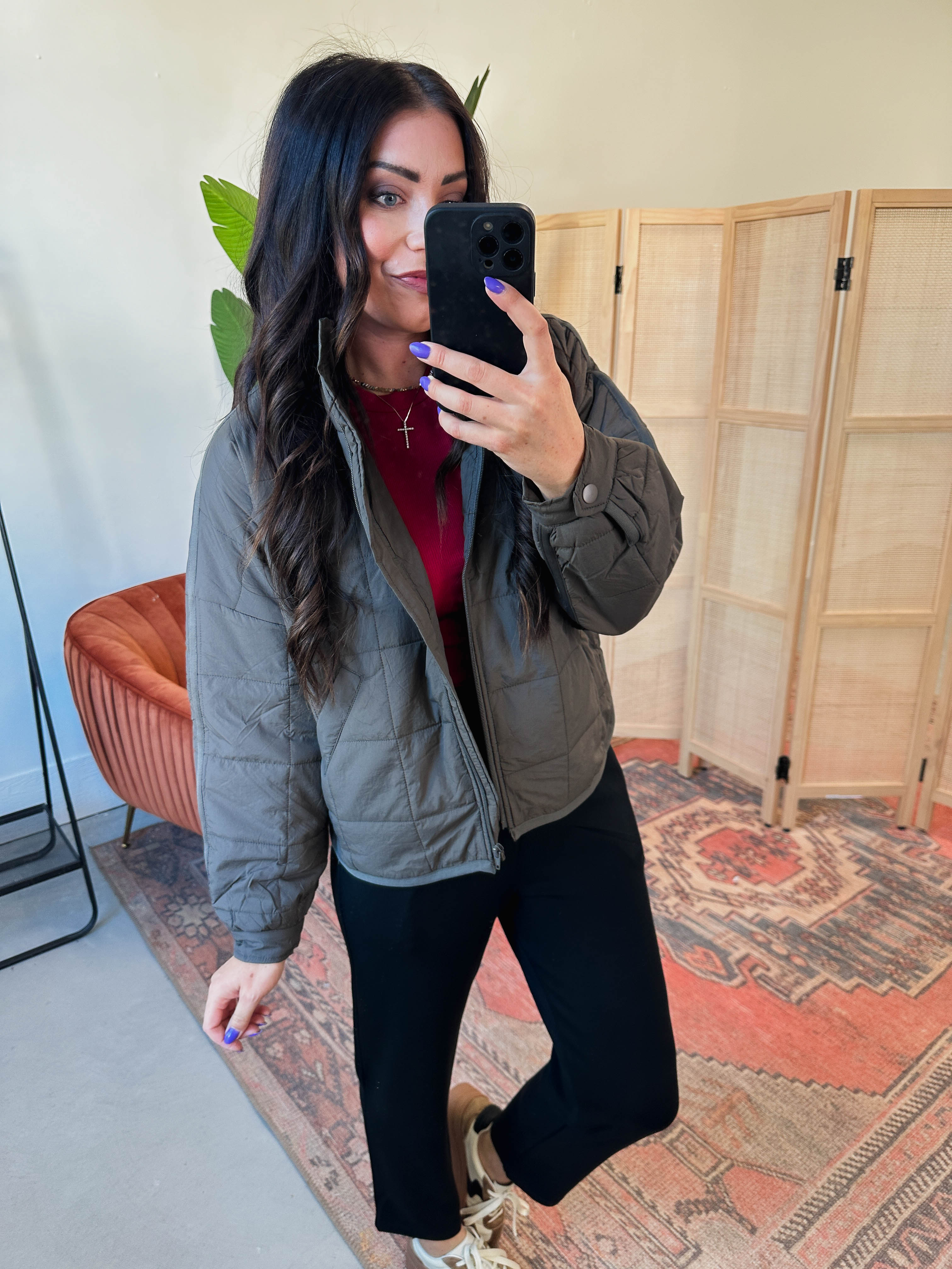 Stay cozy and stylish in the Chandler Quilted Jacket! Featuring a mock neckline, long sleeves, and a front zip closure, this versatile jacket keeps you warm while the quilted pattern adds a fun texture. Plus, side pockets make it perfect for on-the-go days.